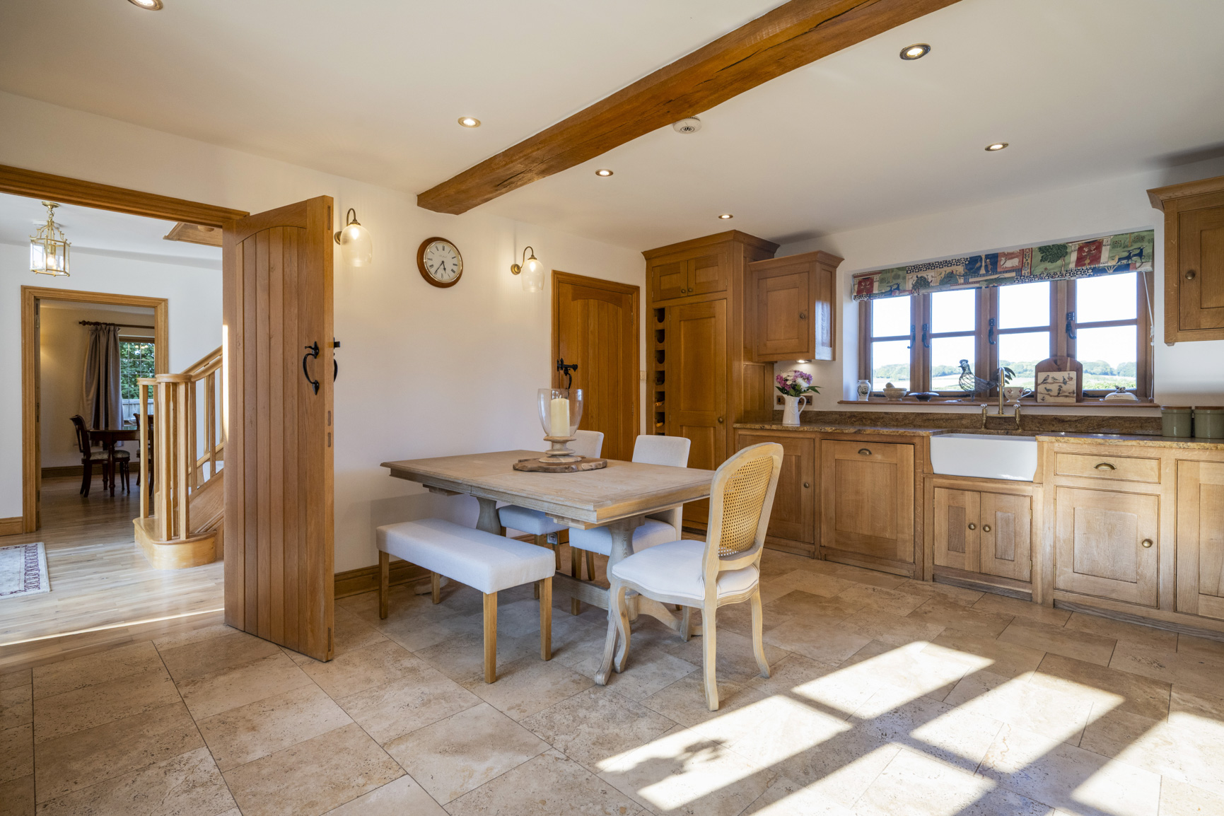 Inside, this unique home boasts a magnificent kitchen, featuring solid oak cabinetry, hand-crafted for timeless elegance and durability, An Alpha cooker, the perfect centrepiece for serious home cooks, premium granite worktops, combining style with practicality and natural stone flooring, adding character and lasting quality. A perfect blend of craftsmanship and function.
