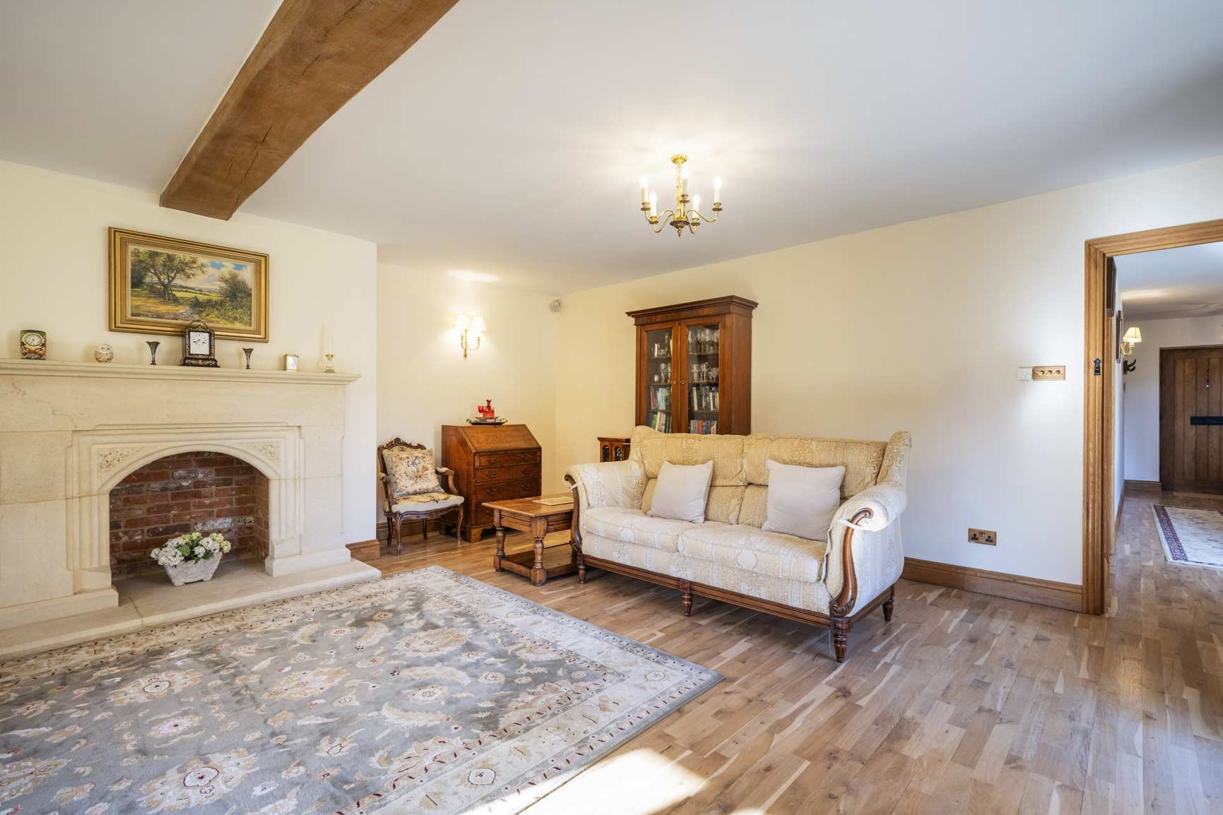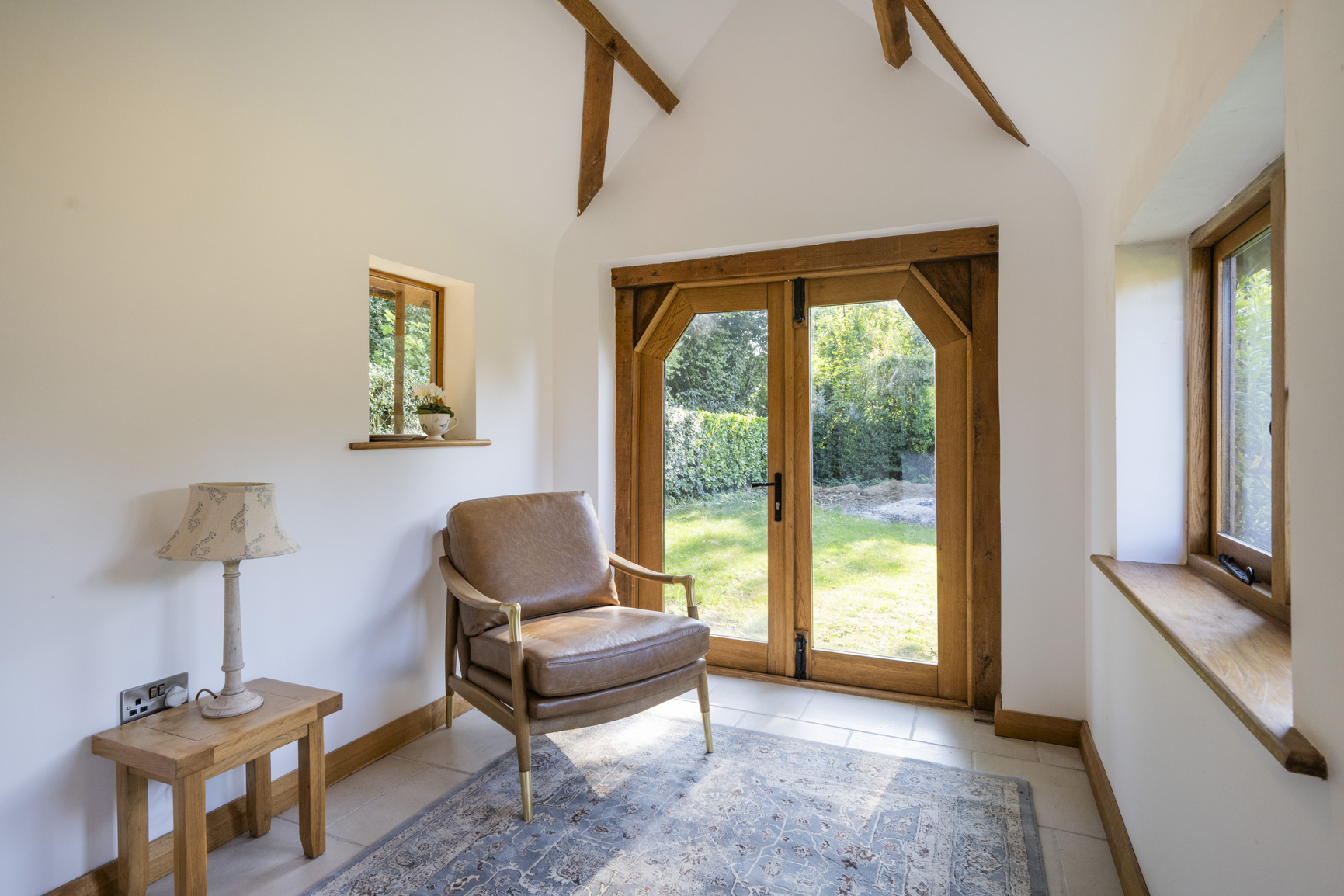 The sitting room is flooded with natural light from two sets of french windows opening to the back garden. This room offers total relaxation, along with the stunning continuity of oak flooring that flows seamlessly throughout most of the house, it also offers the focal point of a hand carved bath stone fireplace giving extra warmth and splendour to the main reception room.
