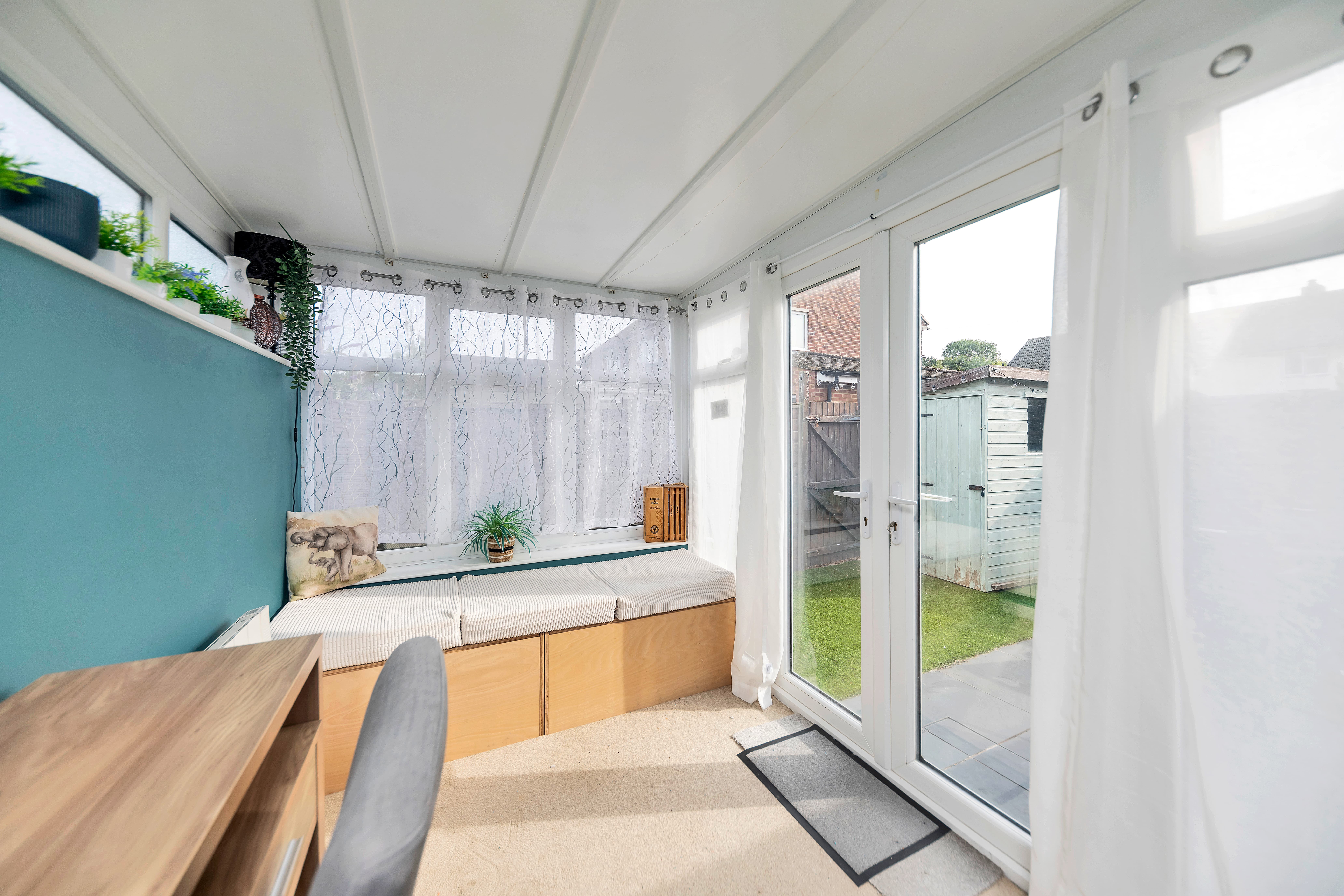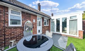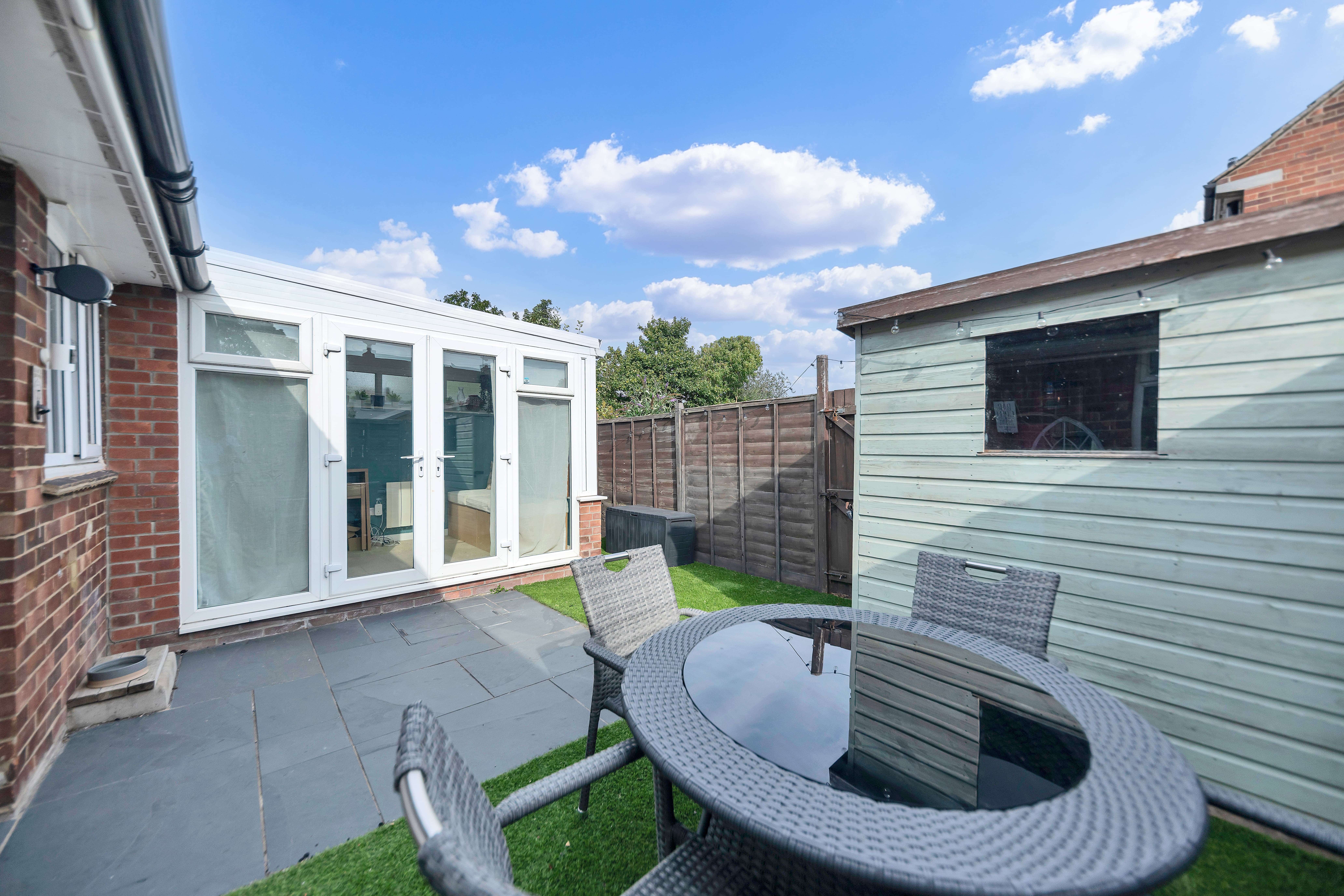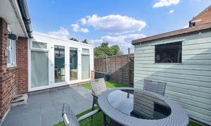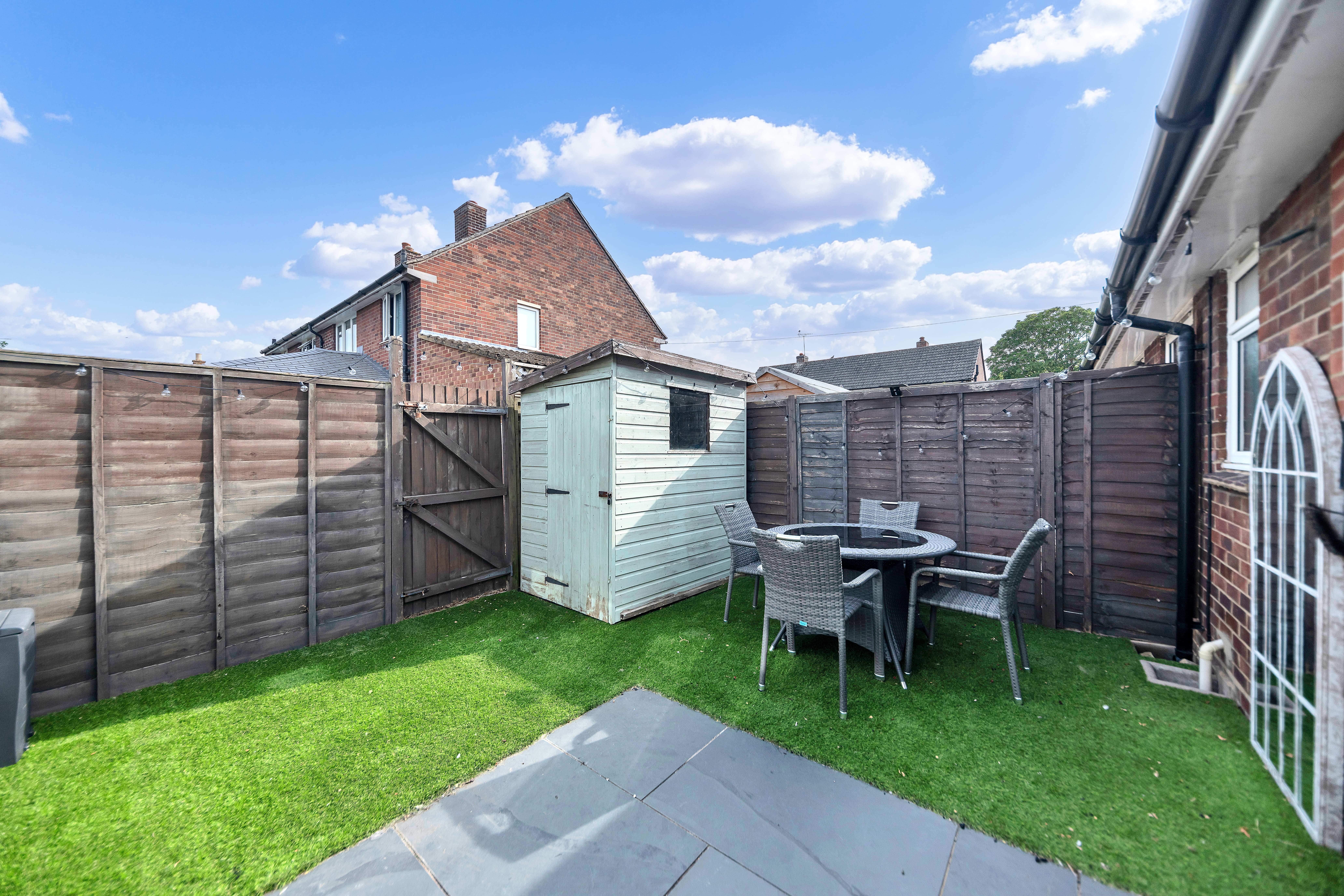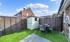 Outside, to the rear, the garden is generous, fully enclosed by fencing and offering a sunny spot to sit and relax. It is laid to artificial lawn and paved patio, providing space for garden furniture and entertaining guests. There is access to the rear of the property, access to a shed, and scope for new owners to put their own stamp on things.
