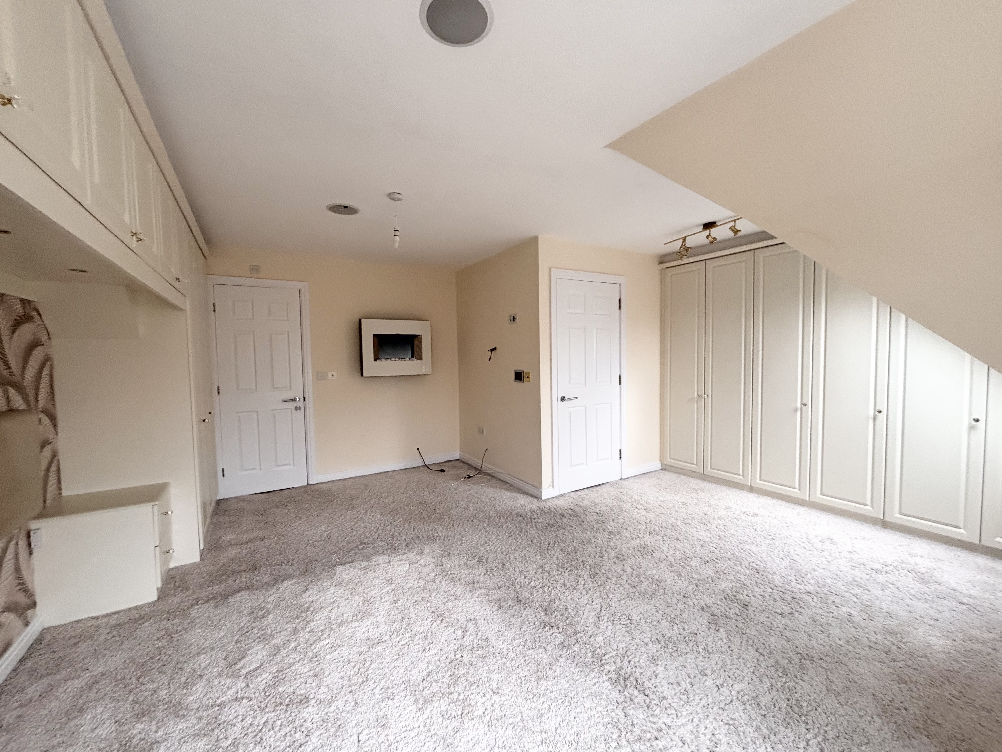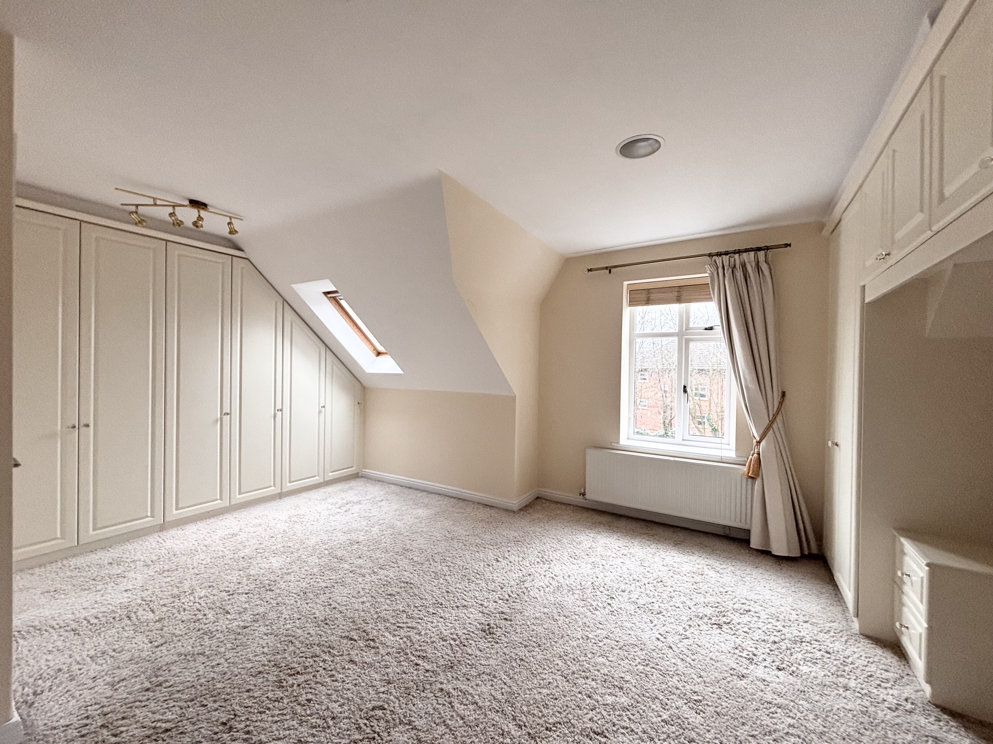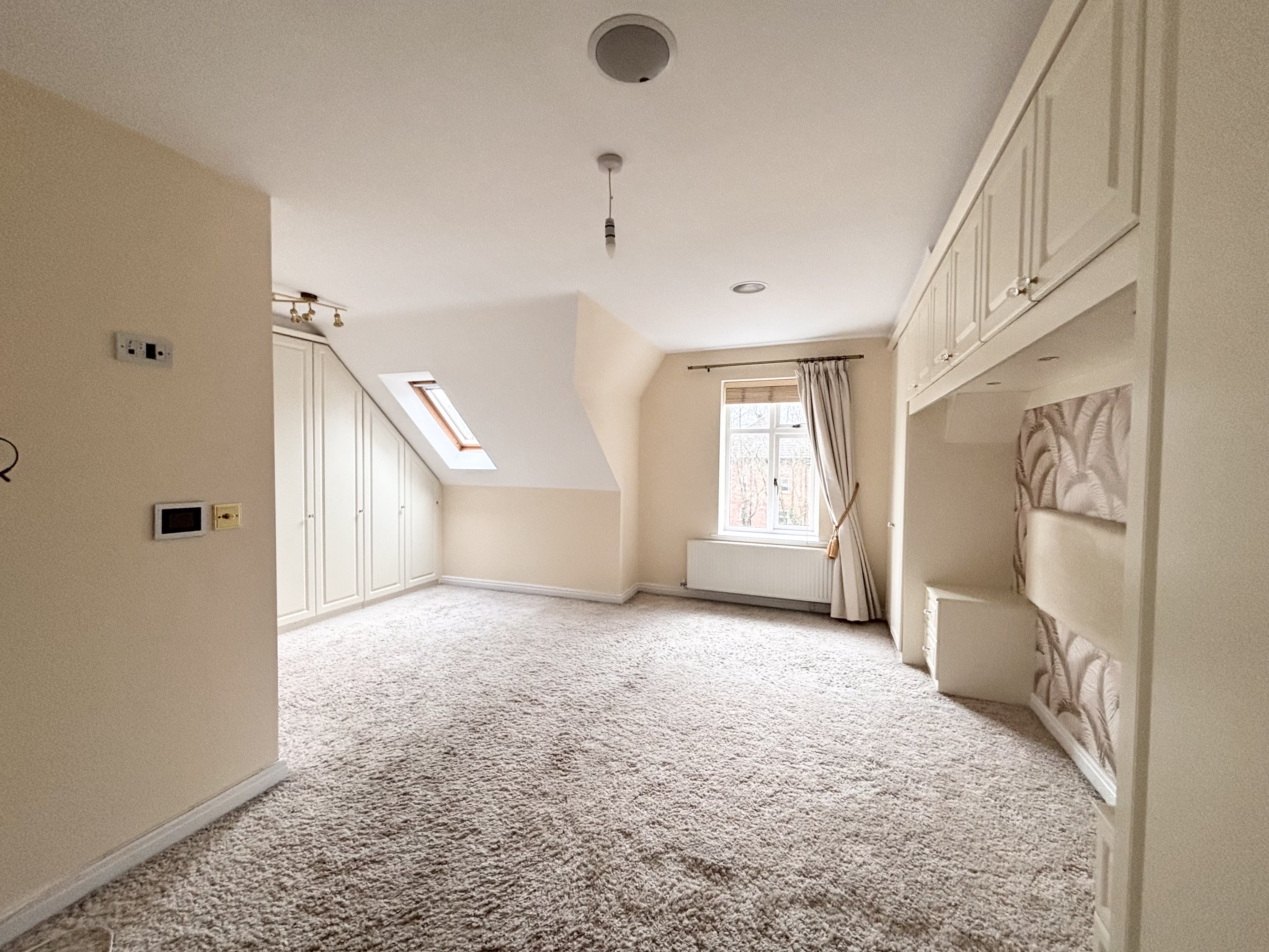 Window to the front elevation. Velux window. Beautiful fitted custom wardrobes. T.V point. Feature wall mounted electric fire.