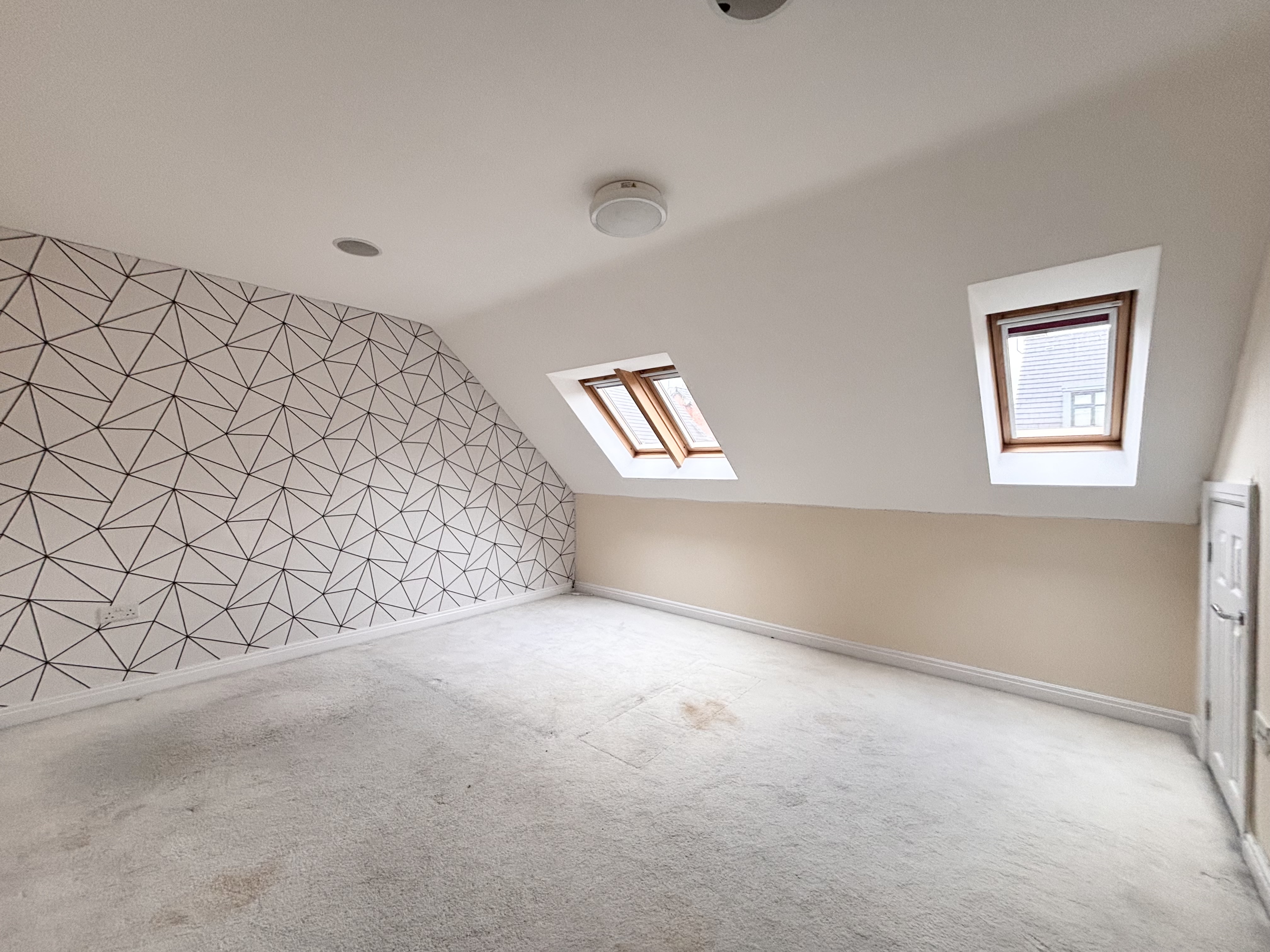 Spacious Double Bedroom with ensuite. Three velux windows to the rear elevation
