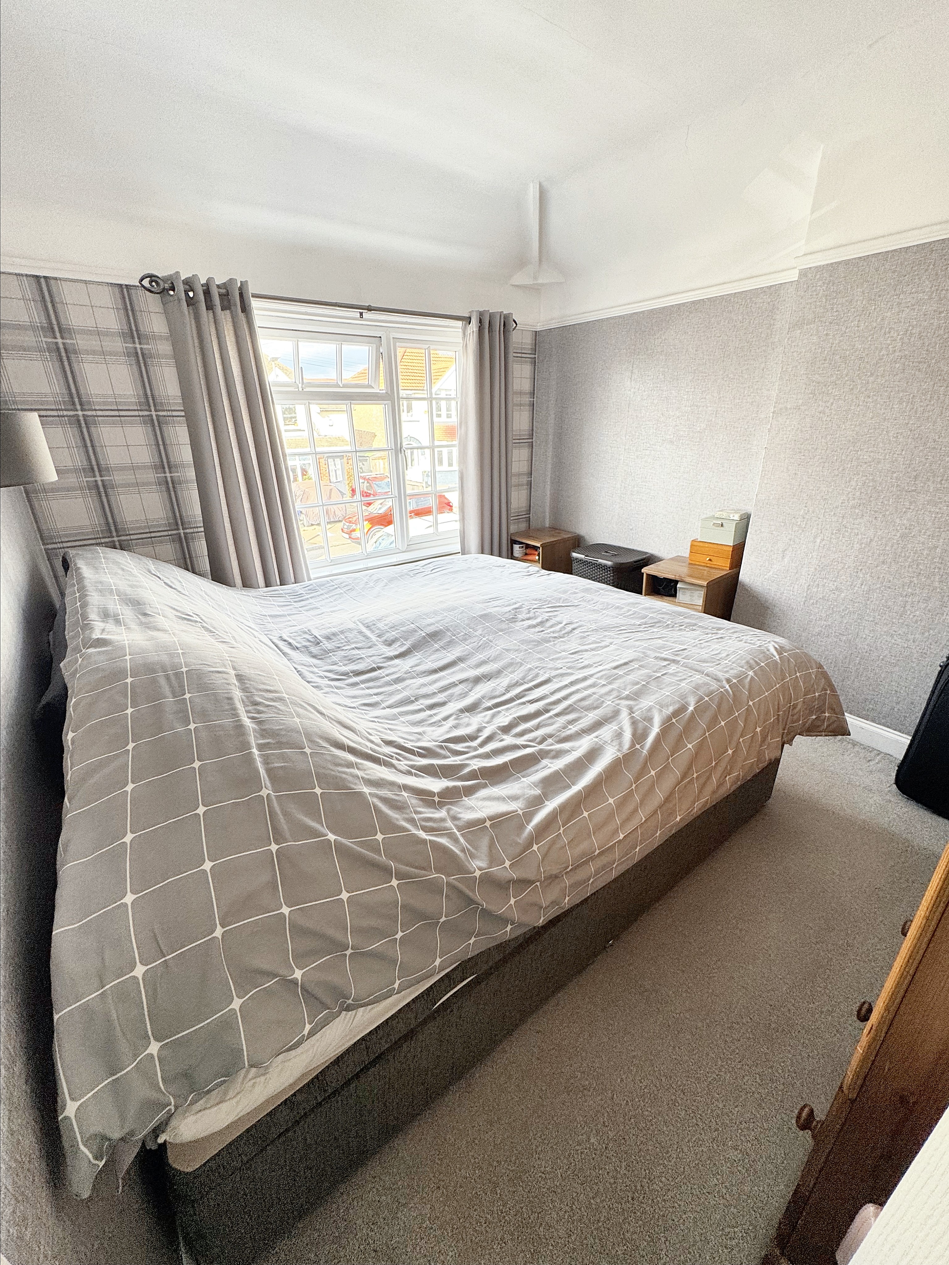 Carpeted, radiator, brick built fireplace feature. This measurement goes into the double glazed bay window. The length measurement is a minimum.