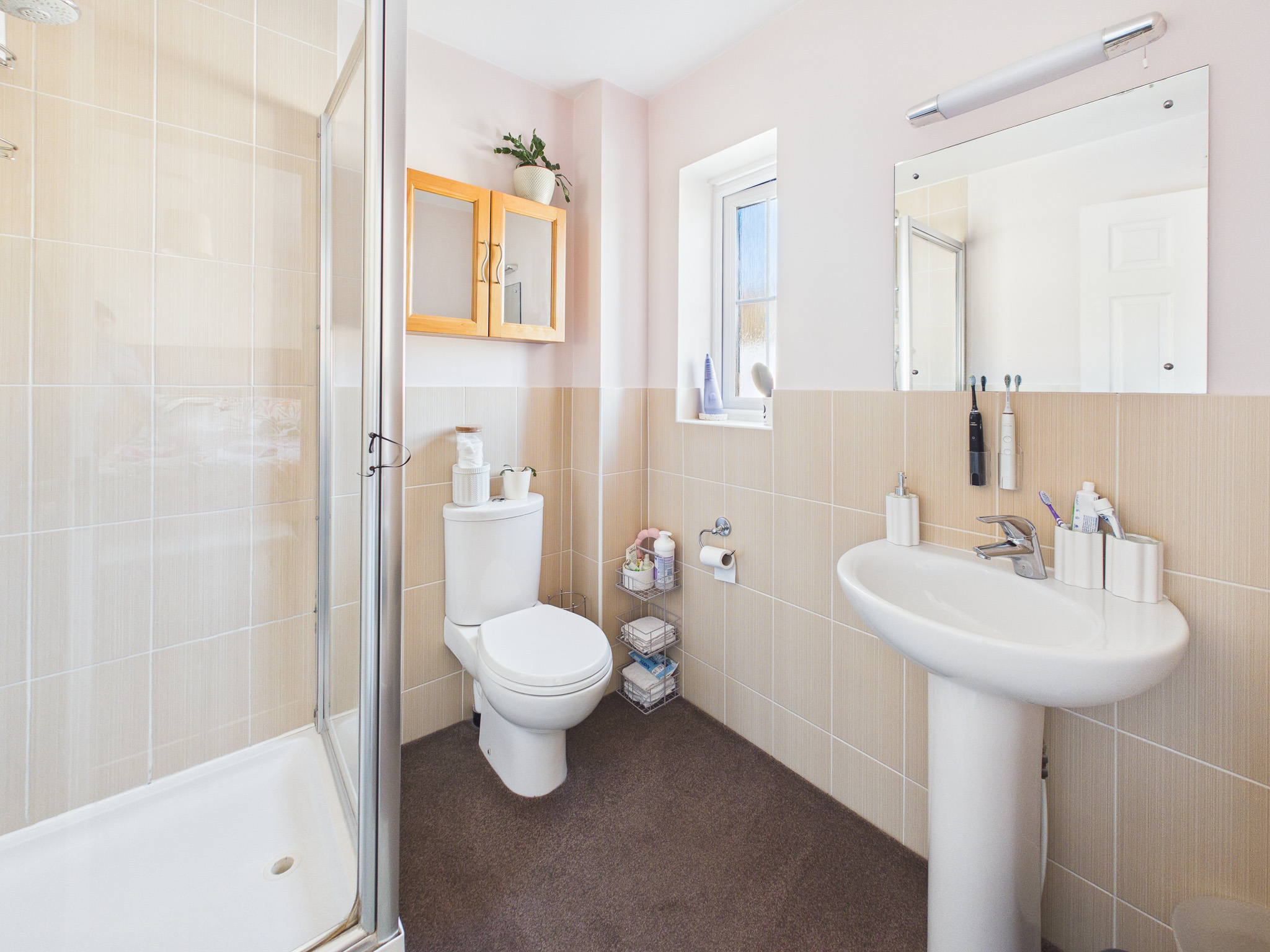 - Modern family bathroom with four-piece suite (including a bath and separate shower)