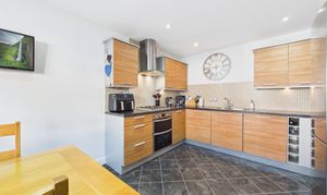 - Dining kitchen featuring fitted units, integrated appliances and generous worktop space