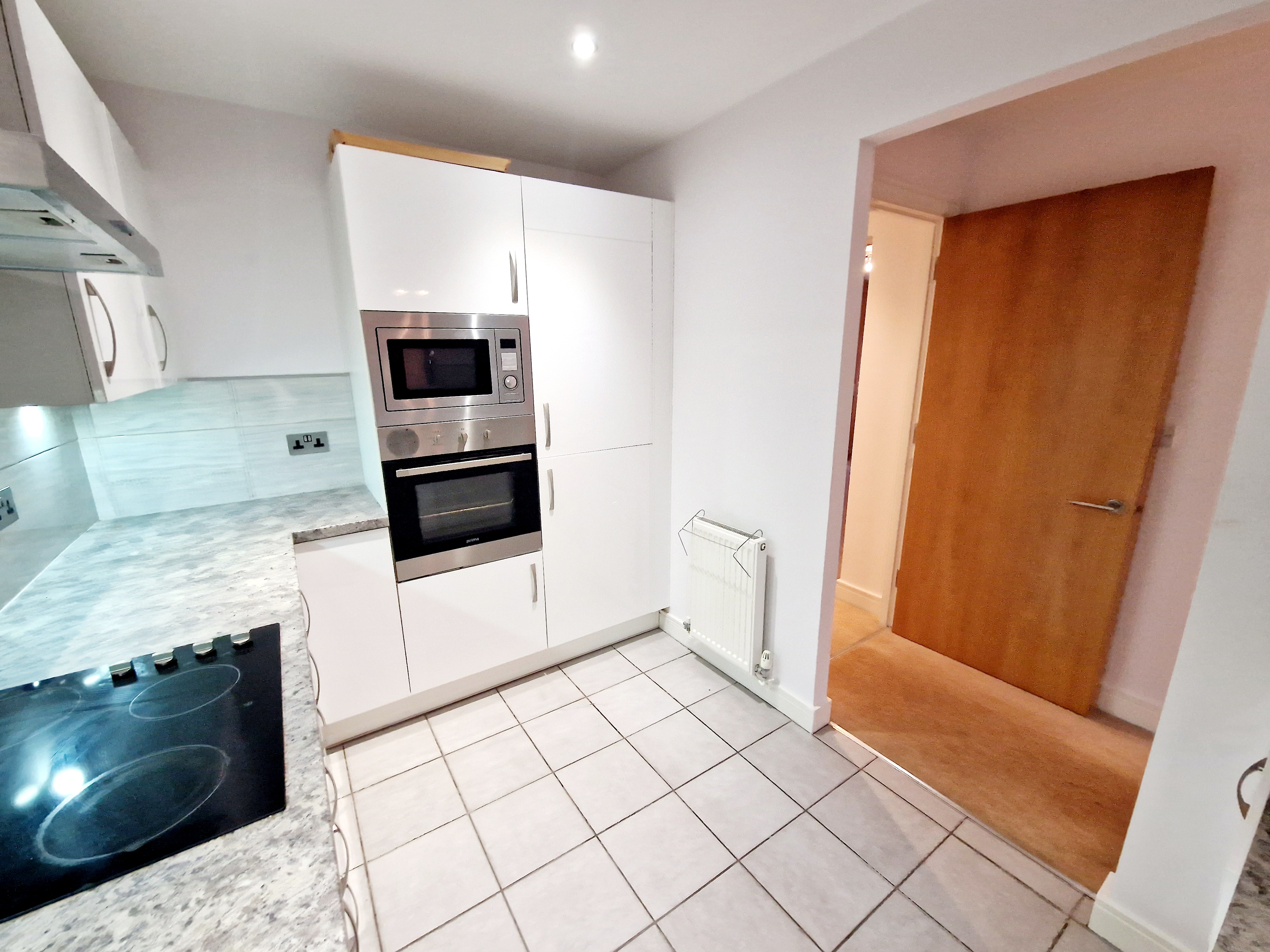 The accommodation comprises a Communal Entrance with secure intercom access, a welcoming Hall with a utility cupboard housing washer and additional storage, a spacious Lounge/Dining Room with ample natural light and a door opening to the balcony. The adjoining Kitchen is well-appointed with white gloss wall and base units, an integrated oven, microwave, hob, extractor hood, dishwasher, and fridge/freezer. The Master Bedroom, featuring an En Suite, Bedroom two, and a Family Bathroom complete the living spaces. Additionally, a parking space is provided in the gated residents' car park.