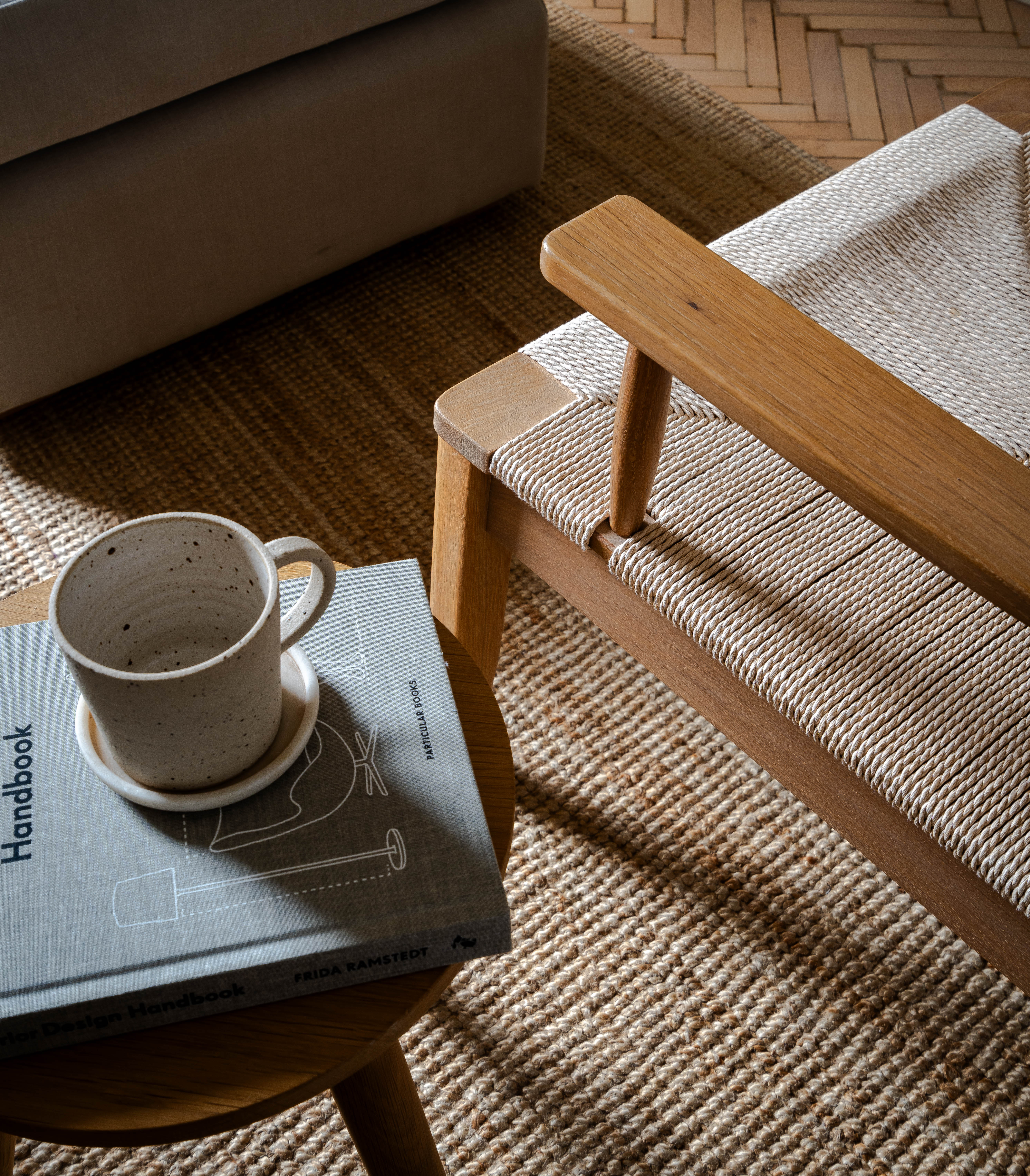 The house greets you with a traditional London Stock brick frontage, with pretty white-painted stone sills, lintels and columns to the bay window. It’s shielded from the street by a low rendered wall with a planter filled with Stipa grass and a green timber gate. This opens to a patio with sawn-edge grey Kandula sandstone, Cotswold stone chippings, a smoke bush and Hydrangea Paniculata Limelight, which changes from white to green to pink over the late summer months.