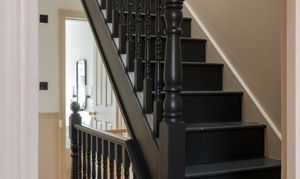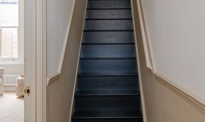 Head upstairs via a staircase with timber treads, bannister and spindles painted in ‘Lamp Black’ by Little Greene to the first floor, where the original floorboards have been painstakingly sanded and restored, flowing along the landing and into both bedrooms.