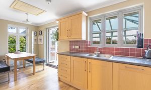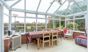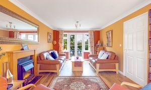 The ground floor comprises an entrance hall with stairs to first floor, a cloakroom and storage understairs storage. A spacious twin-aspect Living Room with an electric fireplace French doors opening to the garden. The second reception room can be used as a separate dining room or snug room. To the rear is a Kitchen/breakfast room fitted with a range of high and low units, integrated cooker and gas hob, integrated fridge/freezer, splashback tiling and French doors opening to the conservatory. The conservatory is generously sized and capable of fitting an 8-10 seater dining table and allows for views of the rear paddock. A utility room with further units, steel sink, splashback tiling, plumbing for washing machine, and an external door to garden.