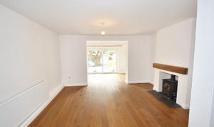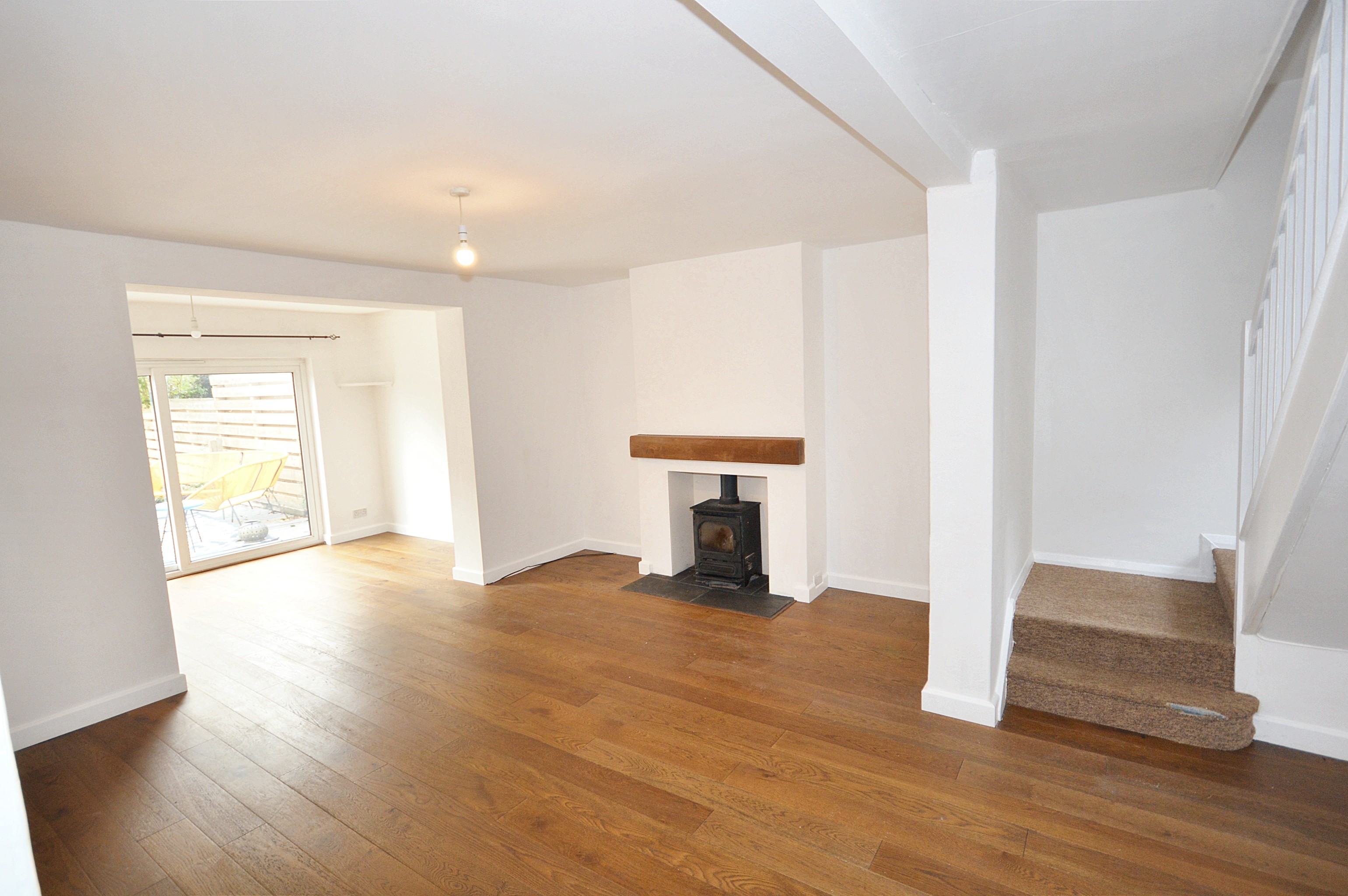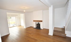 An entrance porch leads to an inner hallway where you will find a family bathroom with shower over bath. A fitted kitchen/dinner and access to a separate utility. The through living room has a wood burner and sliding patio doors to the good sized rear garden. Stairs lead to two double bedrooms and one good sized single bedroom.