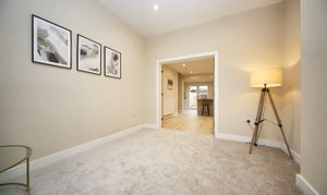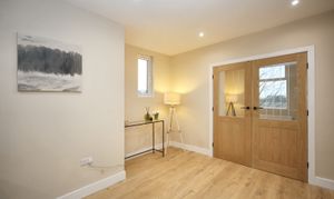 To the front, there is convenient street parking and a welcoming porch leading into a bright hallway. Throughout the home, high-quality oak internal doors provide a stylish, modern finish. The cosy lounge features double doors that open seamlessly into the impressive open-plan kitchen diner, complete with a breakfast bar, ideal for entertaining and everyday living.