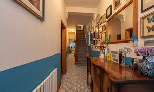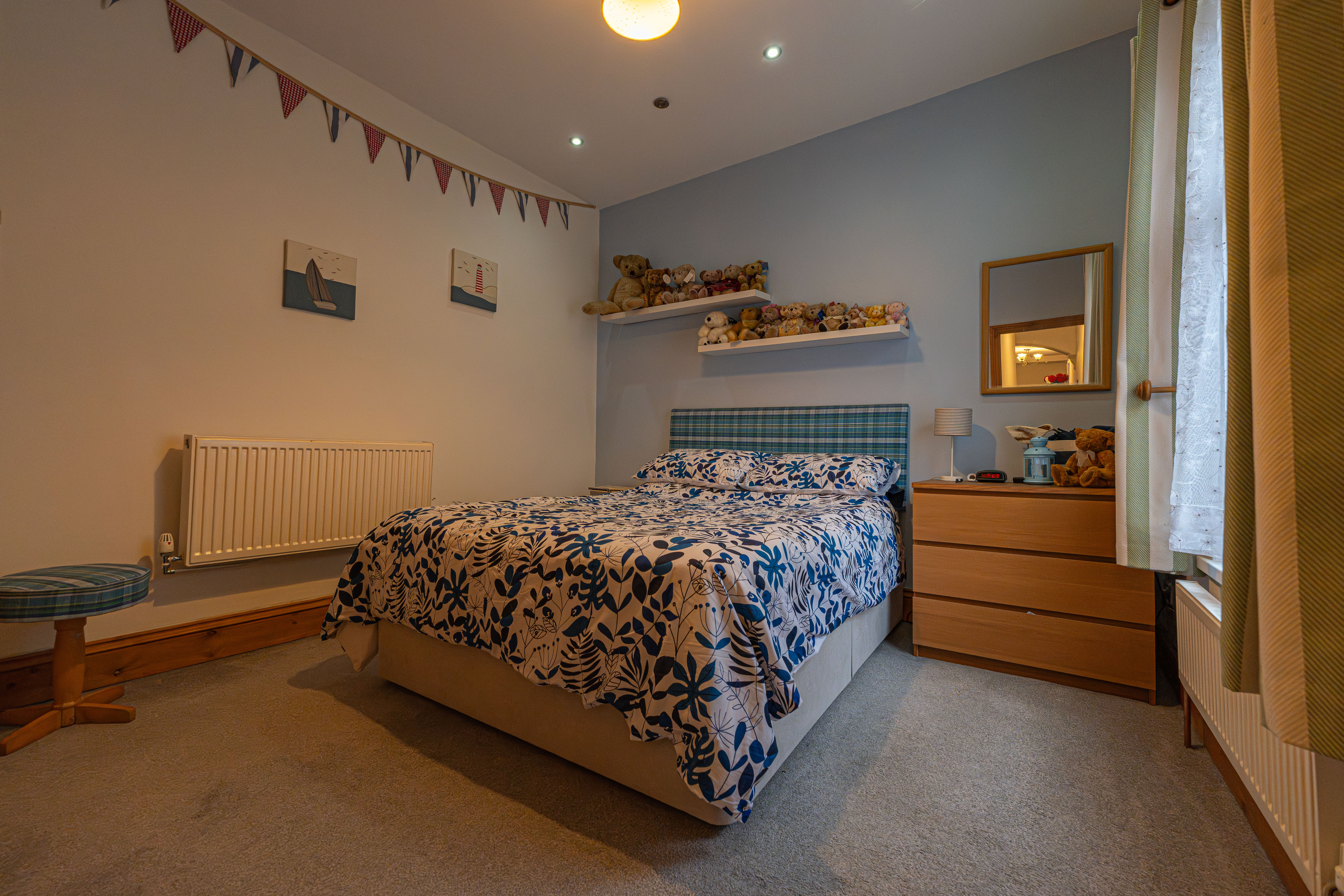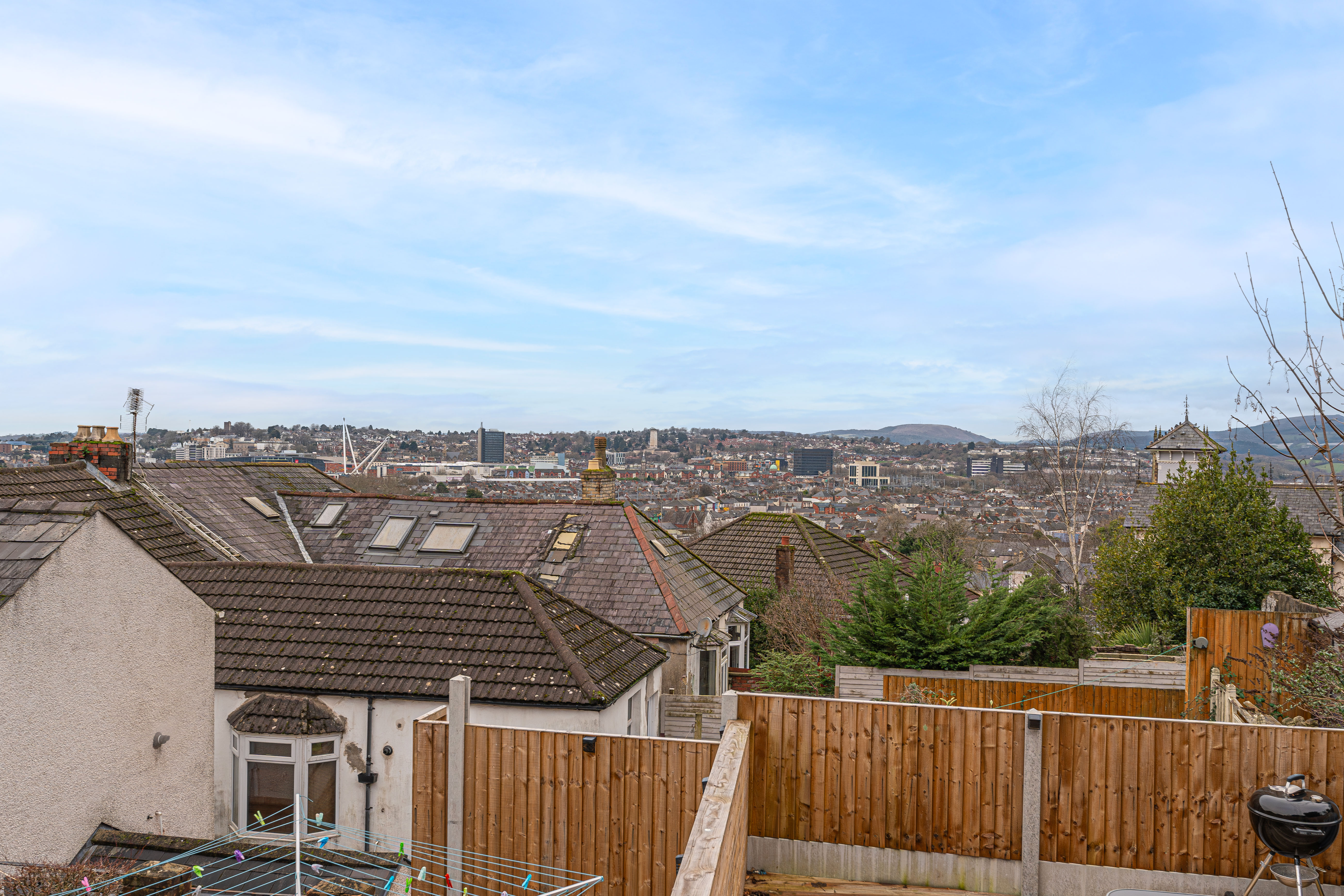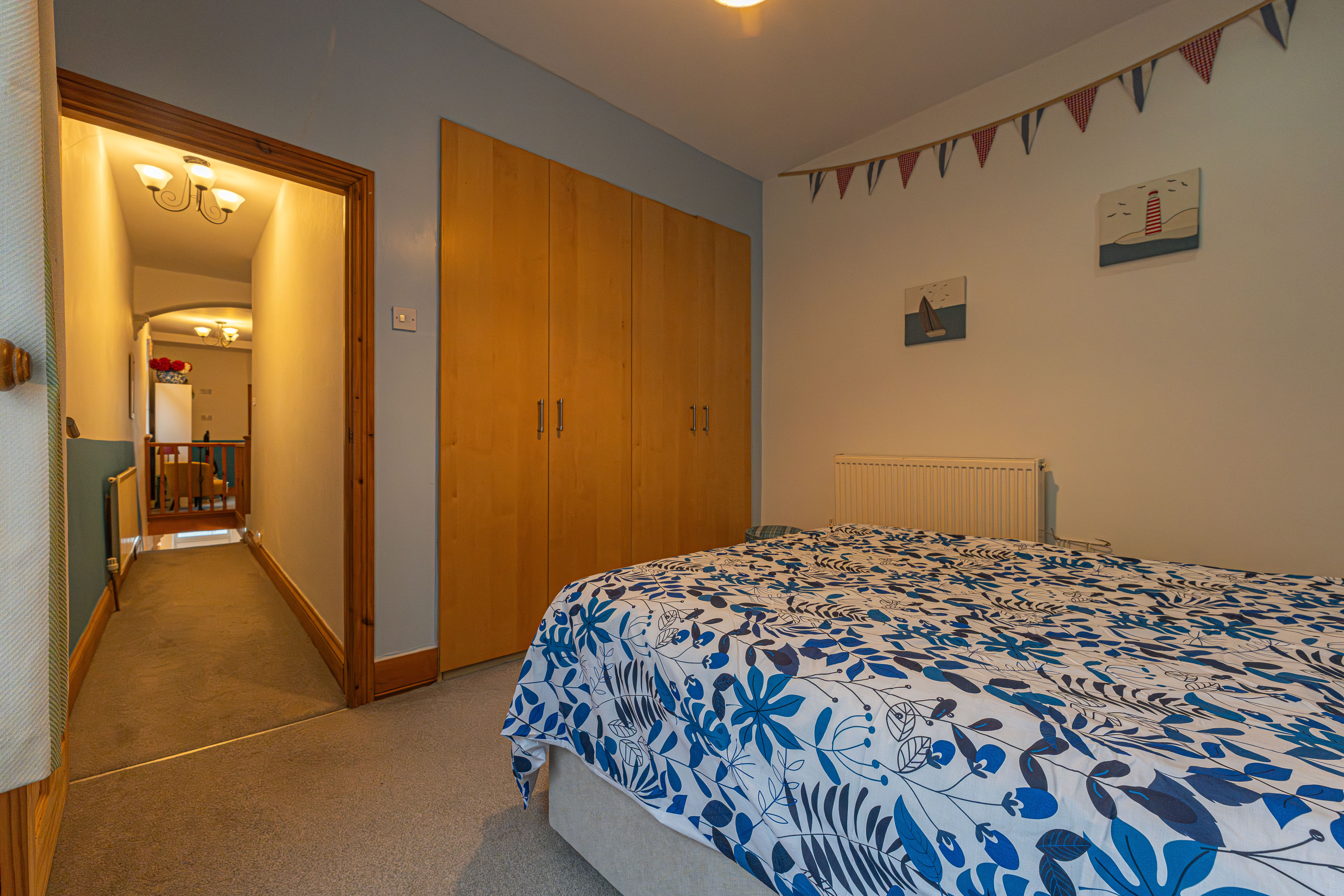 Upstairs we have three generously proportioned double rooms, with the principal suite featuring a considerable size and multiple windows to brighten up the room with a view across the city - including the bay aspect from the floor below. The third bedroom has the added benefit of fitted wardrobes for convenient storage, while the hallway itself is vast enough to accommodate a snug reading area or an office space. The modern bathroom is another highlight - showcasing a bath suite, dual sinks, and a walk in rainfall shower surrounded by a stylish decorative tiling.
