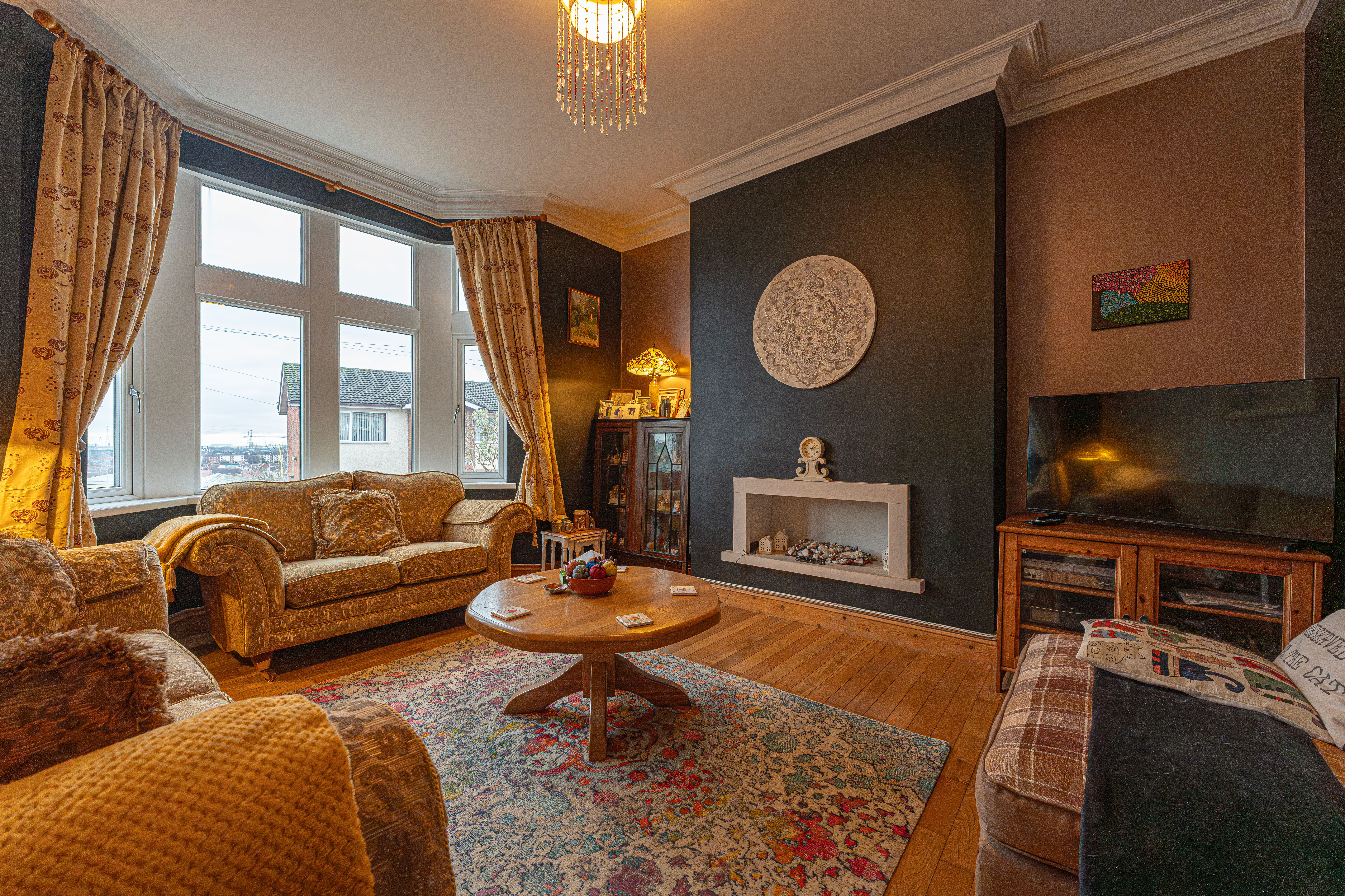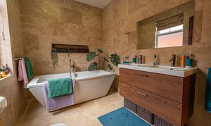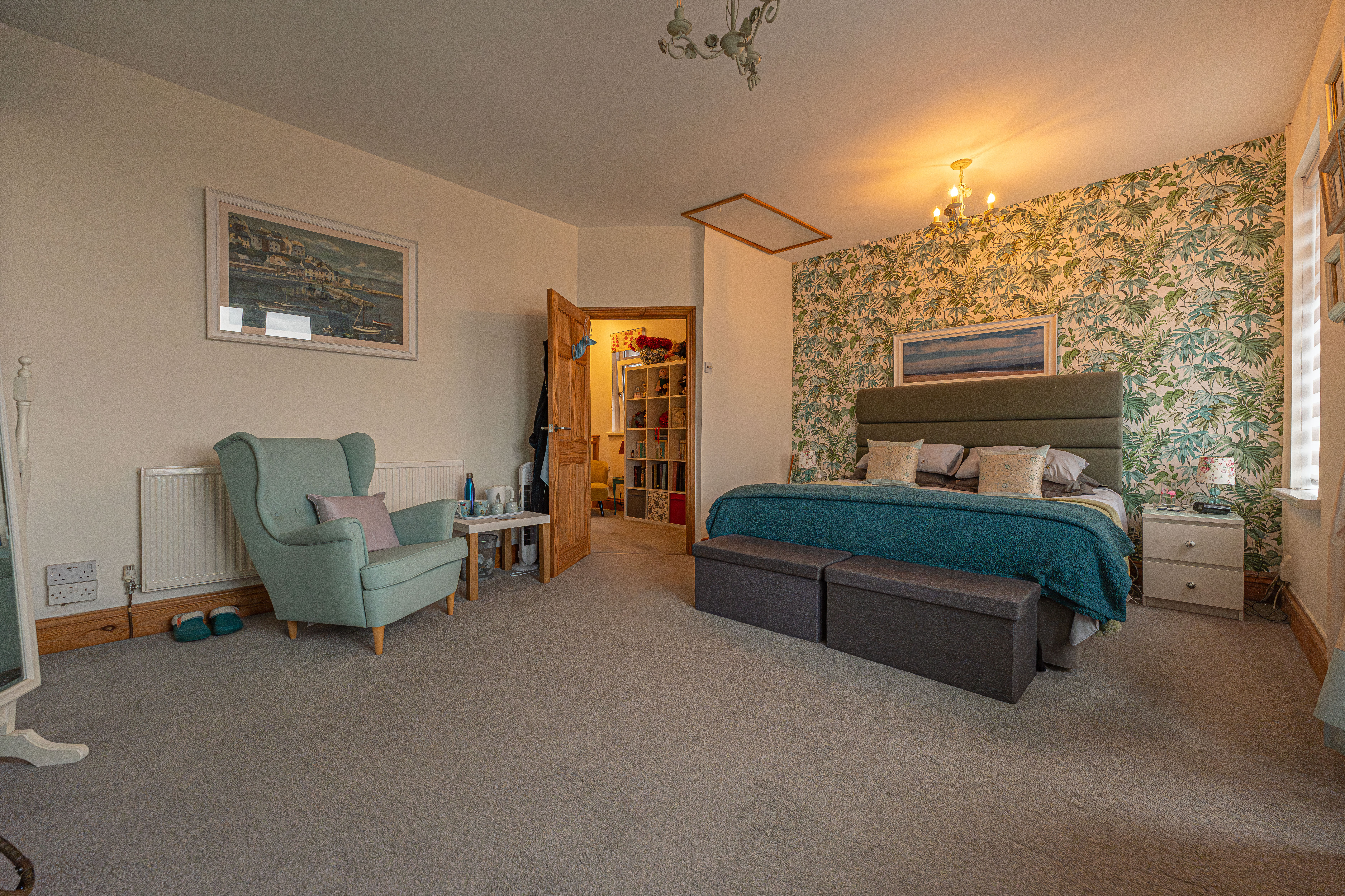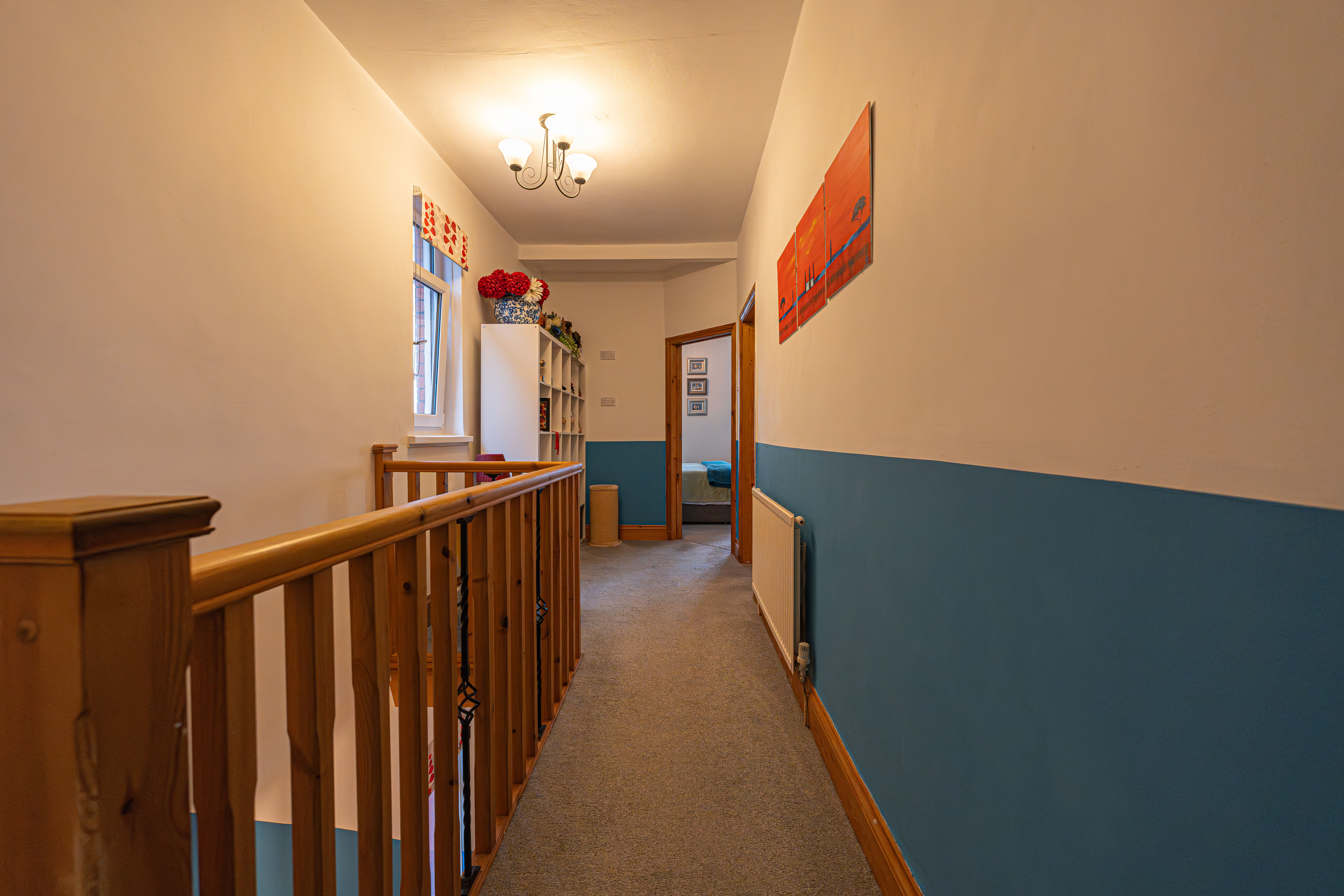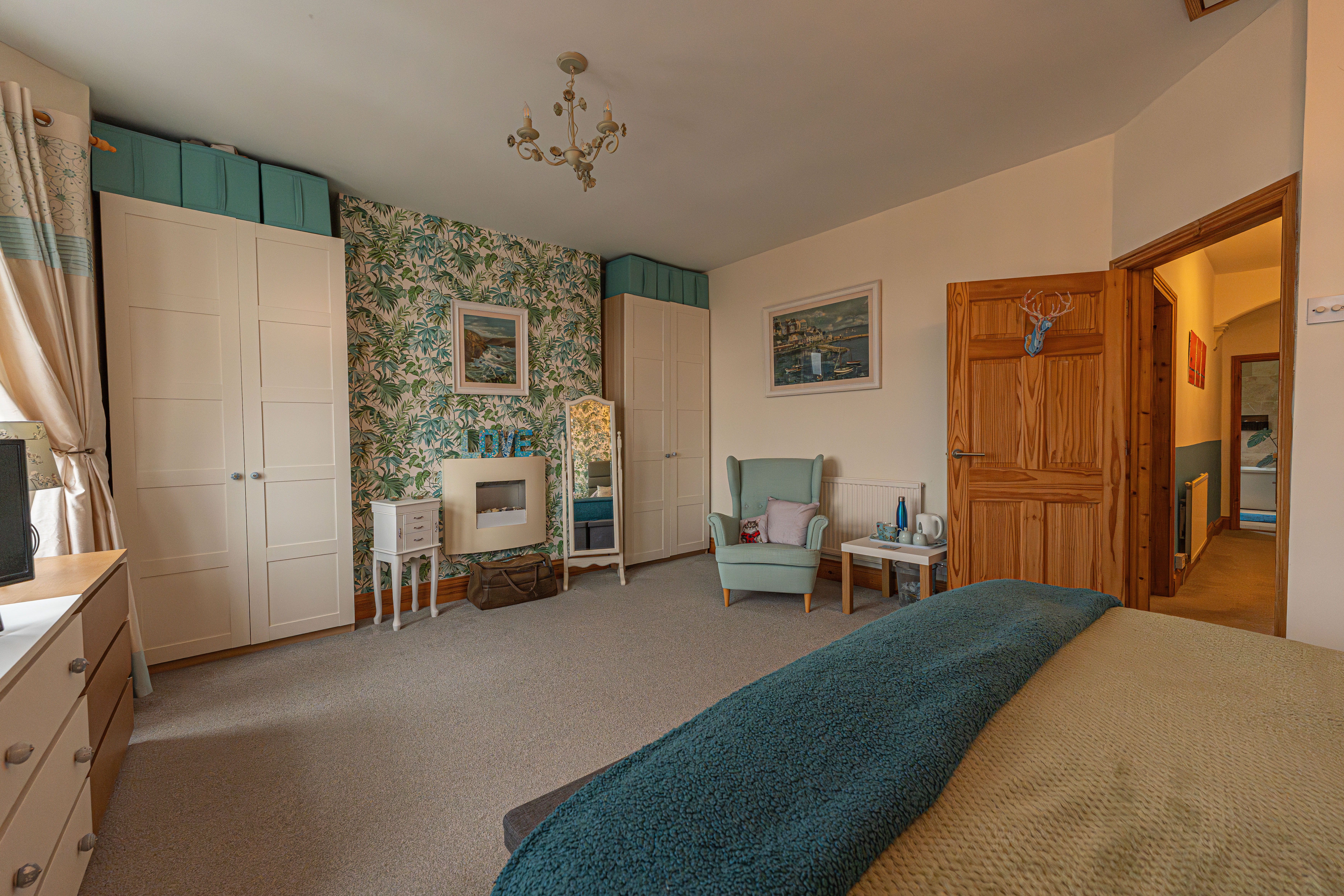 Upstairs we have three generously proportioned double rooms, with the principal suite featuring a considerable size and multiple windows to brighten up the room with a view across the city - including the bay aspect from the floor below. The third bedroom has the added benefit of fitted wardrobes for convenient storage, while the hallway itself is vast enough to accommodate a snug reading area or an office space. The modern bathroom is another highlight - showcasing a bath suite, dual sinks, and a walk in rainfall shower surrounded by a stylish decorative tiling.