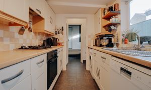 - Well arranged galley kitchen with full range of cabinetry and appliances.