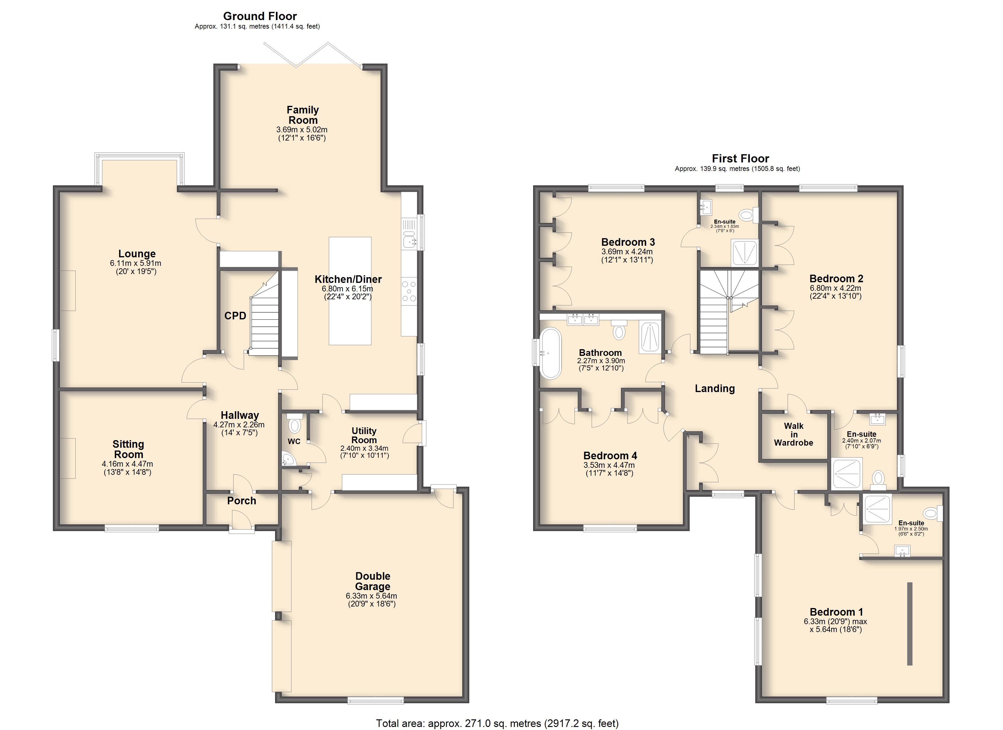 - Four Double Bedrooms (All En-Suite including Guest Bedroom With Access To Bathroom)