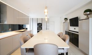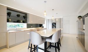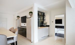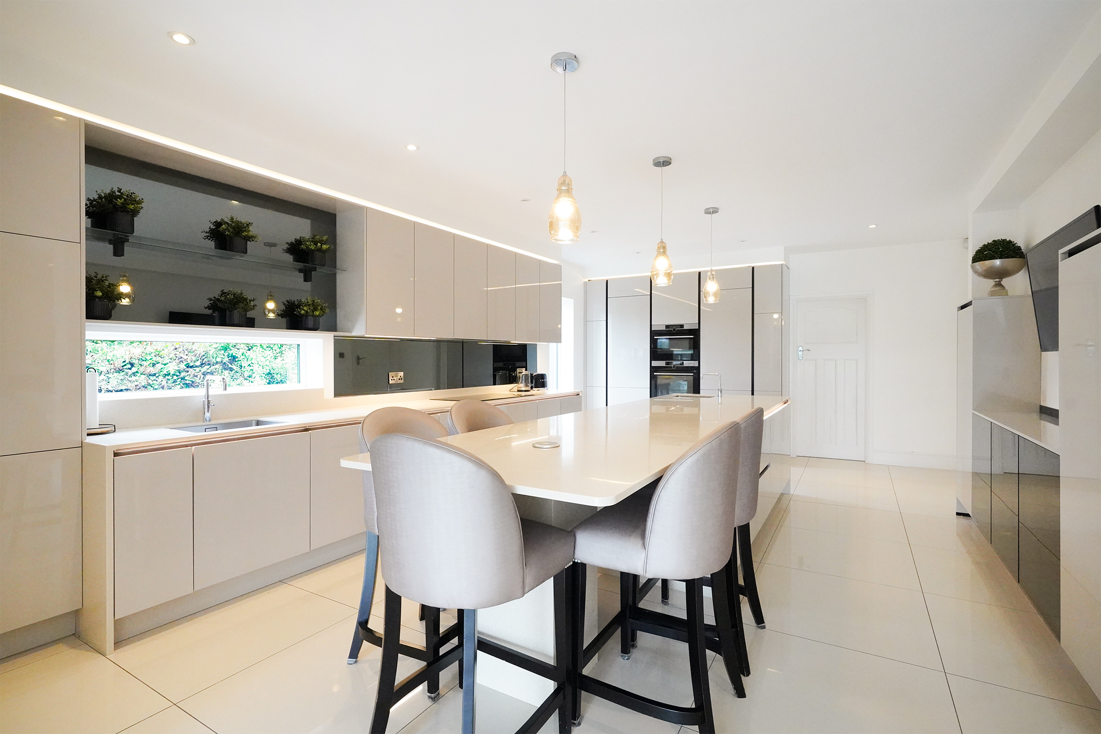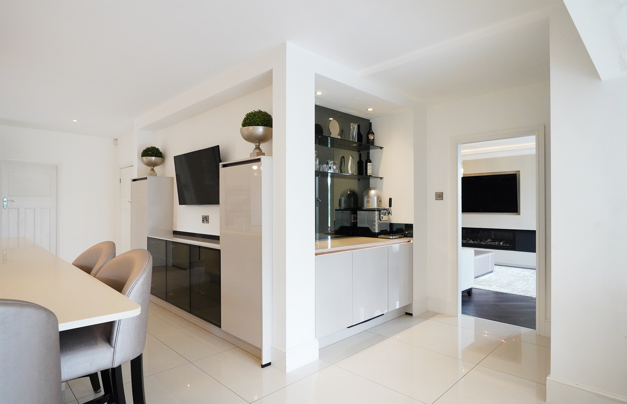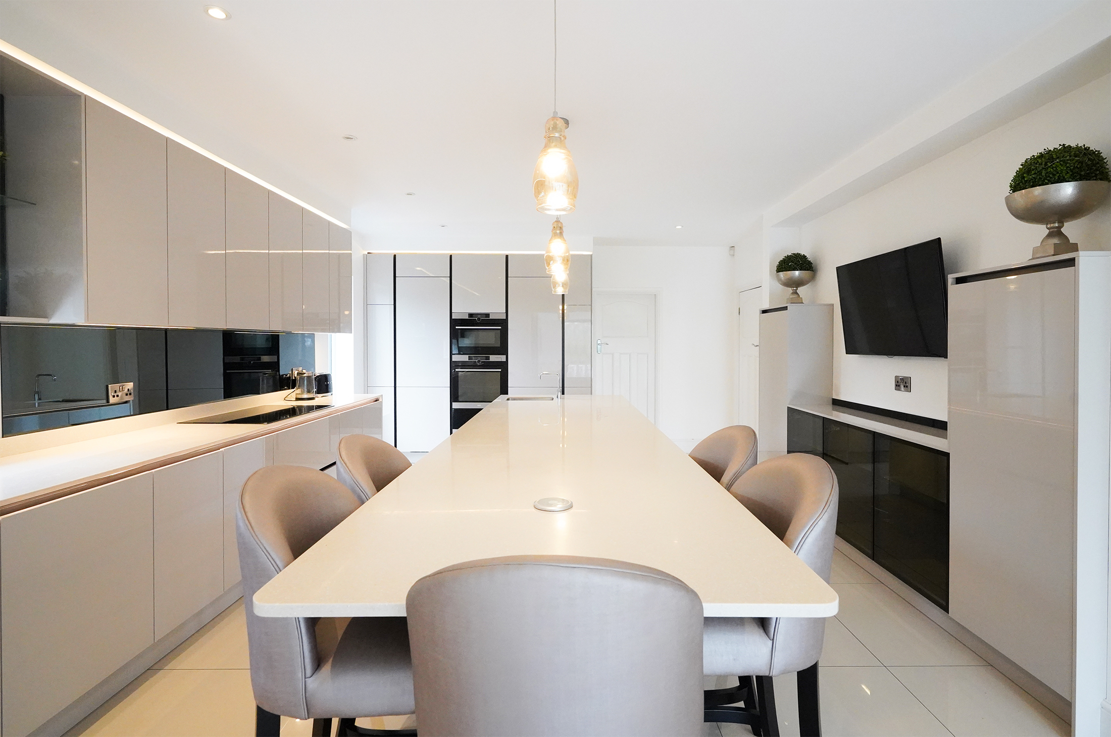 - Open-Plan Breakfast Kitchen With Integrated Appliances, Quartz Worktops and Bar