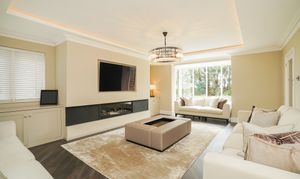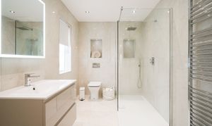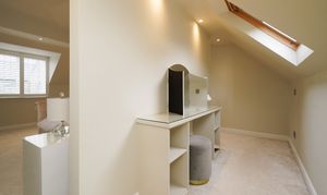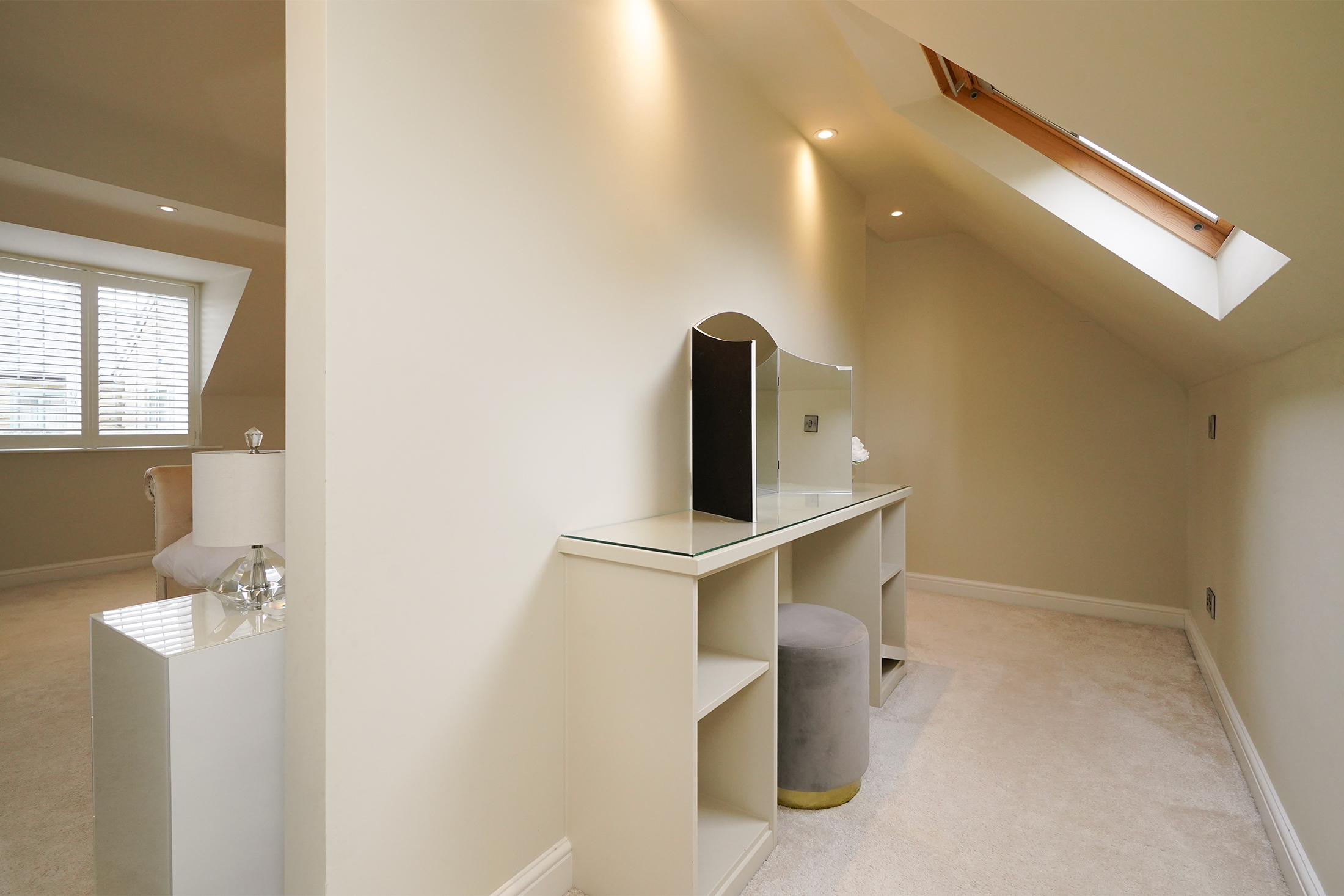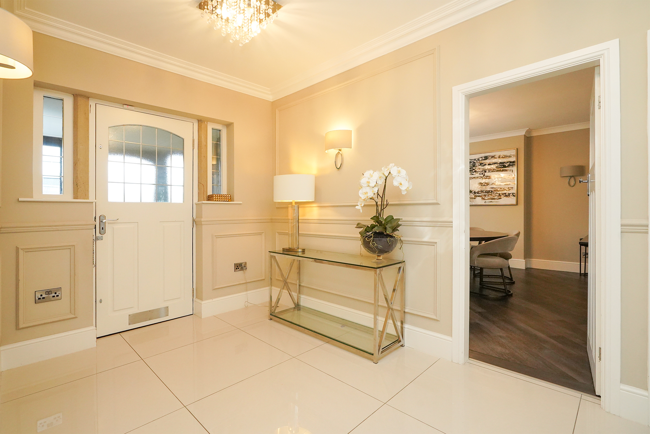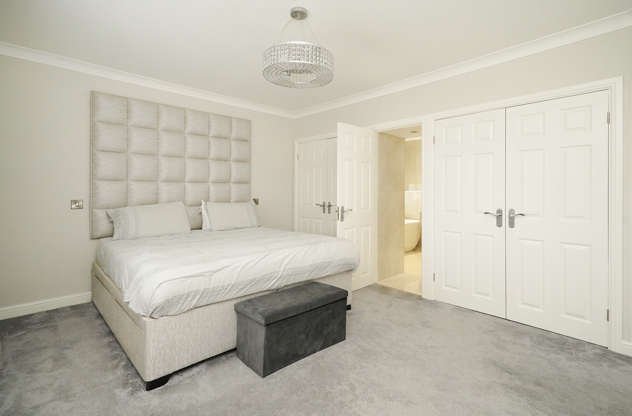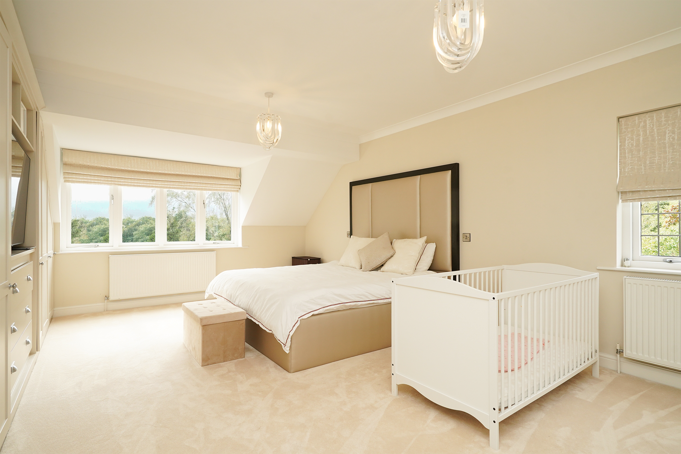 The bedrooms are all beautifully appointed, providing a great deal of flexibility for a growing family. Each bedroom is complemented by a luxury en-suite, with one bedroom sharing the stunning five-piece family bathroom. Each bedroom is flooded with natural light, and there are plenty of storage options available.