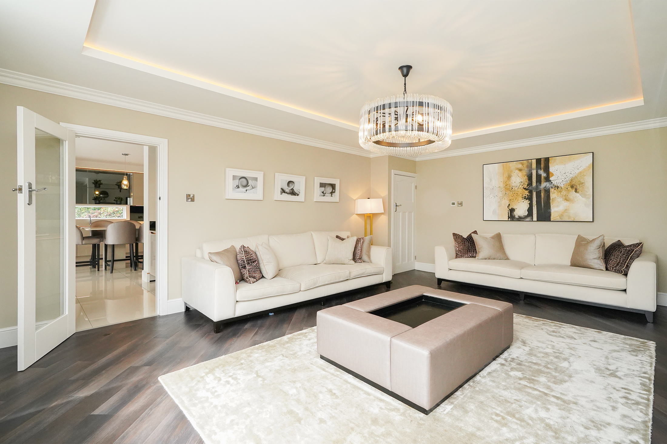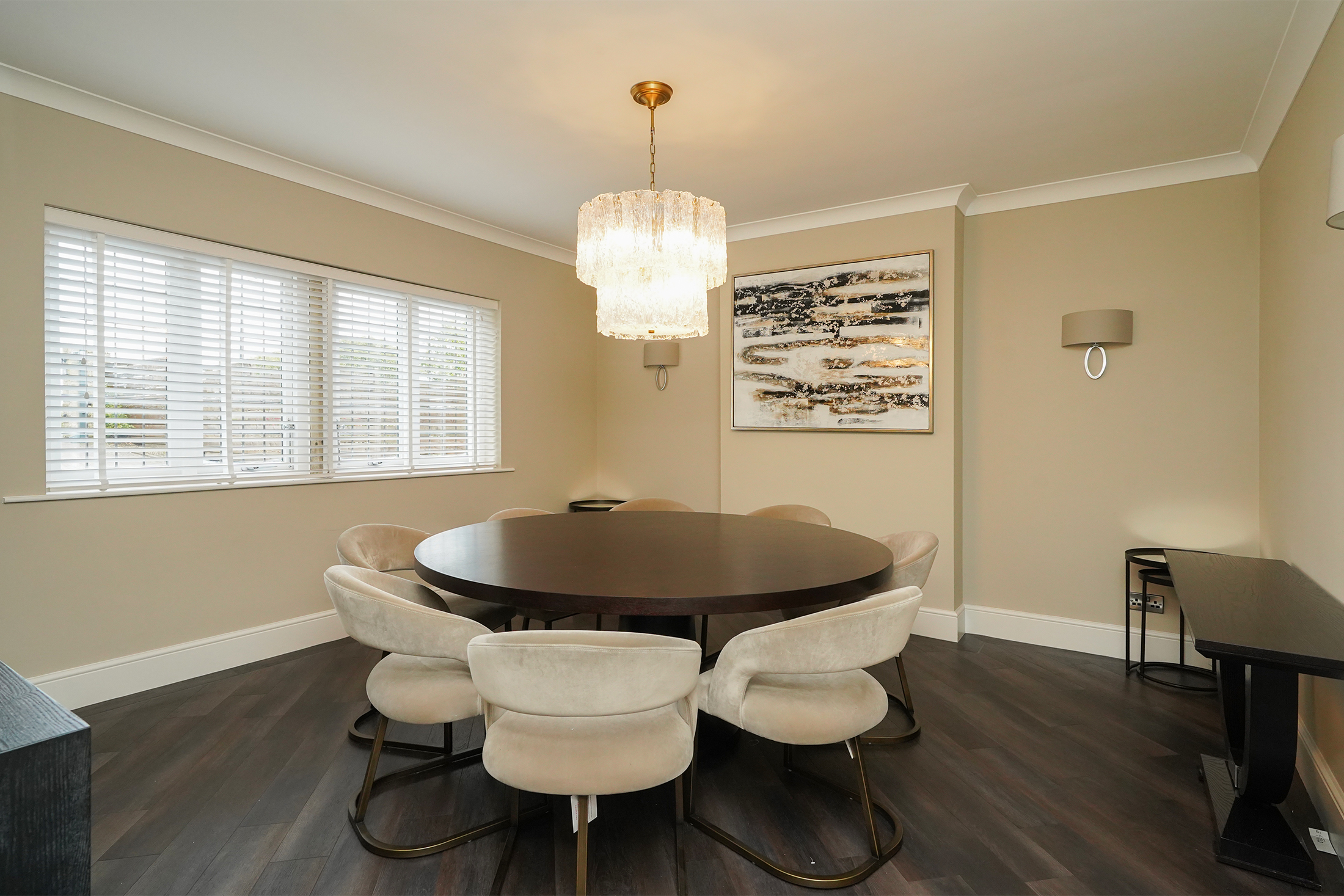 The ground-floor layout is perfect for growing families and those who like to entertain. The breakfast kitchen is finished with a full range of integrated appliances and quartz worktops, with a bar area that flows seamlessly into the family room that overlooks the garden. The dual-aspect lounge is light and airy, providing the ideal setting for a family night in. A separate dining room is another flexible space with many uses, and you also have the convenience of a fitted utility room and internal access to the garages.