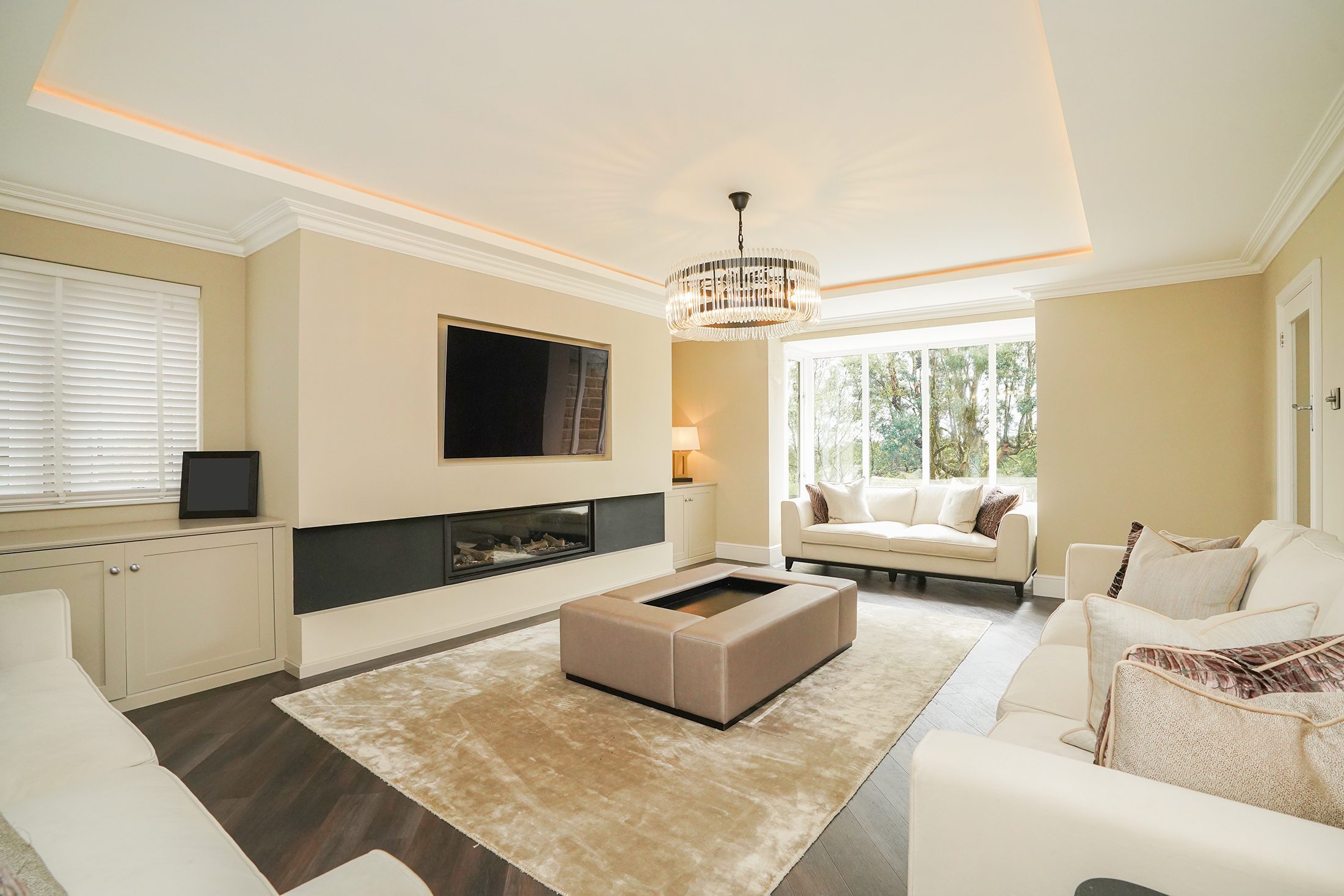 Outside, the property boasts a stunning, fully enclosed south-facing low-maintenance garden. A decked terrace with glass balustrade legs down to the first seated area with space for a BBQ, then down to a fabulous patio and artificial lawn. It’s a great space for those with children and perfect for entertaining. You also have a mature garden protected by mature trees. The property also benefits from an internal double garage and a driveway that can accommodate multiple vehicles, with fully automated electric gates and intercom access.