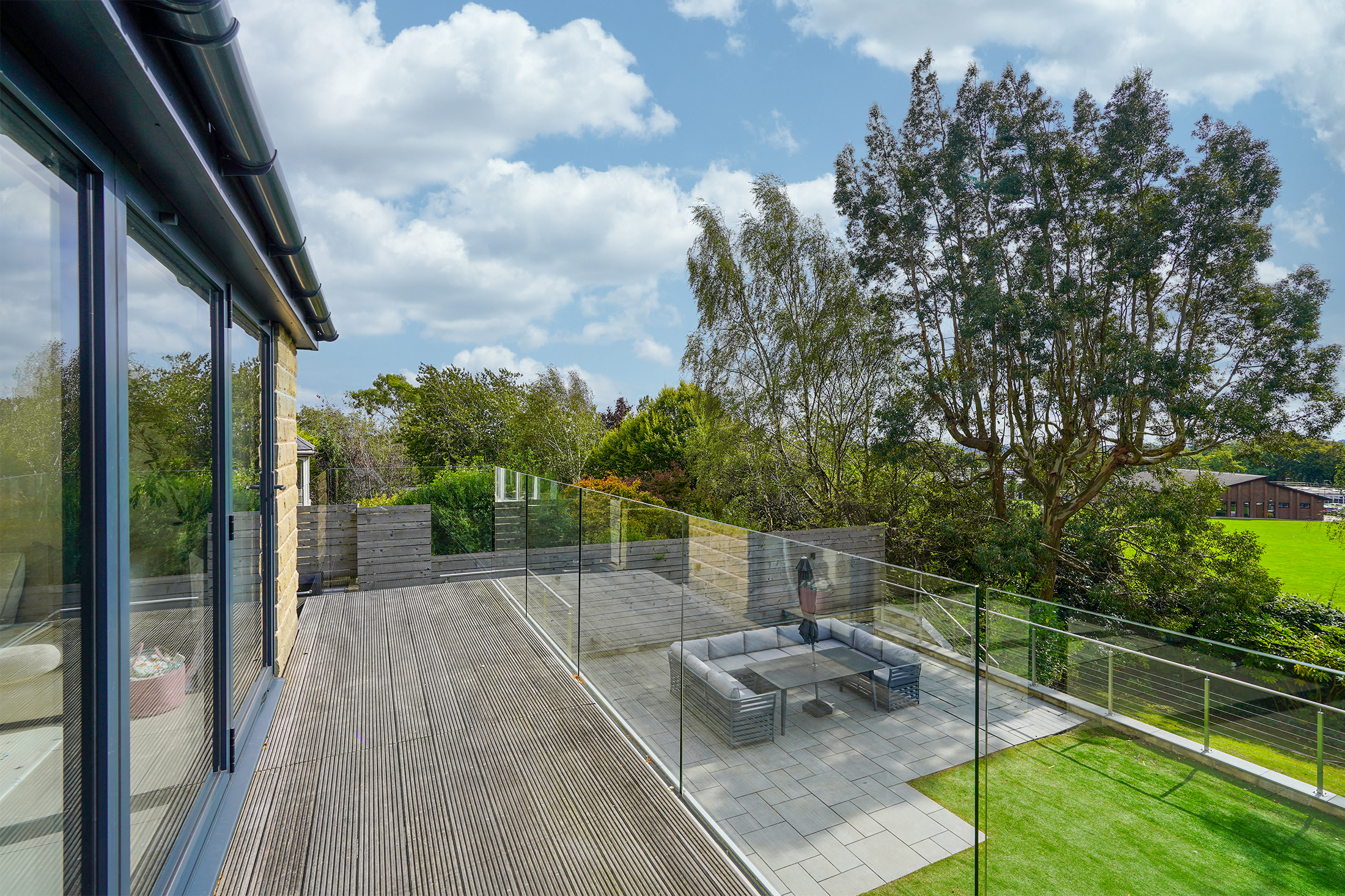 - Low-Maintenance Landscaped Garden With Decked Terrace, Glass Balustrade, Paved Patio & Artificial Lawn