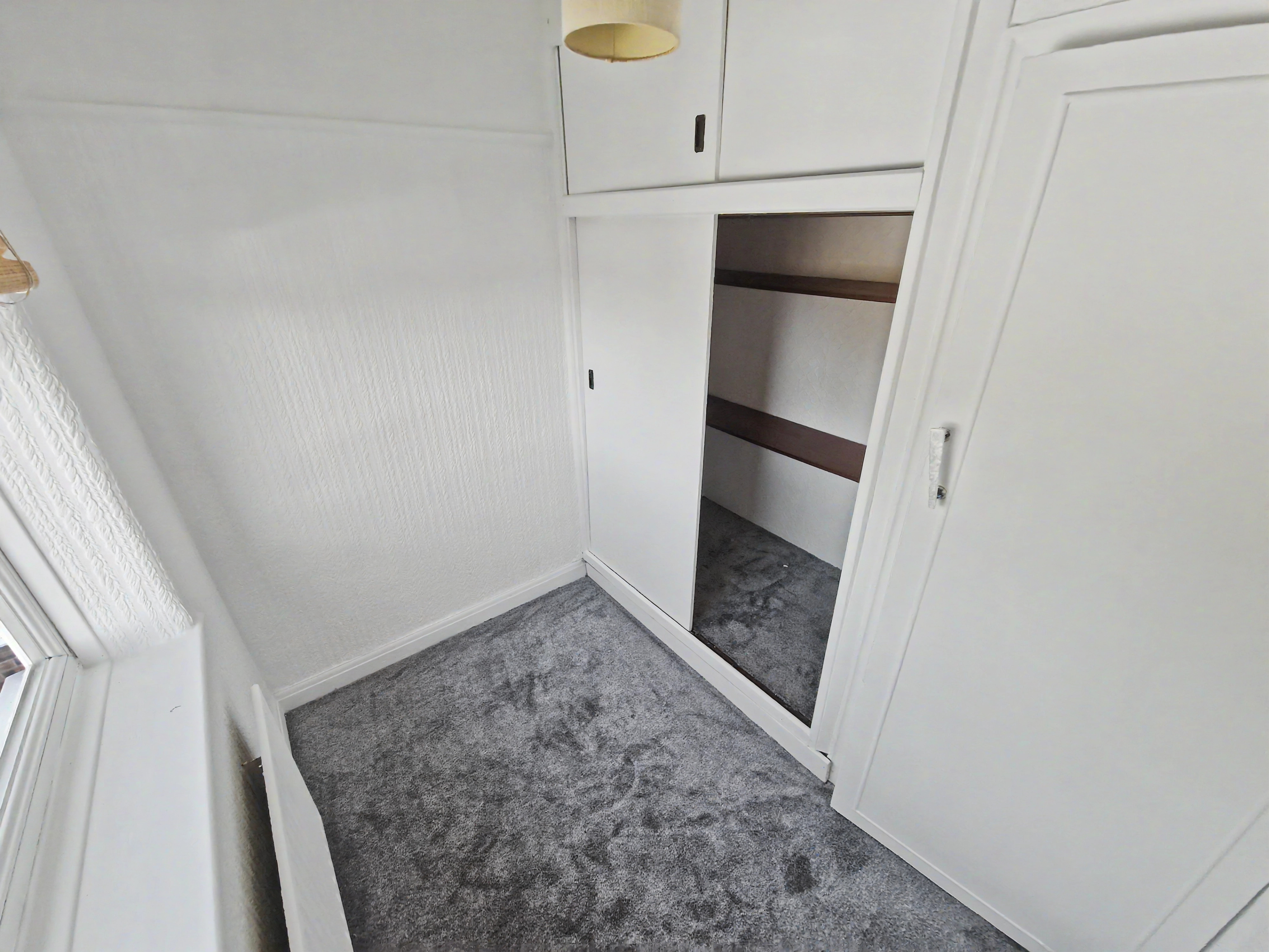 Upon entering, you are welcomed into a bright entrance hallway, freshly decorated and fitted with new carpets throughout, as well as a useful storage cupboard.