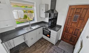 To the rear, the kitchen has been recently fitted with a modern finish, including a new oven and hob, and provides space for a washing machine and fridge freezer. A handy under-stairs storage cupboard is also included, along with direct access to the rear garden via the back door.