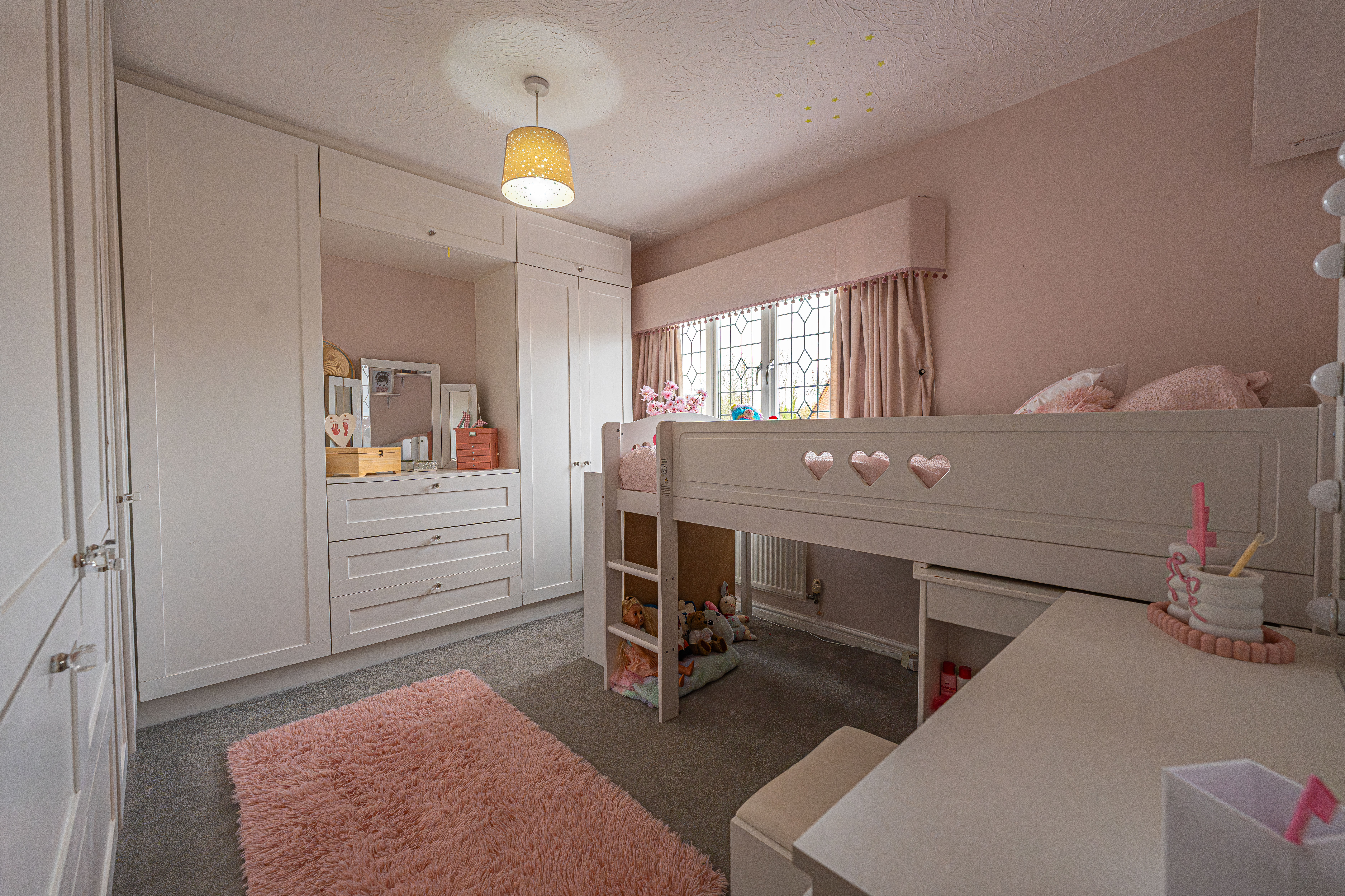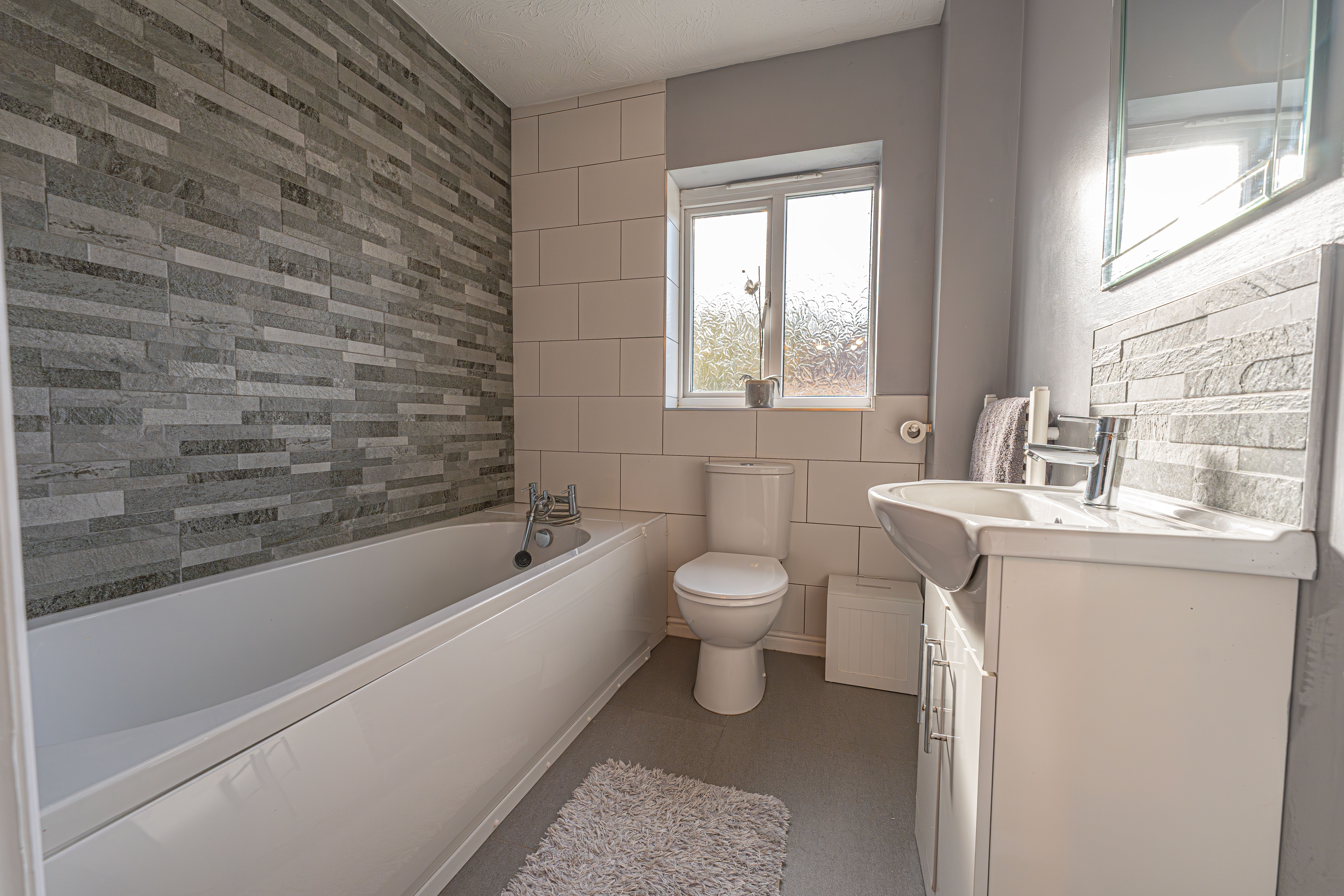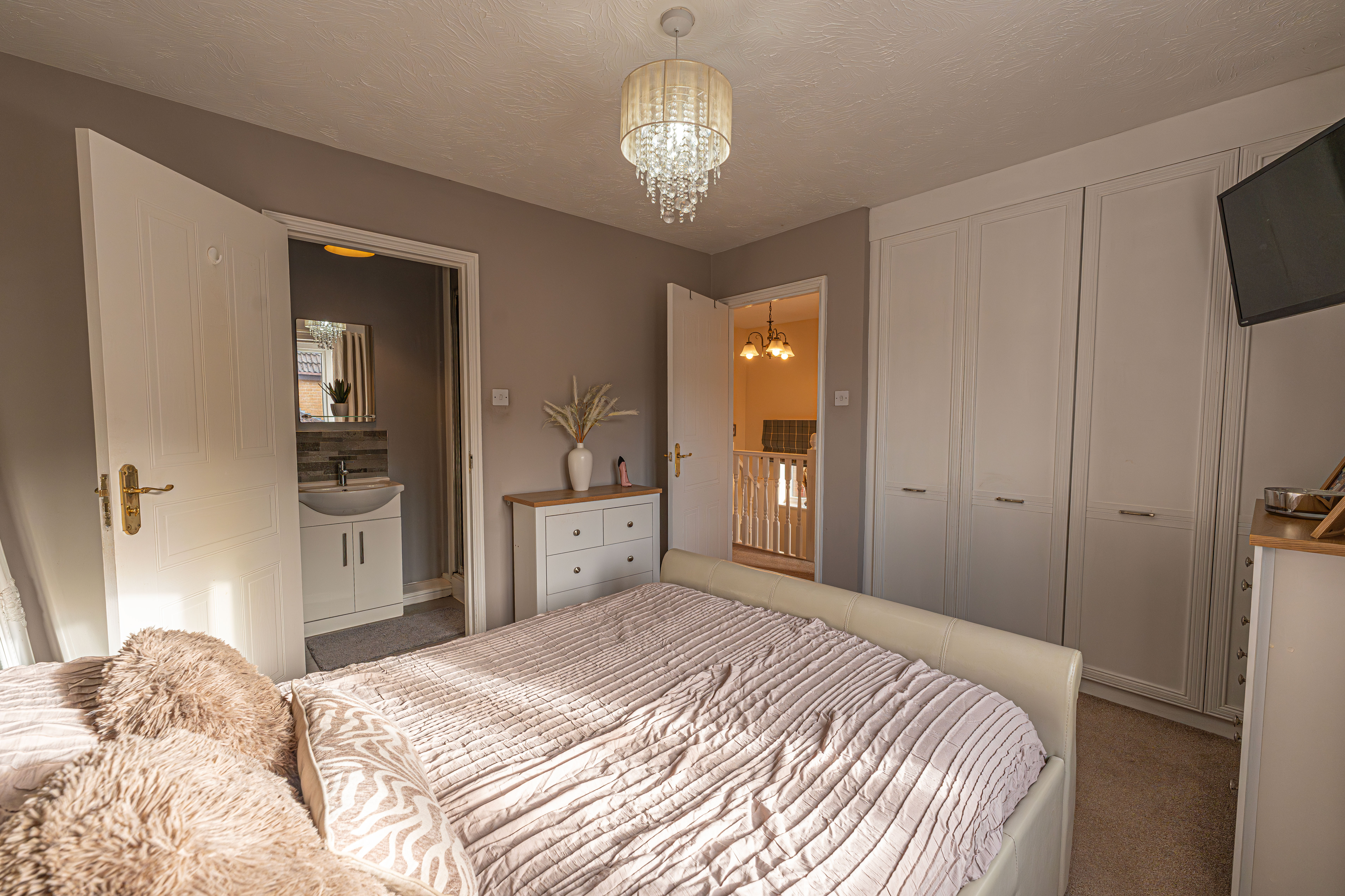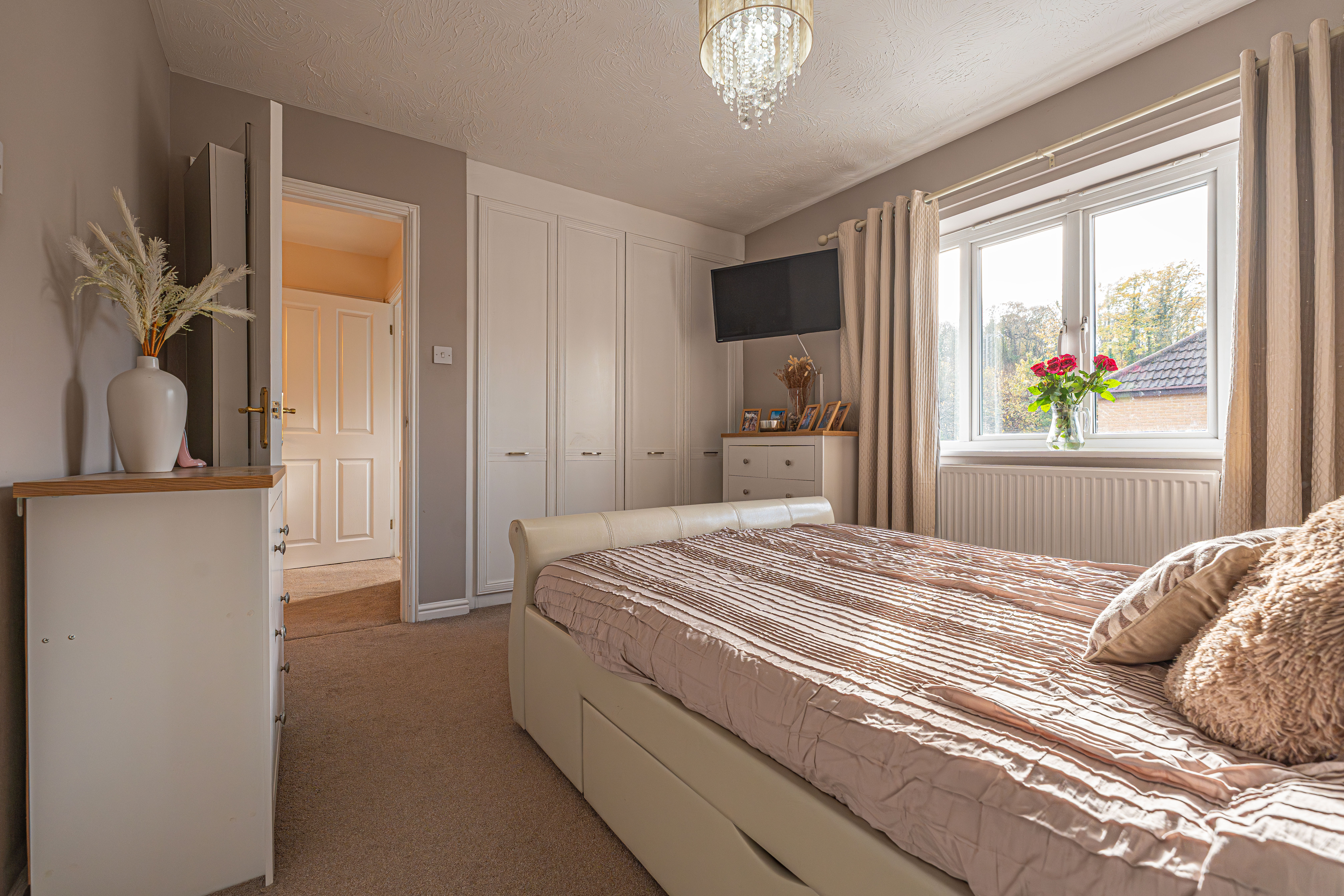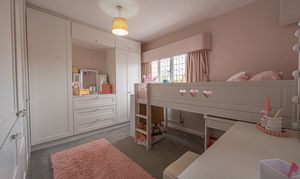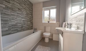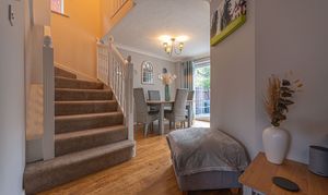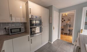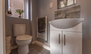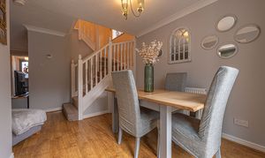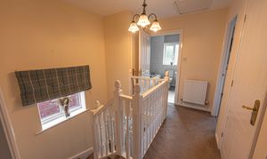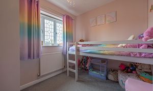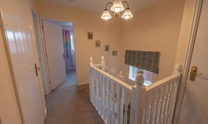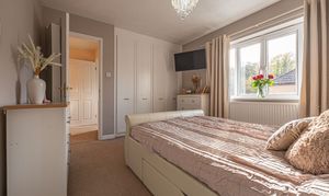 Ascending to the first floor we can find three bedrooms, with two of the bedrooms sized as double rooms and the third as a comfortable single, which could also work very well as a home office, dressing room or nursery. The primary bedroom has the added benefit of a private en-suite shower room, in addition to a fitted wardrobe for added convenience. Fitted storage can also be found in the secondary bedroom, as well as two airing/storage cupboard in the hallway, which also leads to the family bathroom, equipped with a bathtub and shower.
