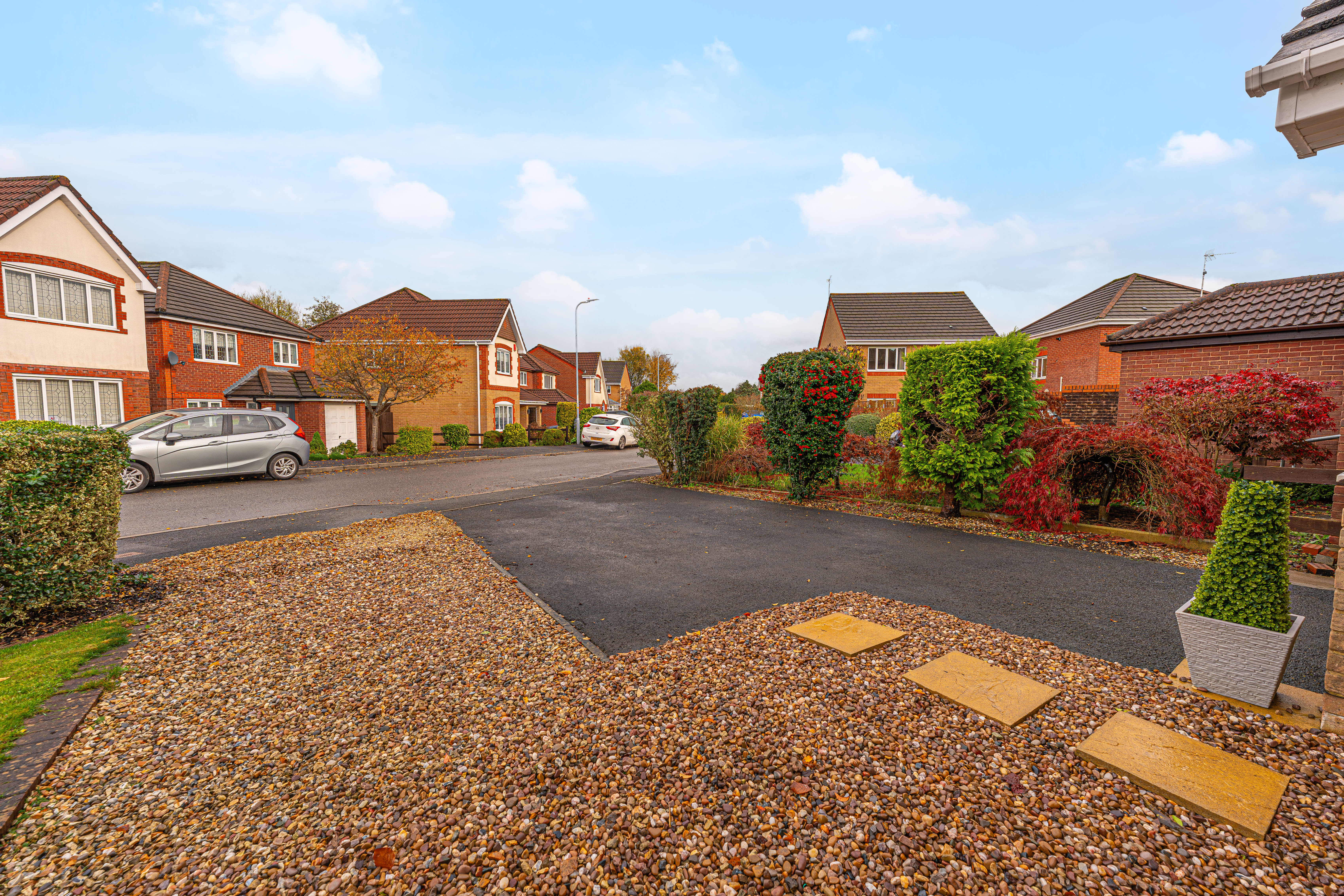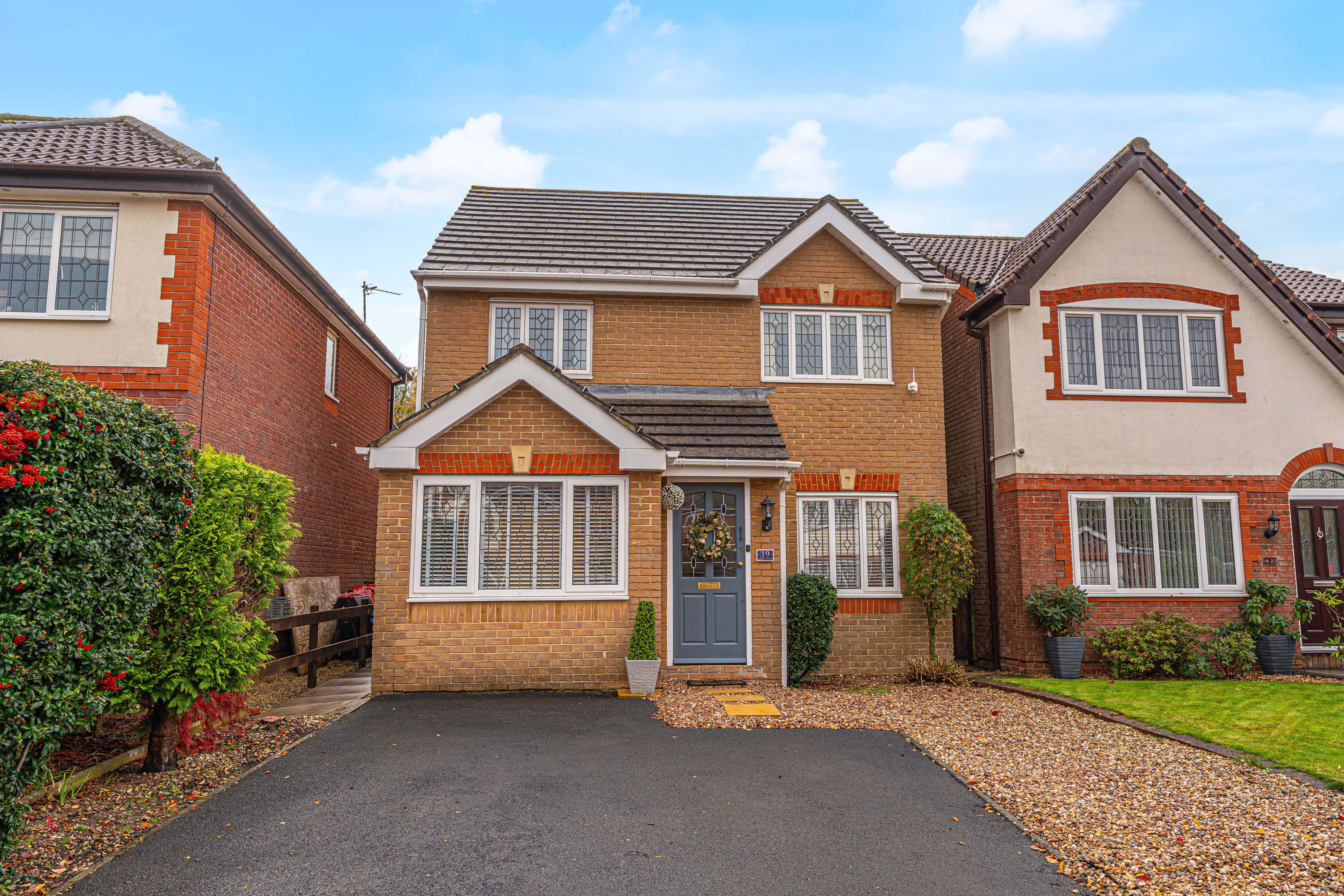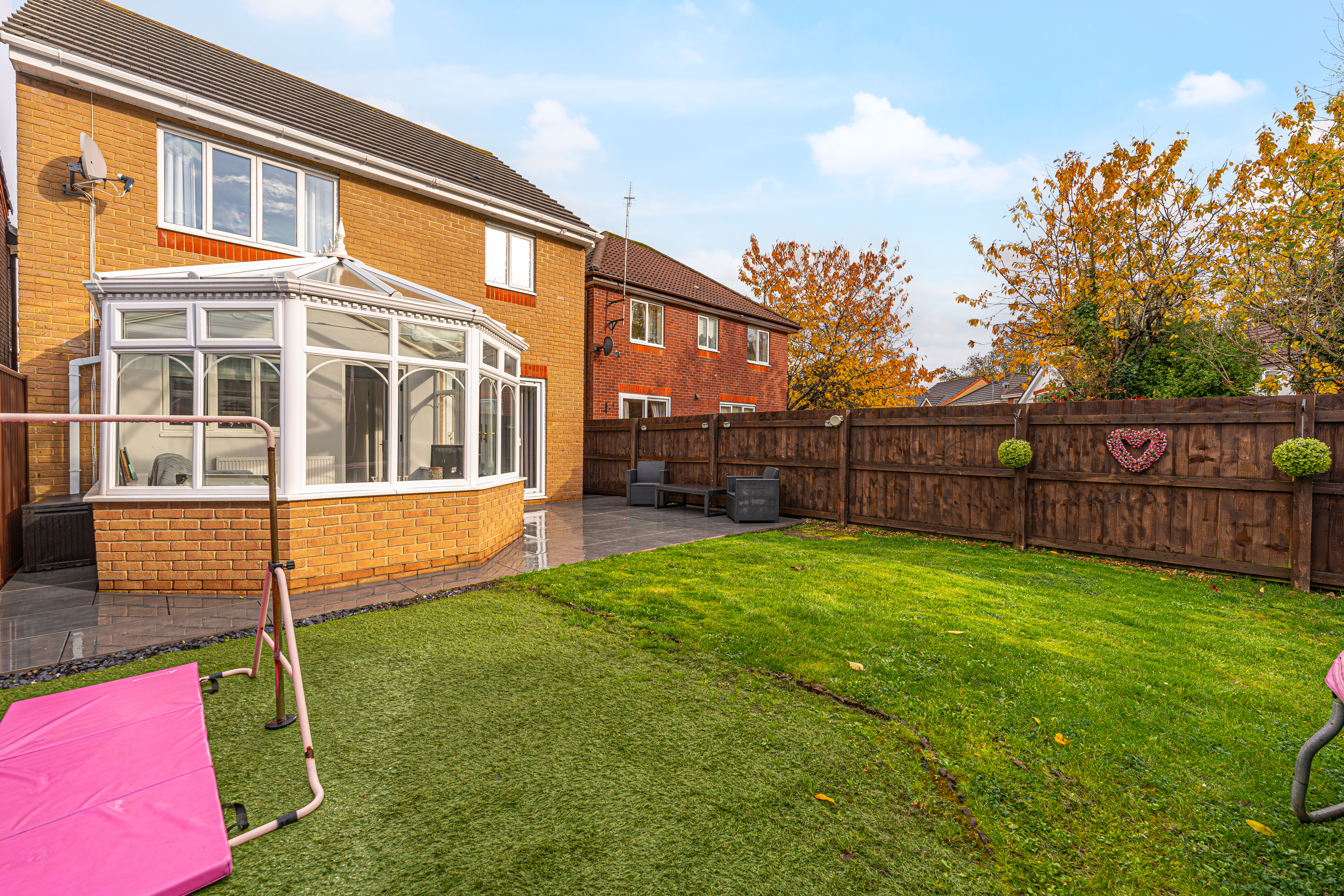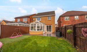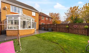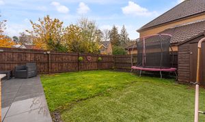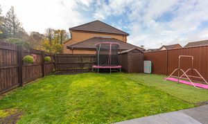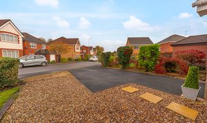 Stepping outside we can find the wonderfully maintained rear garden, which is fully enclosed and features a charming patio area, and a generous lawn beyond, offering an abundance of space for relaxing in the fresh air, entertaining guests, and catching up over tea/coffee or dining al-fresco style. The garden also features a helpful storage shed, and a side walkway to connect us to the front of the house, where we can find the driveway, providing convenient parking for at least two vehicles. The front of the property is also accented by pebble stone, and presents a glorious brick façade, providing impressive kerb appeal, and a warm welcome to this brilliant family home.