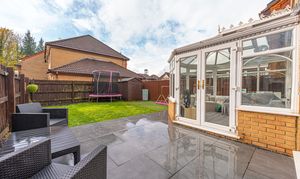 This impressive family home is beautifully presented, and features a spacious living room upon entry to the property, which is well lit and ideal for relaxing and entertaining. Double doors connect the living room to another spacious reception room, which presents a versatile space that could be perfect for another lounge area, a games room, or even a dedicated office space. The living room also folds through an open walkway to the bright dining area at the rear of the house, featuring French doors that open seamlessly to the rear garden. The practical kitchen neighbours the dining area, and showcases a sleek, user friendly design, with multiple storage fixtures and a wealth of integrated appliances to make cooking and cleaning a breeze. The kitchen also features a helpful pantry cupboard, and a doorway to the rear facing conservatory, highlighting yet another incredible lounge space that is bathed in natural light, with views and further access into the garden.
