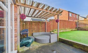 - Delightful rear garden with a generous patio area with a lovely pergola and a large area of artificial lawn, keeping the outside spaces low maintenance