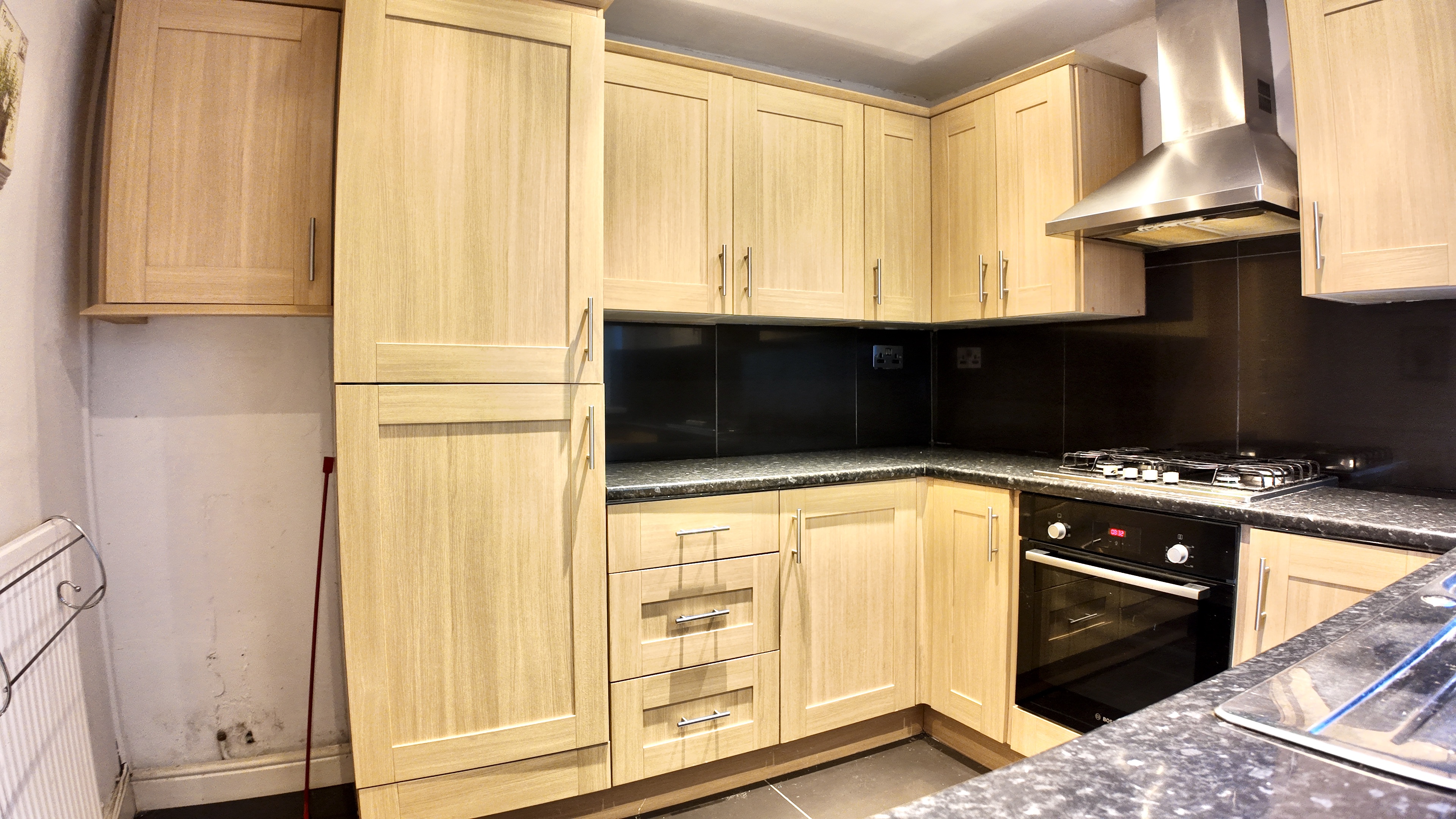 - Fitted kitchen with rear passage access