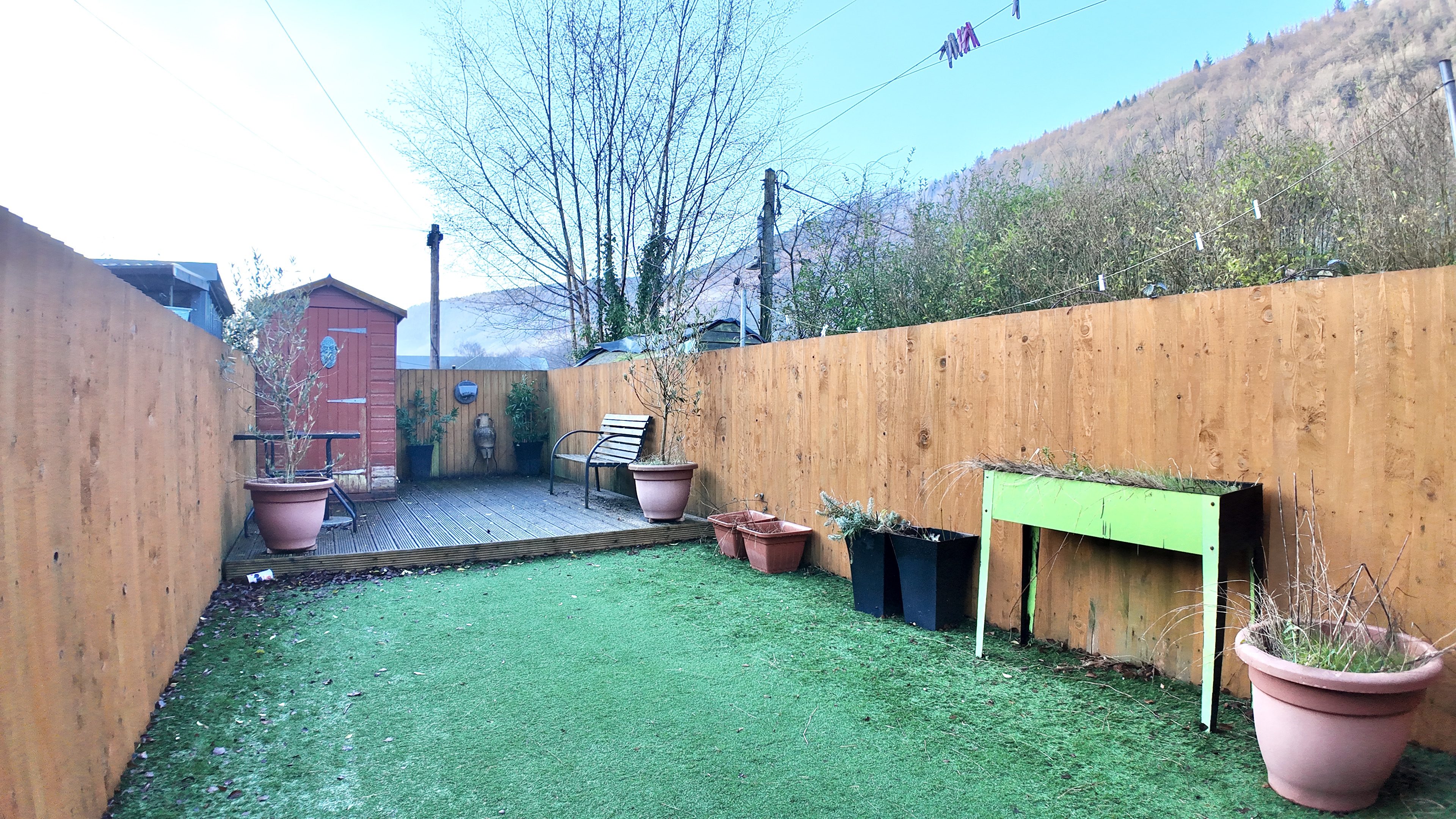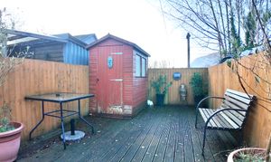 Externally, the property enjoys a low-maintenance garden featuring artificial turf, decking, and a storage shed, ideal for relaxed outdoor living with minimal upkeep.