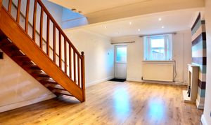 You enter the property directly into a bright and spacious open reception room, creating a welcoming main living area. To the rear, a door leads through to the fitted kitchen, which also benefits from rear passage access, adding everyday practicality.
