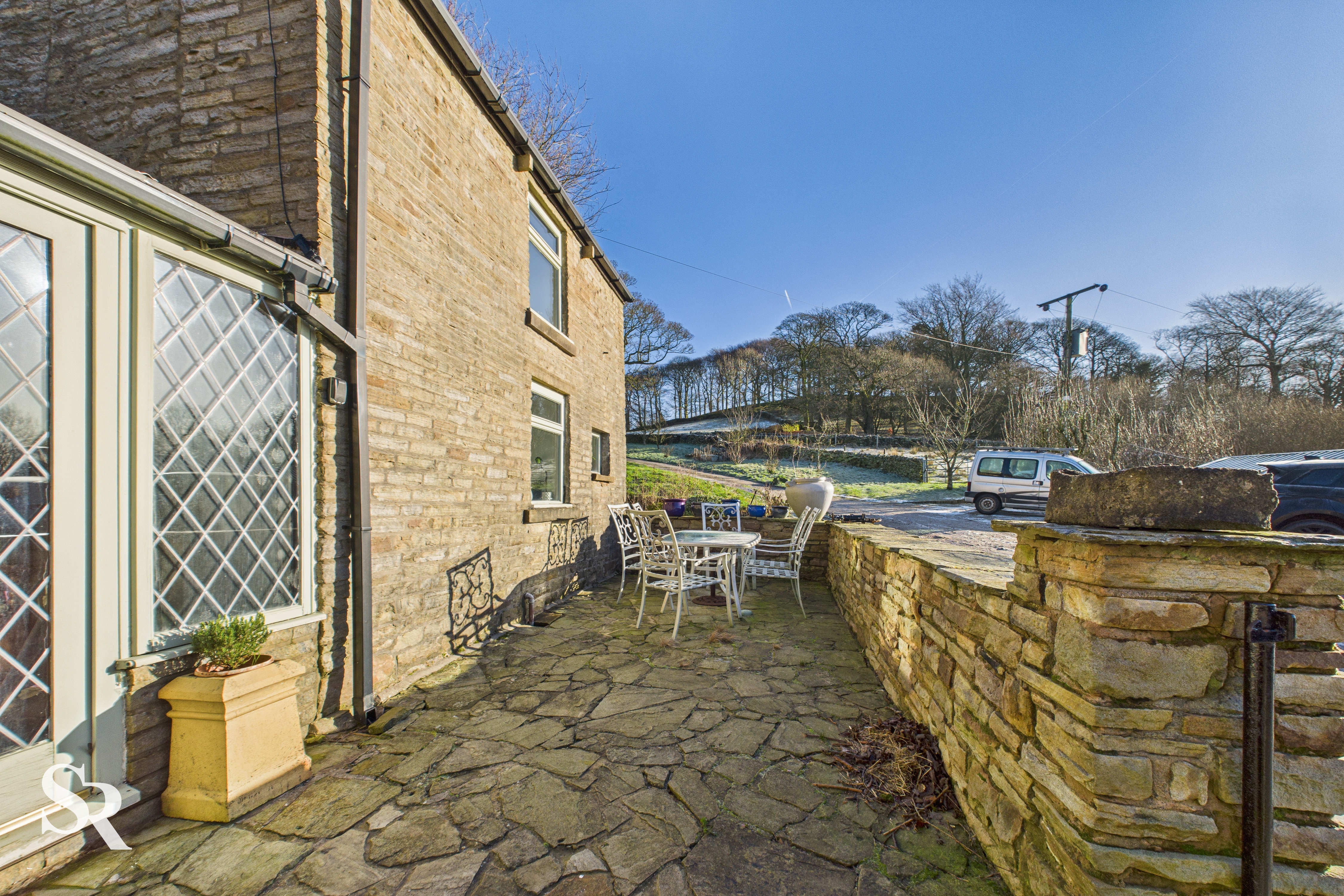A standout feature of the property is the large conservatory, which provides a peaceful spot to unwind while enjoying stunning views over Lantern Pike.