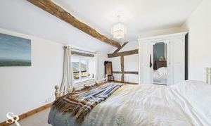 Double bedroom. Double glazed window with exposed oak beam and stone sill to side elevation, exposed timber beams and exposed timber wall frames, radiator.