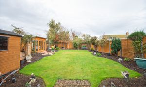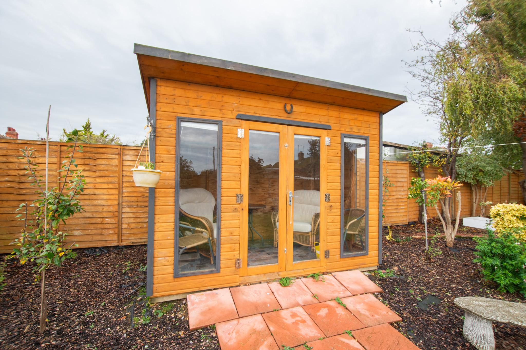 Step outside to the private expansive garden of this property, featuring a picturesque summer house, complete with power, perfect on a large lawn, as well as a paved patio area, perfect for al fresco dining.
