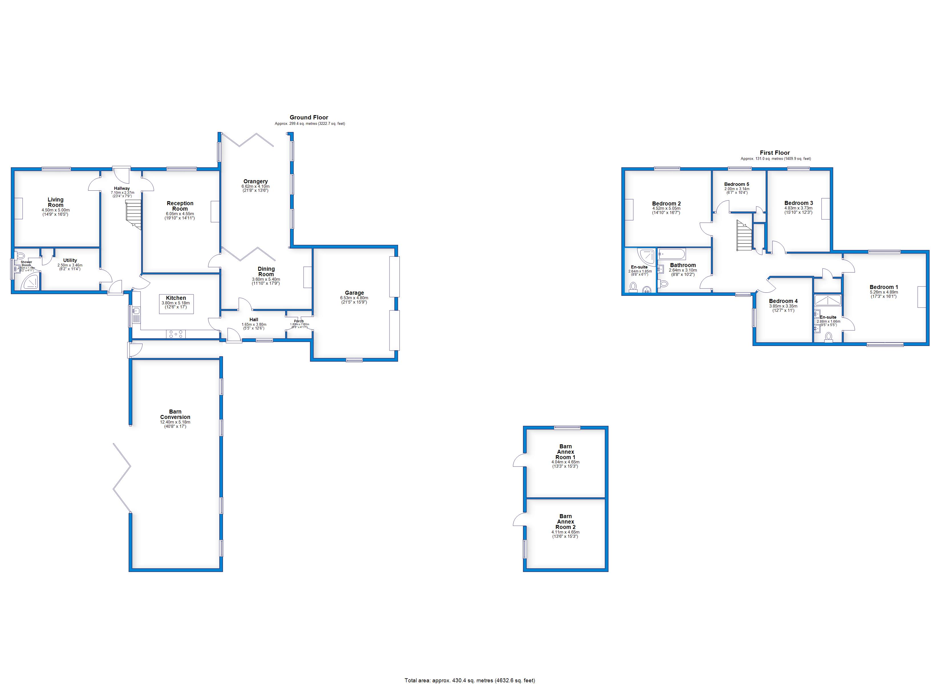 Plot A - “This impressive home set within 2.65 acres offers spacious and versatile living, a perfect mix of rural and modern life. As soon as we arrived, I was stunned at the beauty of the wrap around garden and the presence of the property. Heading in through the large front door, the hallway welcomes you in with Minton tiles and wood flooring and is a great open space. There are 3 large reception rooms, all overlooking the incredible views of the garden. One of them has a cosy log burner, the other has a lovely brick feature fireplace and the orangery has exceptional space with natural light. The country style kitchen sits nicely at the back of the home, having a large island with a breakfast bar and an Aga. The dining room also has lots of character, having a brick feature fireplace and plenty of space for a family dining table, this room then opens up into the large, beautiful orangery which has a lantern skylight flooding the space with natural light and bi-fold doors out onto the decking. It is a wonderful place to relax and unwind. Downstairs also benefits from a practical utility room, a downstairs shower room and access to a large double garage. Heading on upstairs, the bedrooms do not disappoint. There are 2 great choices for a master bedroom, both equally perfect. They both benefit from an en-suite shower room and open fireplaces adding to the cosy feel. There are 3 further double bedrooms and a large family bathroom. Outside, the barn with original vaulted wooden beam ceiling, has been converted into a work space for the current owner, however is fully equipped to be sectioned off and used for either an annex, as an Airbnb, or for extended family. There is also room to park a minimum of 7 vehicles in the large courtyard. Where do we begin with the garden? It is a beautiful vast space with lots of different little areas. There are 2 summer houses, both are fully insulated, and the corner one has lighting, heating and Wi-Fi capability. There are beautiful trees surrounding the whole garden, plenty of areas for seating and even a hot tub! We adore this home and we believe you will too, it really is something special”. Business Opportunities: If you are looking for something more than just a home, there is an existing, established secure dog paddock business available and stables in the courtyard with planning permission to convert into a 1 bedroom annexe with mezzanine, offering rental/Airbnb potential”.