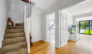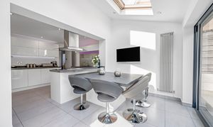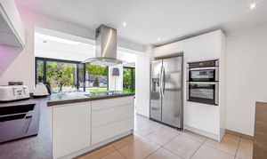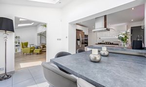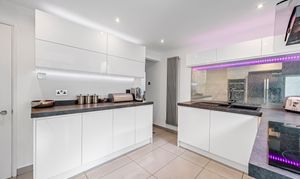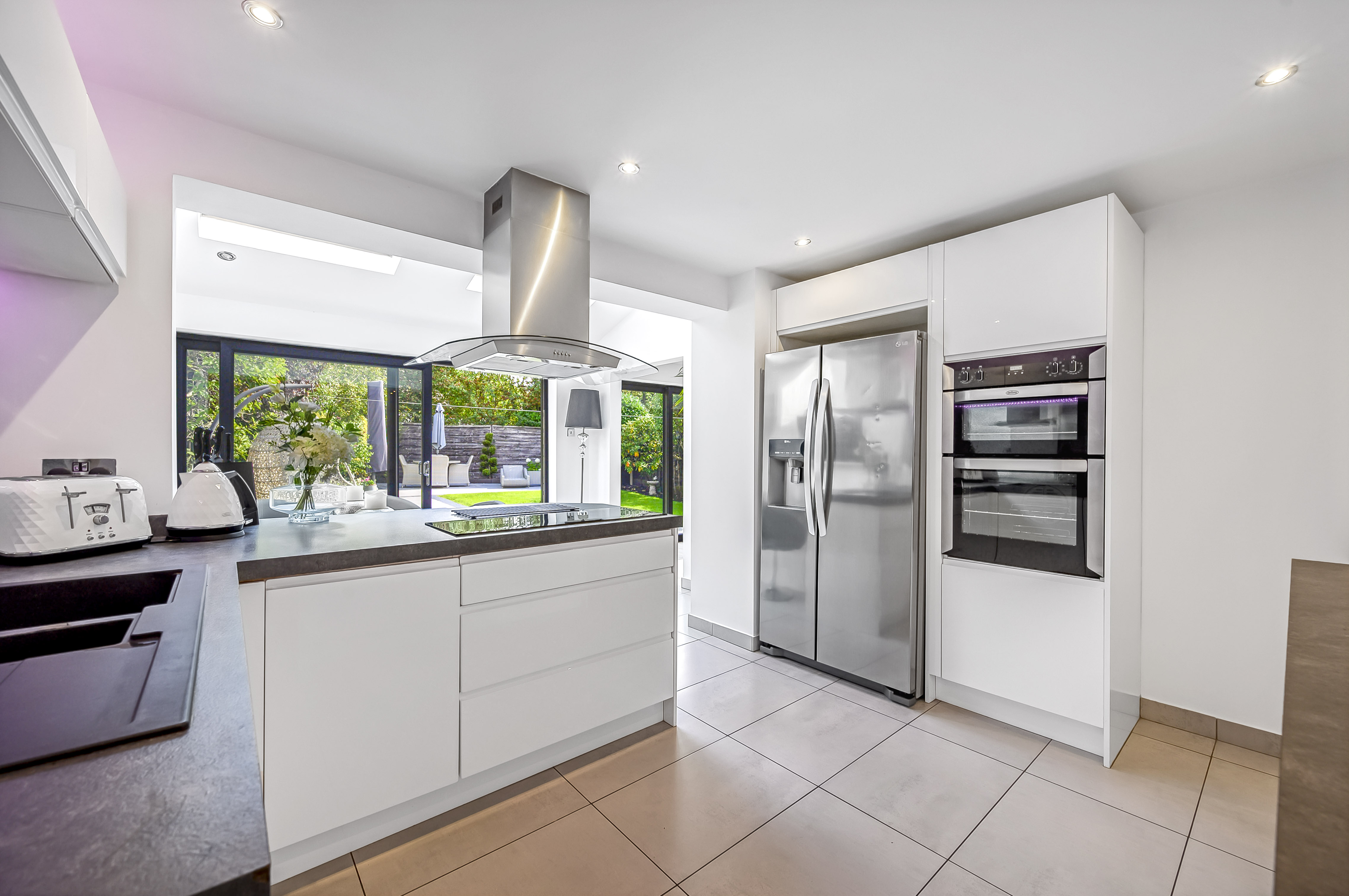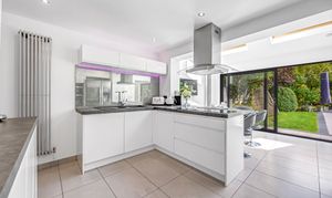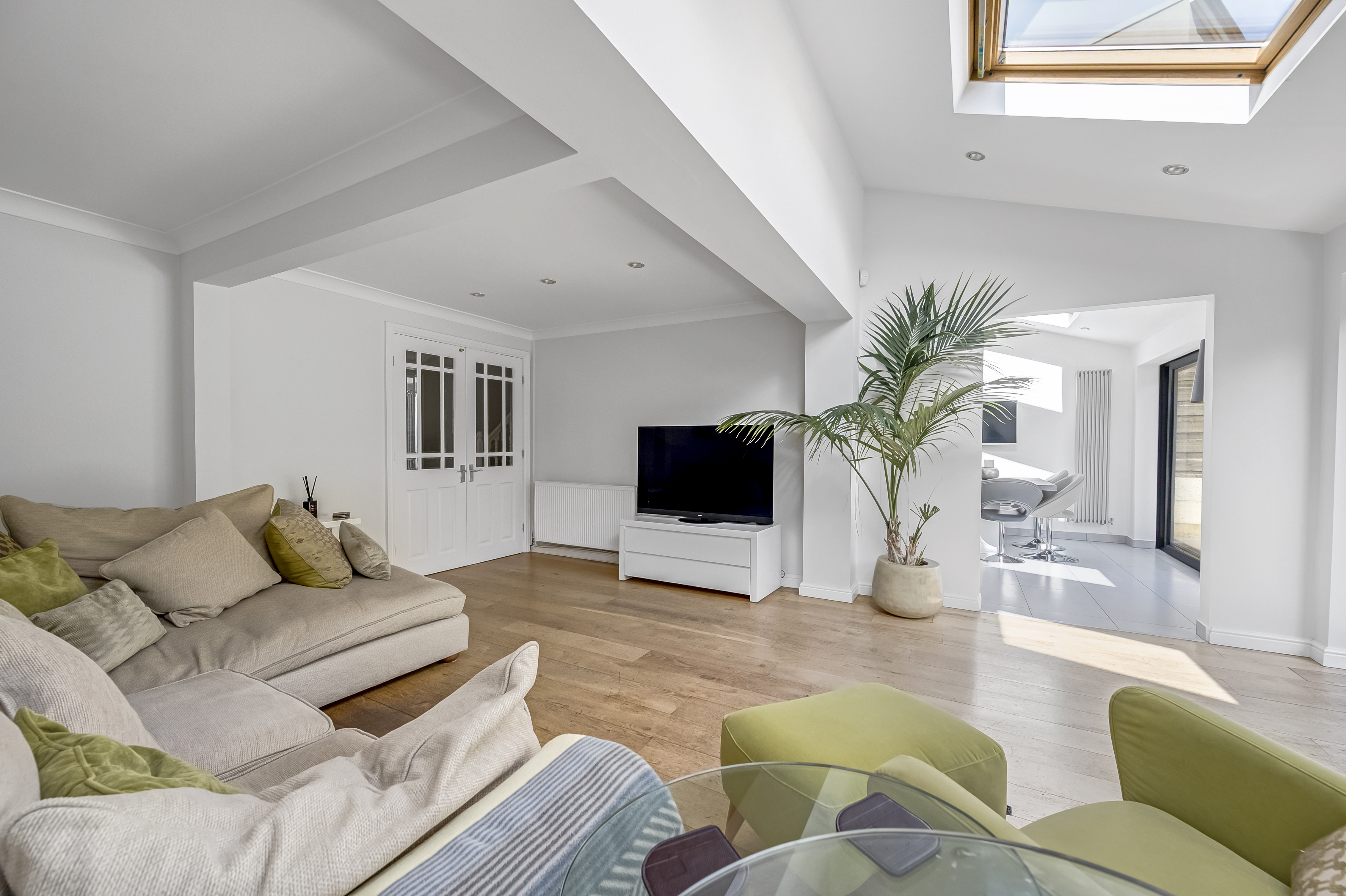 As you enter the property, you are greeted by a generous entrance hall that’s light and bright with a convenient storage cupboard and a guest W/C. To the front elevation is a cosy living room with a lovely bay window and a stylish inset gas fire. To the rear of the property, you will find the heart of the home, a superb semi-open plan kitchen/dining/family room. This wonderful space is not only vast, but is flooded with an abundance of natural light from the sliding patio doors and skylights. The kitchen area is finished with contemporary high gloss cupboards and complementary surfaces. Plus, there is a range of integrated appliances, including a double oven, induction hob and a dishwasher. A separate utility area offers a convenient space for laundry.