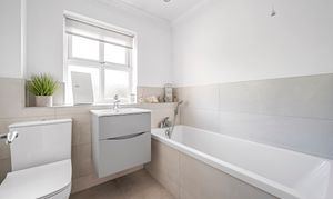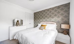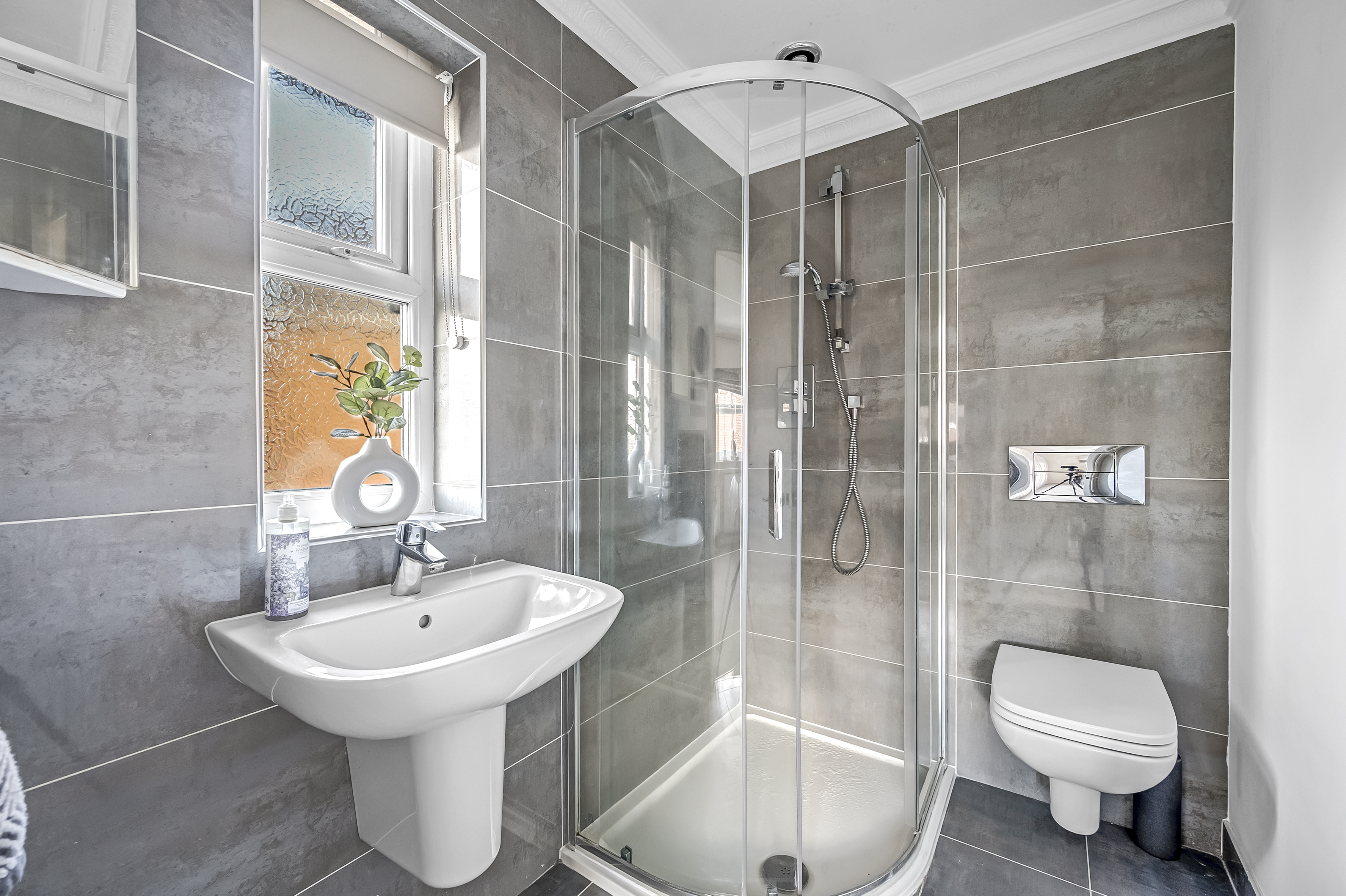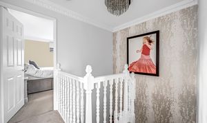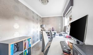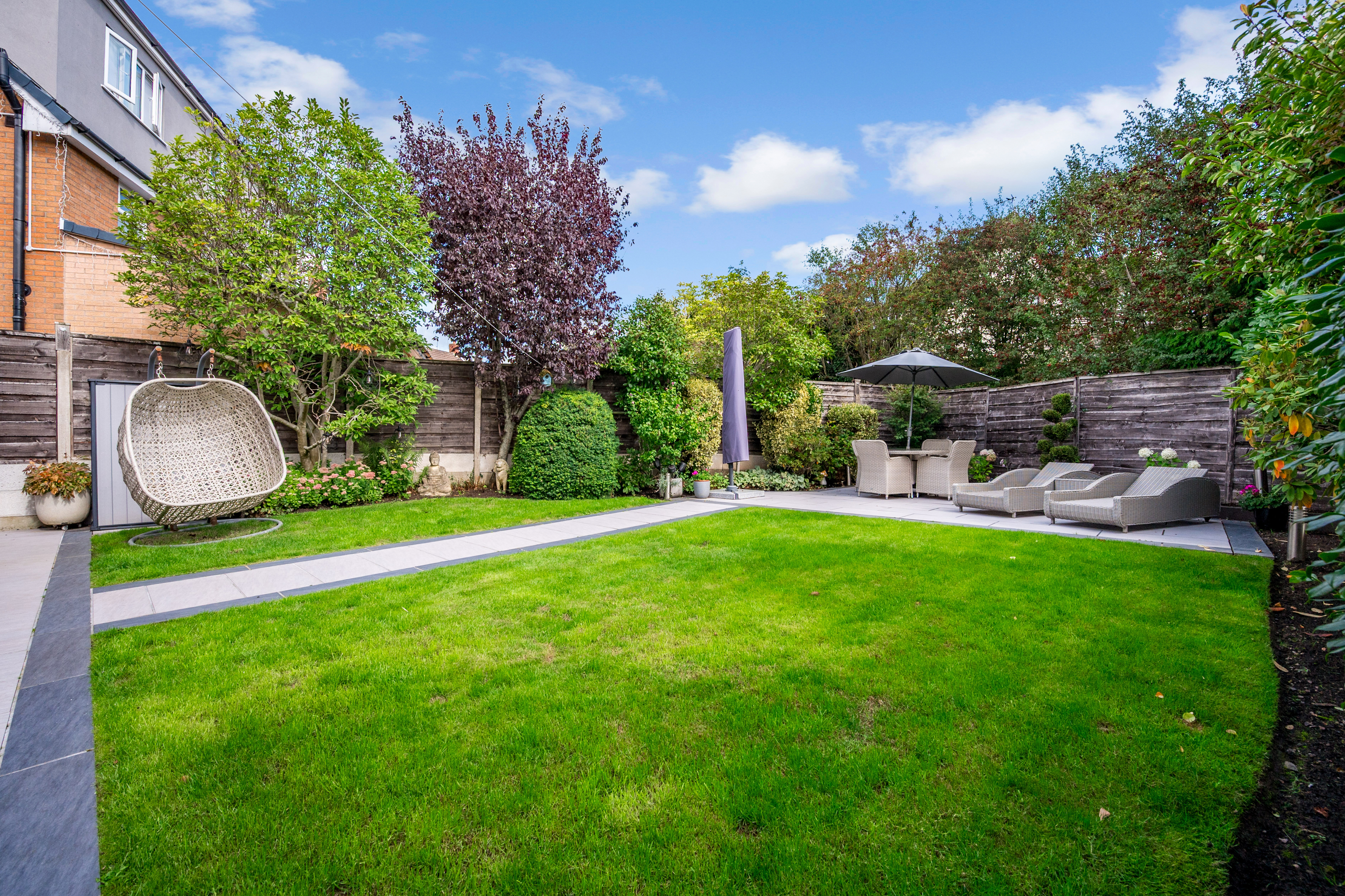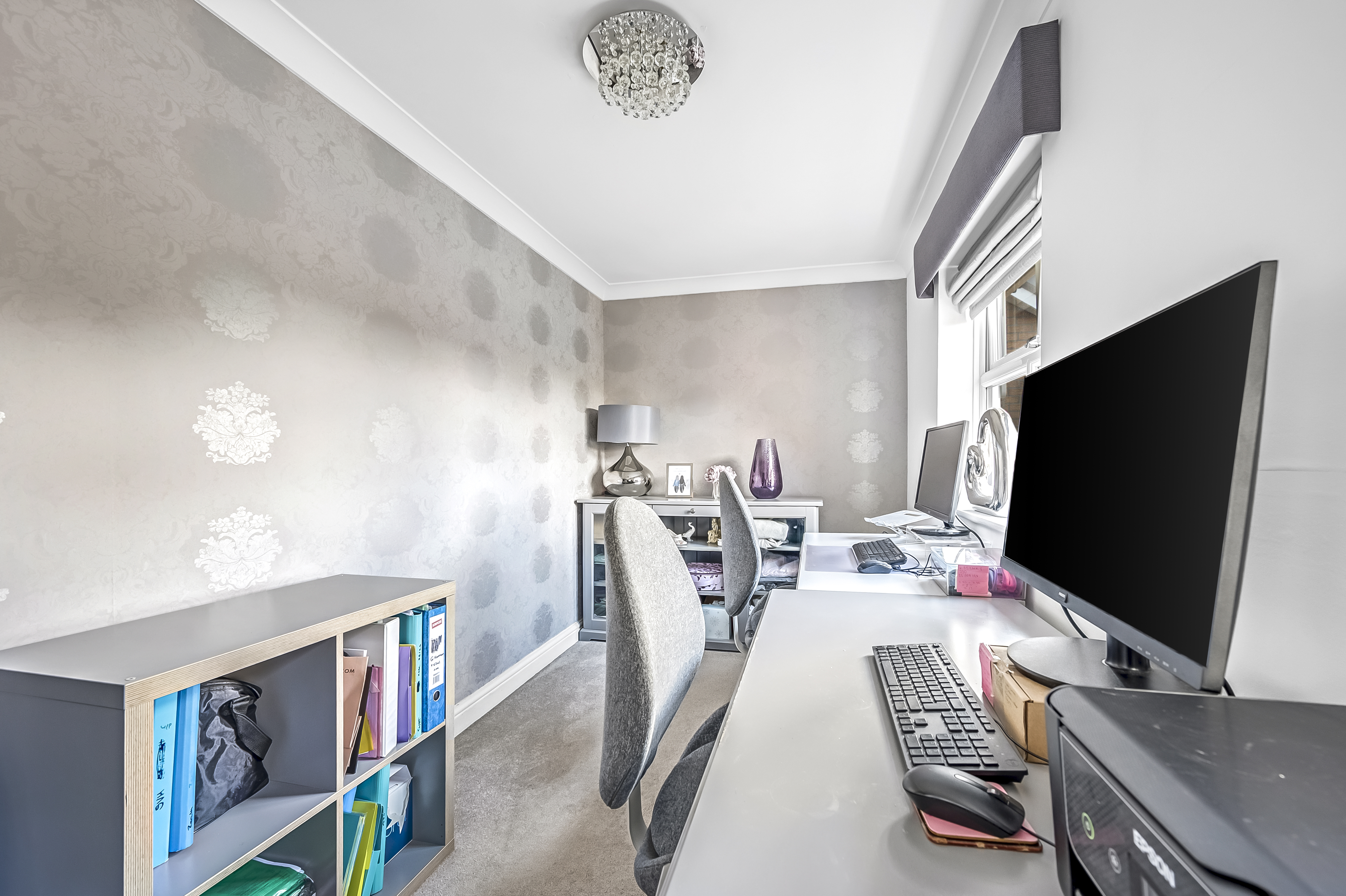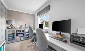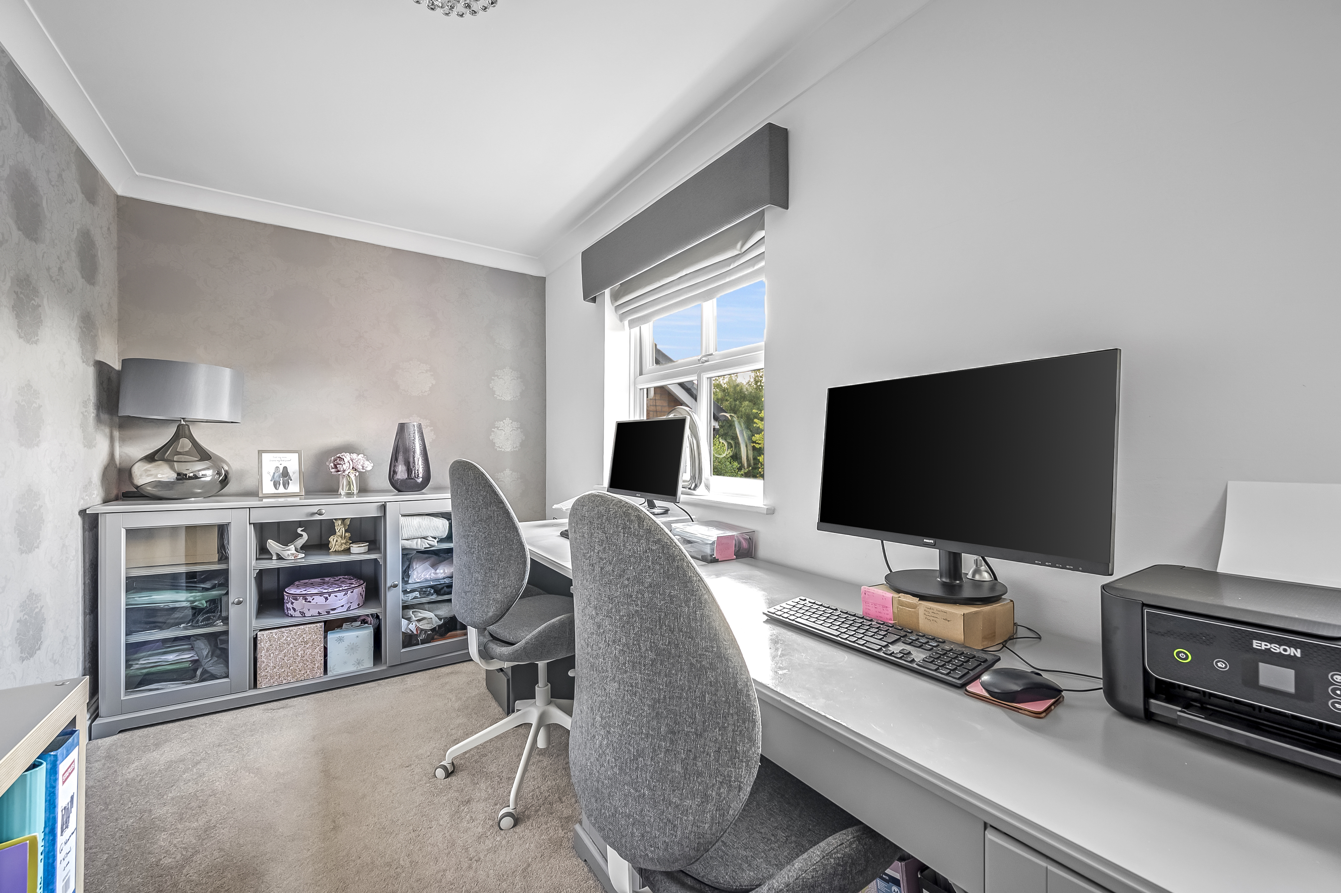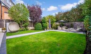 On the first floor is a large master bedroom complete wth fitted wardrobes and an en-suite shower room. The second and third bedrooms are both double rooms with wardrobes, and there is an excellent-sized fourth bedroom/study. The family bathroom is located on the rear elevation with beige half tiles and a modern three-piece suite with a shower over the bath. Externally, from the front elevation, the property has driveway parking for two cars and an abundance of on-street parking if required. A small garage space offers excellent storage. Through the side gate, you will find a generous landscaped rear garden finished with a porcelain tiled patio/paths, and an immaculate lawn, borders, and shrubs. A superb space to be enjoyed by the family year-round.