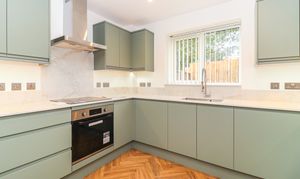 Entering in to a welcoming entrance hall with storage cupboard and guest W/C, doors take you to both the kitchen and the dual aspect living room, which flows out to the garden. The kitchen itself has been tastefully fitted in a contemporary design, with handleless drawers and cupboards. There are a range of integrated appliances, as well as natural stone worktops and upstands.