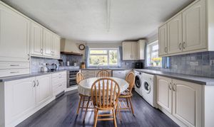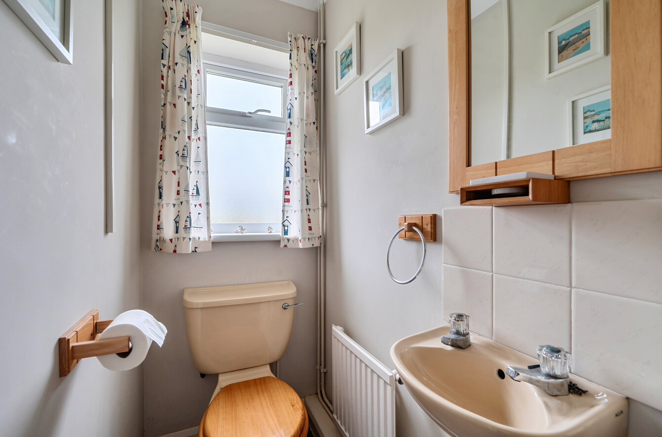 The welcoming hallway provides access to the sitting room, kitchen/breakfast room, dining room, bathroom, and the sleeping quarters. The dual aspect sitting room, to the front of the property, is a lovely bright space with plenty of natural light from sliding doors leading out to the gardens.