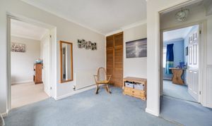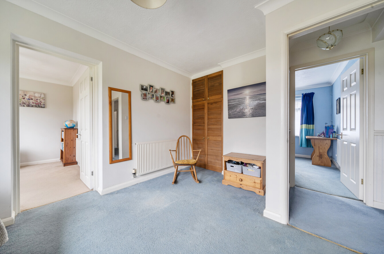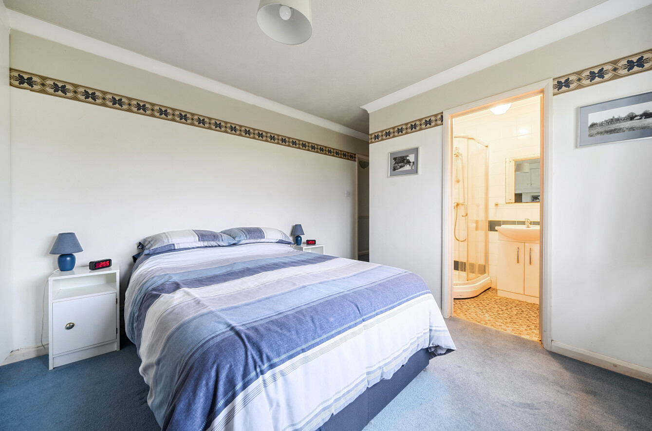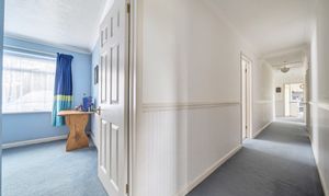 The corridor hallway leads to the sleeping quarters that include four double bedrooms, three of which have built-in storage. Bedroom two has a convenient dressing room. Bedroom one has the luxury of an ensuite shower room fitted with a walk-in shower, WC, and basin unit with storage under.