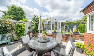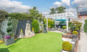 - Showstopping shaker-style kitchen with island, integrated appliances, wine fridges & bright garden room.