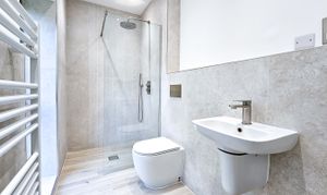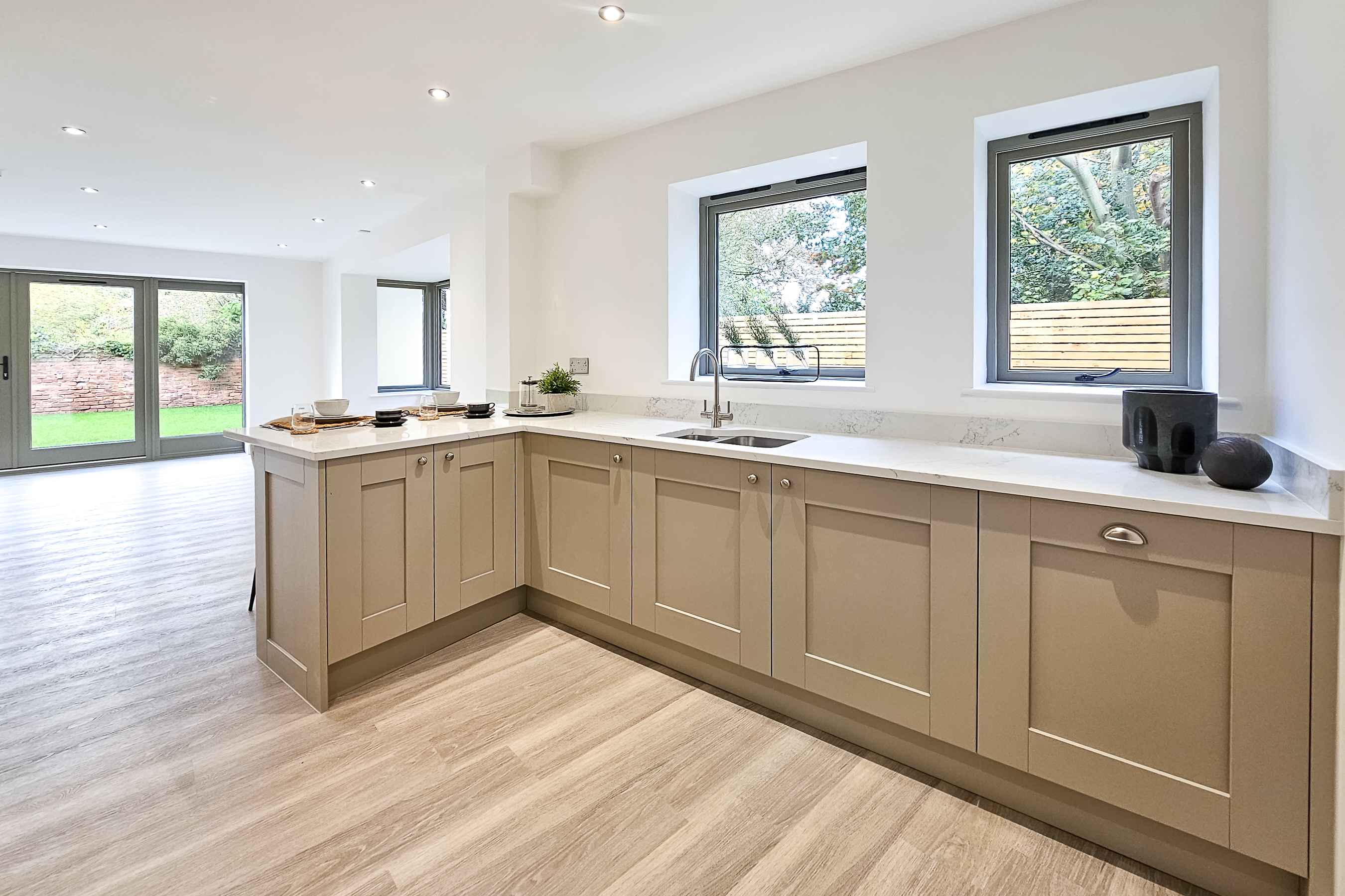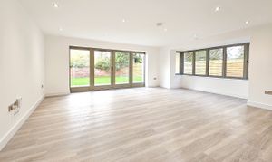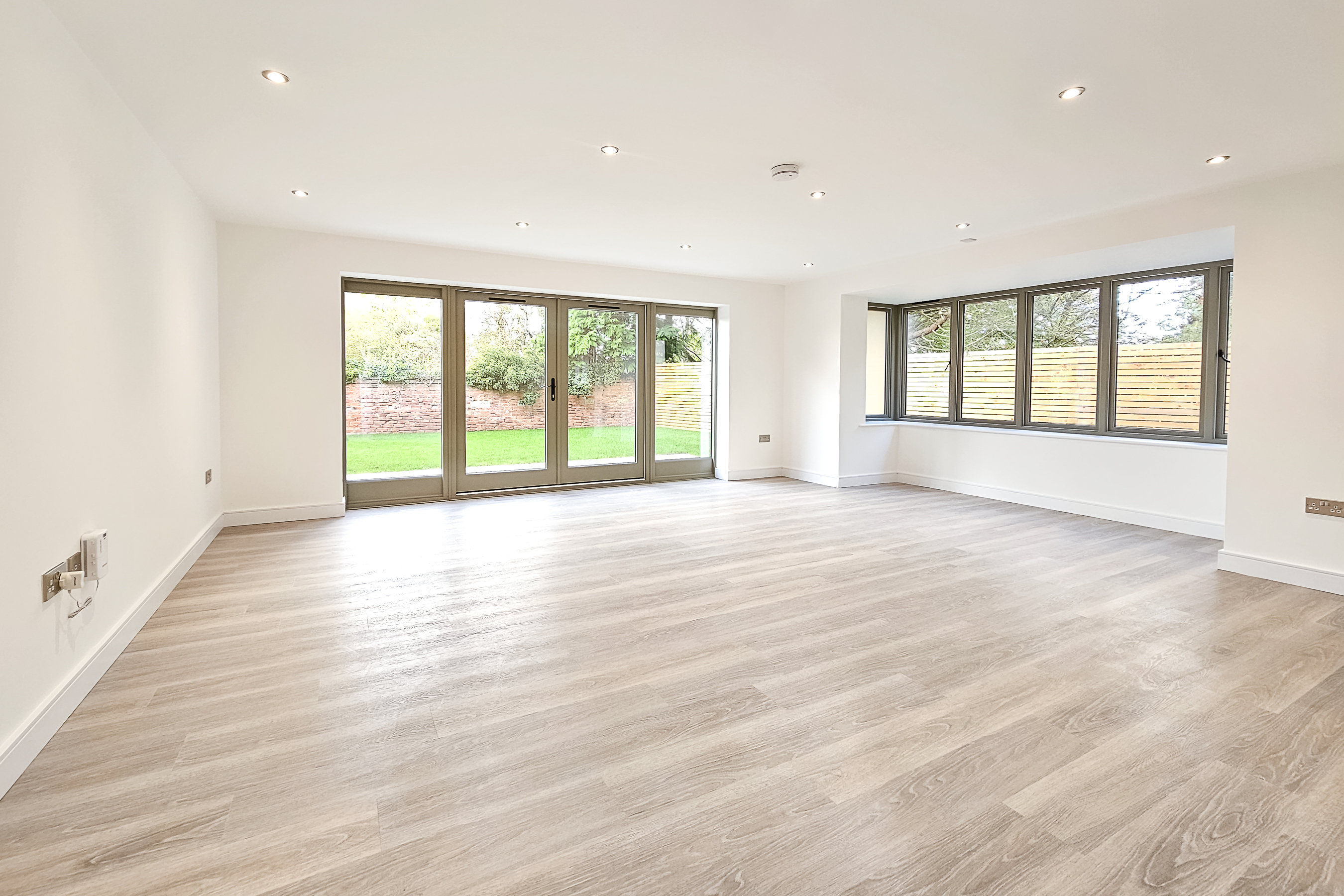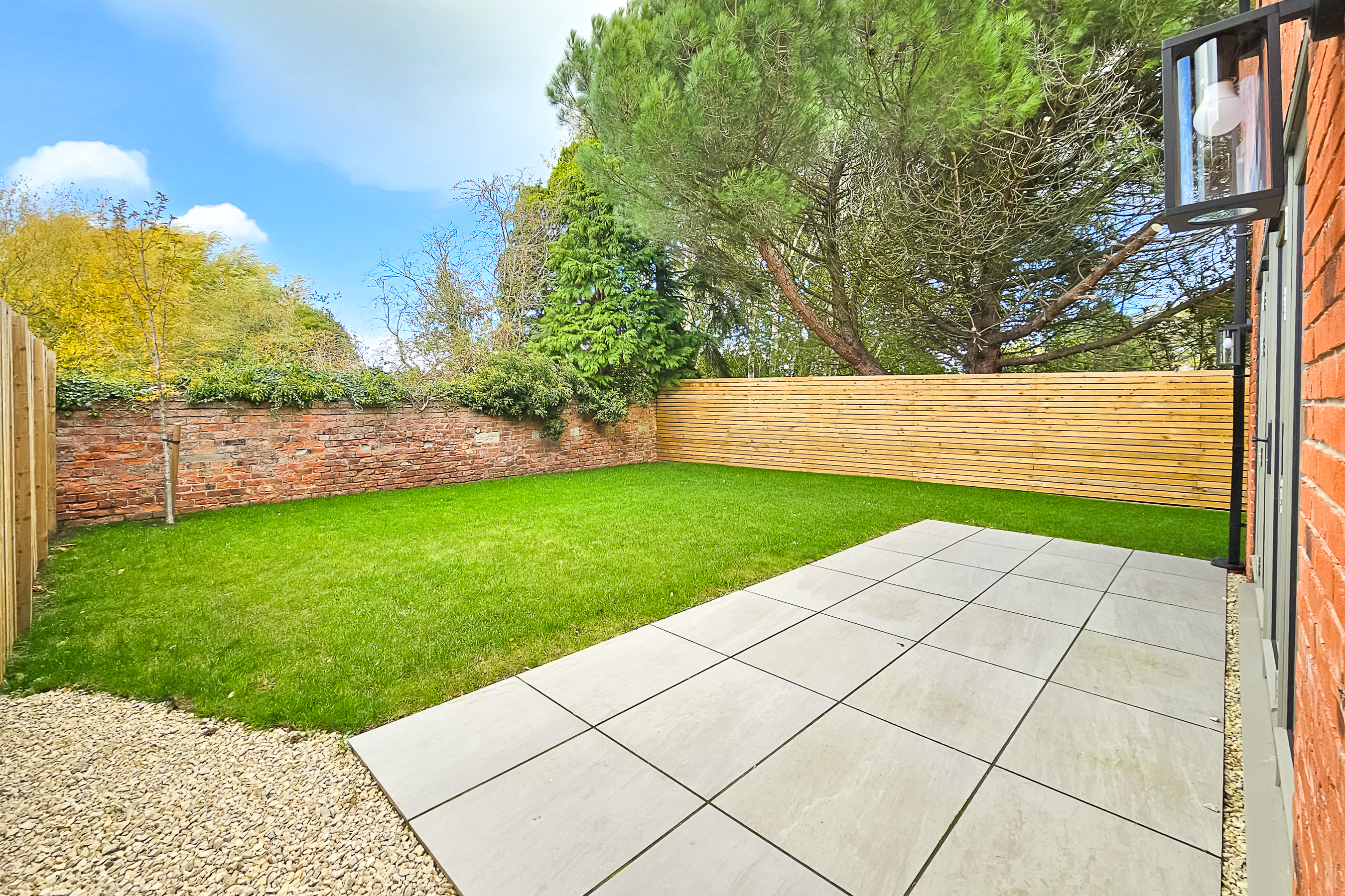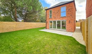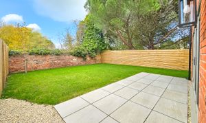 The property enjoys a beautifully landscaped, private rear garden, ideal for both relaxing and entertaining. A newly laid lawn provides a lush, green outlook, bordered by a blend of timber fencing offering both charm and excellent privacy. Large bi-fold doors from the living space open directly out onto a patio area, perfect for outdoor dining or lounging in the warmer months. Mature trees beyond the fencing create a tranquil backdrop, giving the garden a peaceful, secluded feel while requiring minimal maintenance. A gravel side pathway provides tidy access around the property.