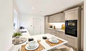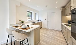 The ground floor features an impressive open-plan kitchen/diner/living room, flooded with natural light and designed for modern living and entertaining. The sleek fitted kitchen includes integrated appliances and generous worktop space, while the living and dining areas enjoy a spacious, welcoming feel. There is also a practical utility room, a downstairs WC, and internal access to a single garage for added convenience. A welcoming entrance hall leads to the staircase and useful under-stairs storage.
