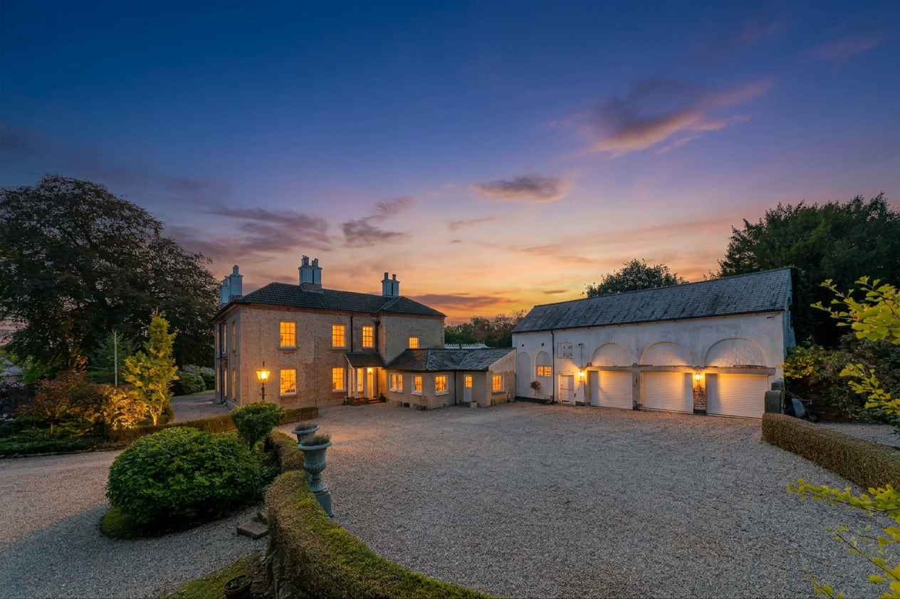 With a substantial amount of garaging, automatic gates. This home occupies a lovely position in the village and without doubt has superb commutability with easy access to the local main routes and airport.