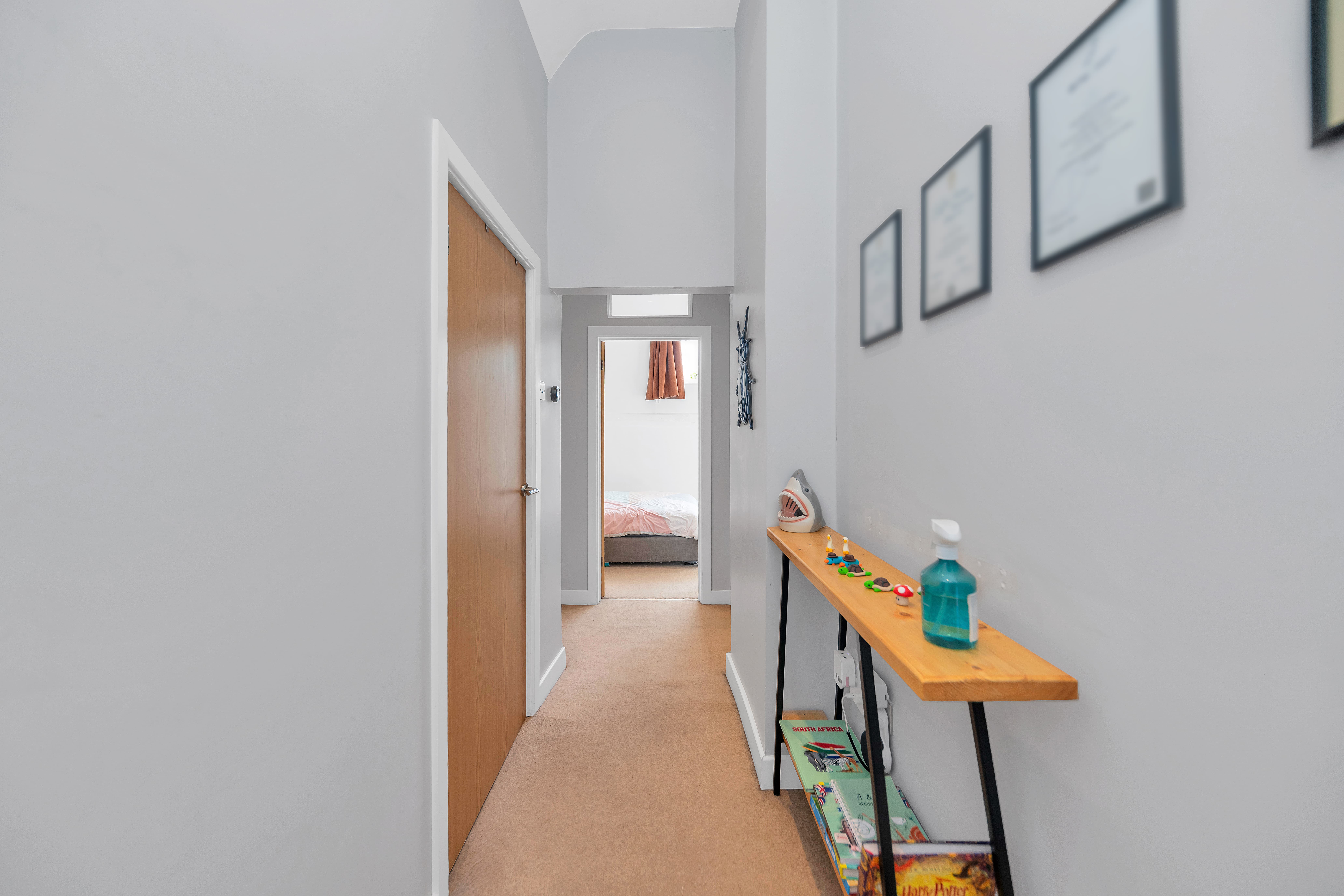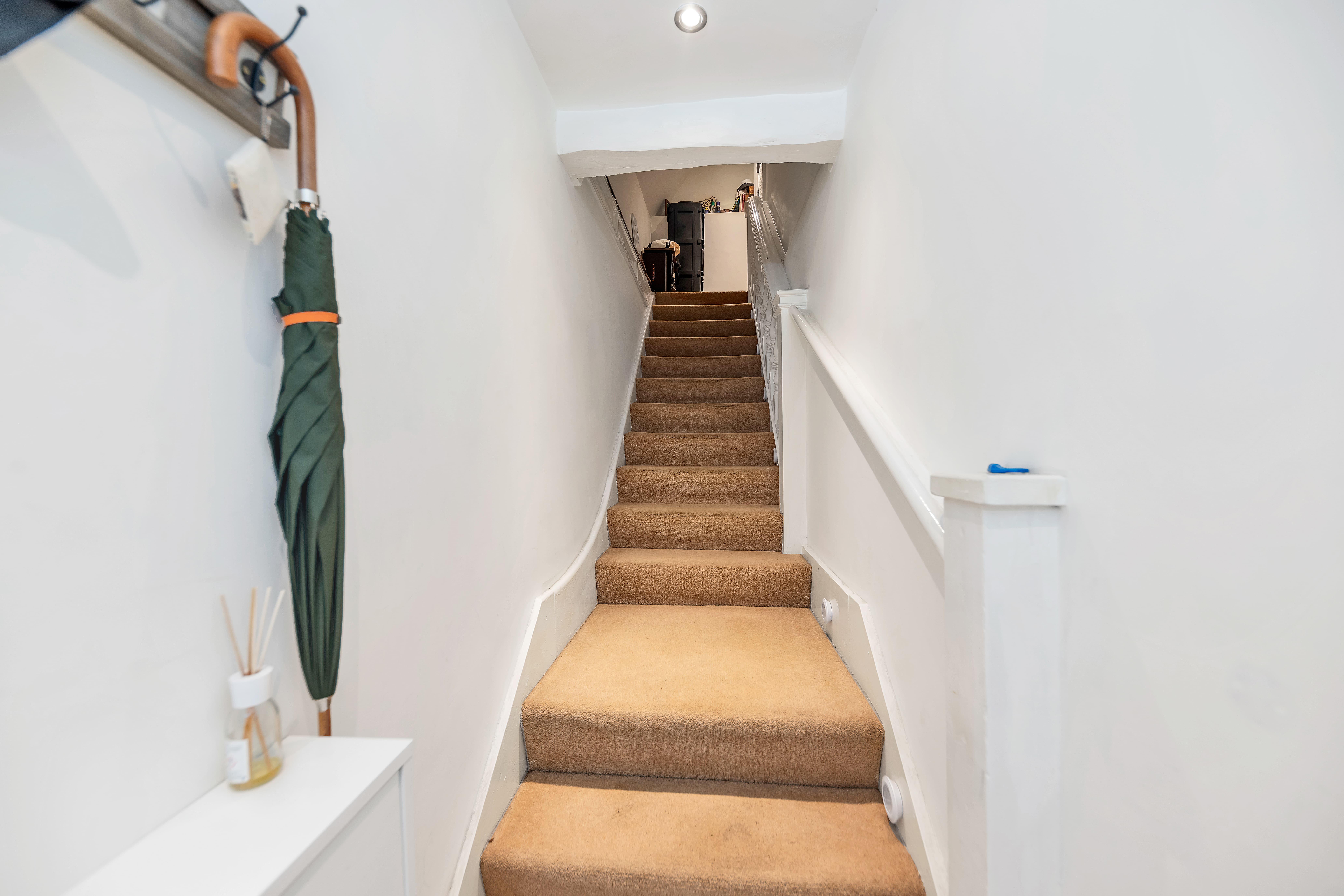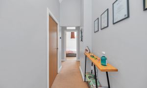 Upon stepping inside, the entrance hallway is welcoming and nicely decorated, alluding to the high standard seen throughout. It enjoys wood flooring, space for coats and shoes, and stairs to the first floor landing.