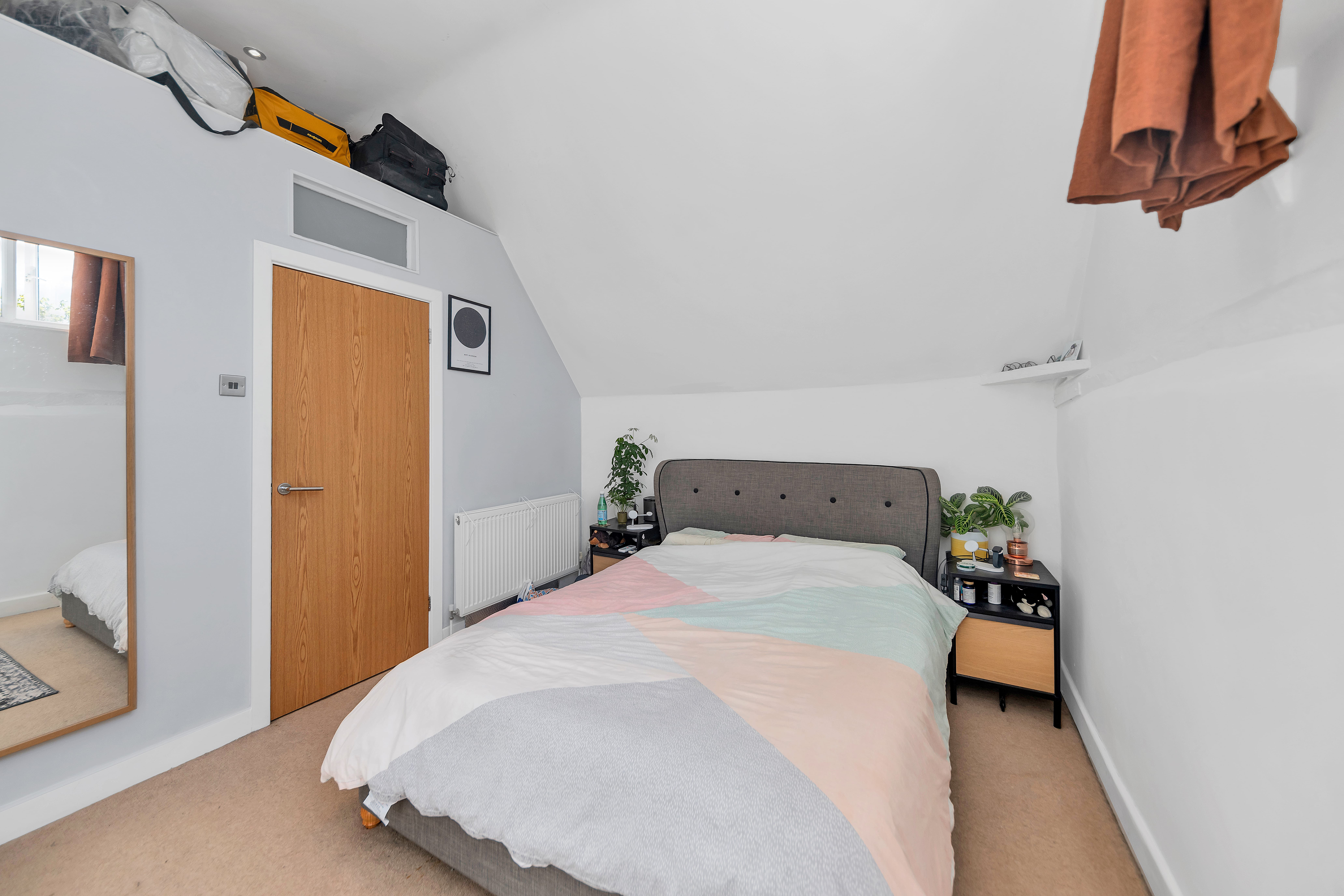 Through to the sleeping quarters, this lovely home continues to impress, with 2 well-proportioned double bedrooms, integrated storage, and a modern family bathroom comprising a bath with an overhead shower, a WC, a hand wash basin and a heated towel rail.