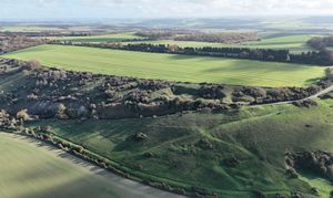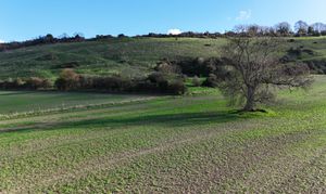 Three gently sloping fields that sit immediately above pastures on the Fovant Downs escarpment with far-reaching views towards Fovant. Collectively, the land extends to 37 ha (92 acres) of which approximately 32.5 ha (80 acres) is croppable. The land is accessed via the Herepath byway that runs along the top of the Downs. The soils are Grade 3 and free draining.
