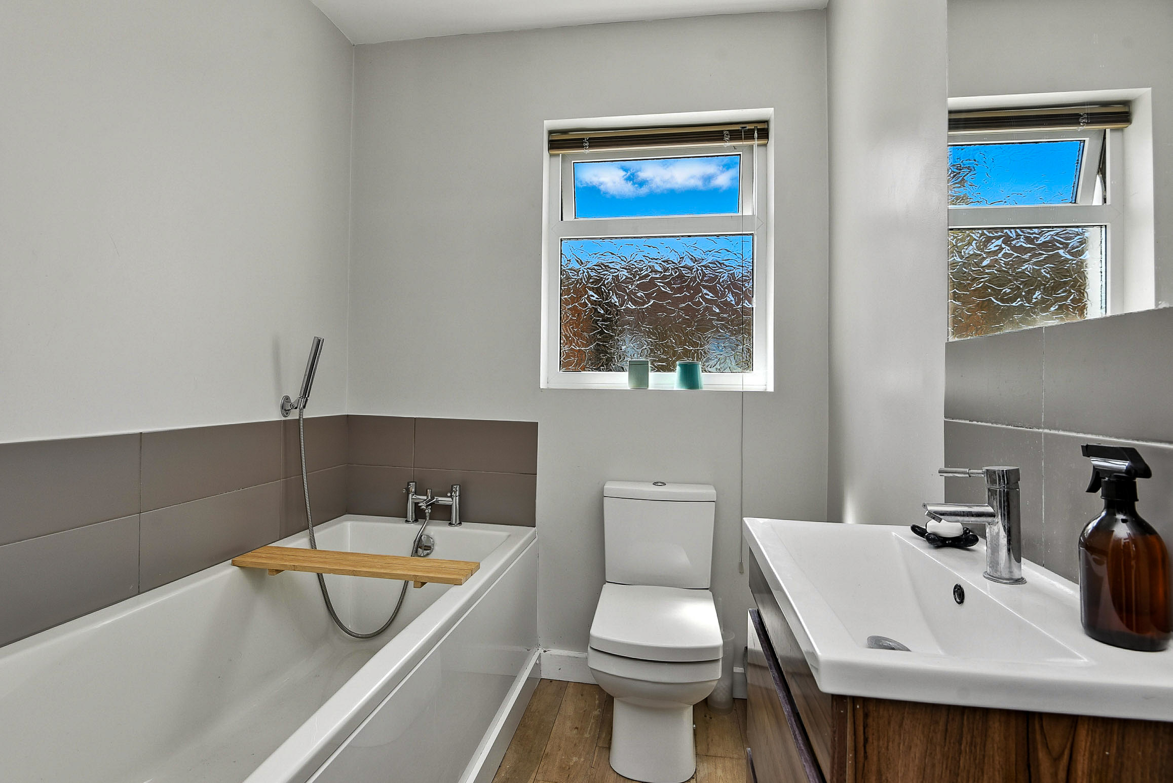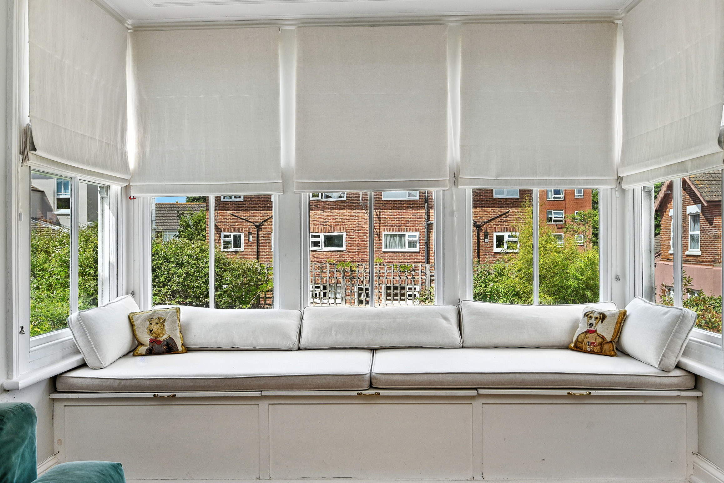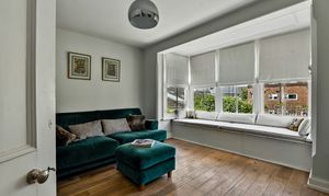 The third bedroom is currently used as a casual living room, and features a truly stunning window seat with integrated storage, overlooking the back garden. This room also benefits from two further built-in cuboards.