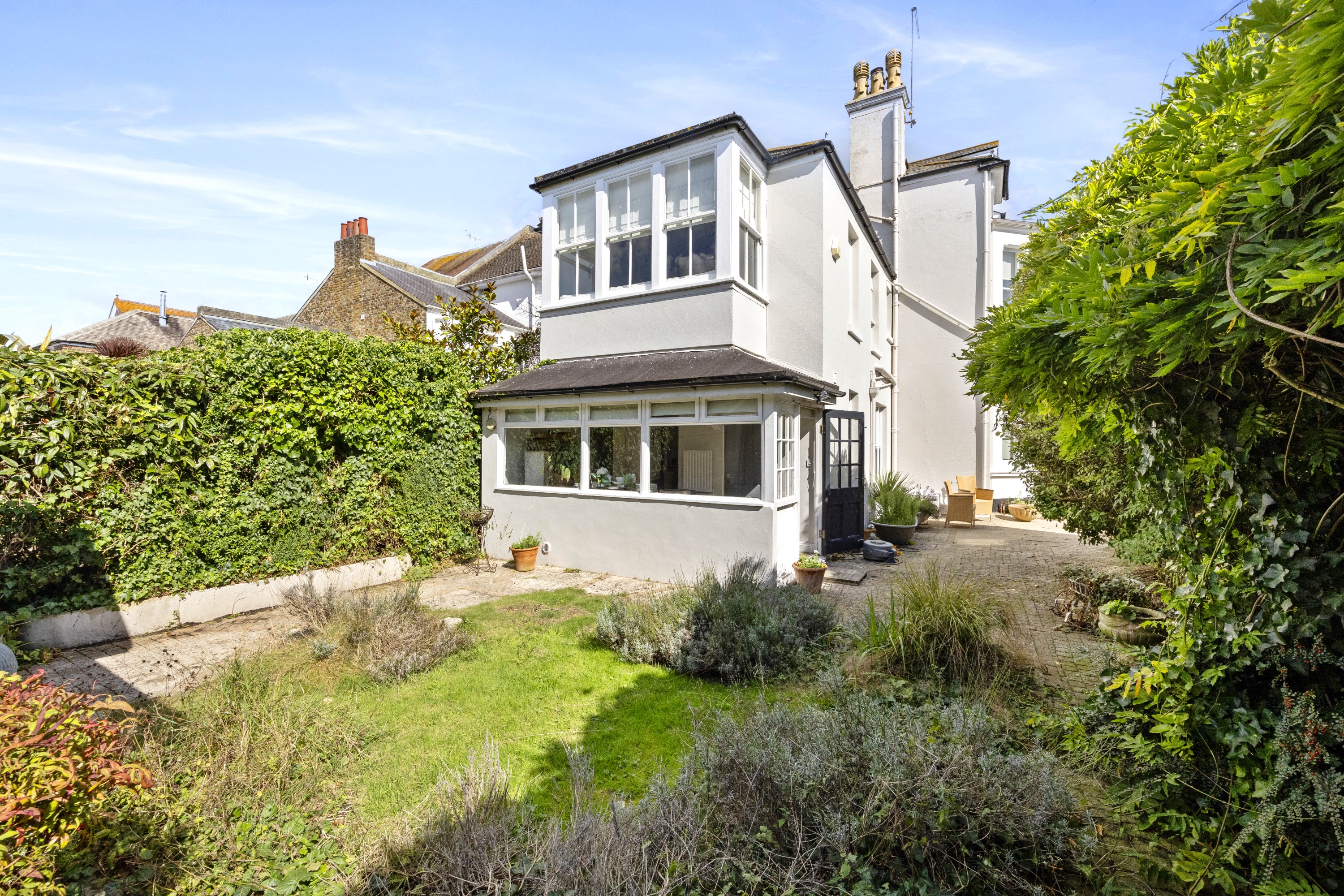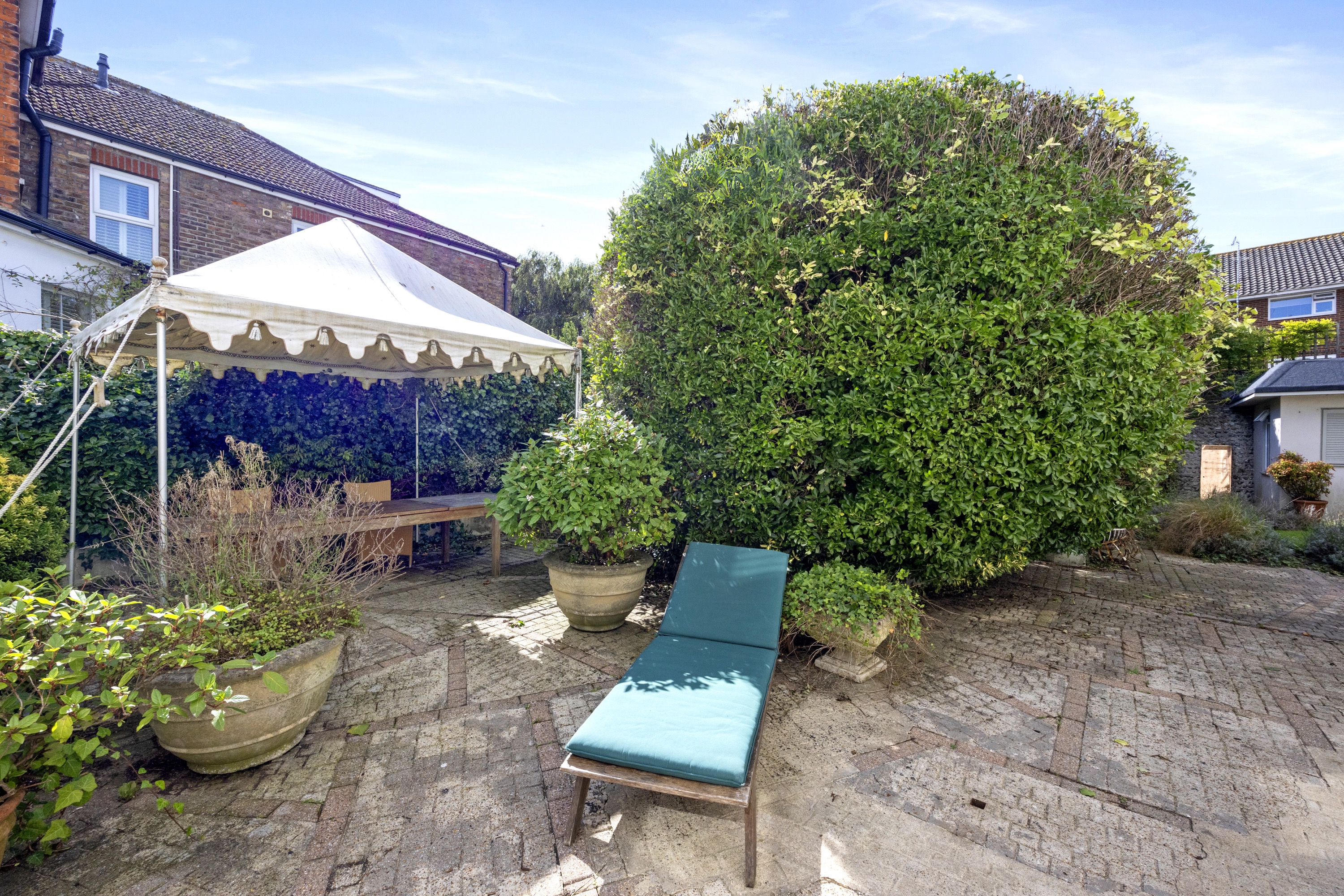 The outside space at this house offers a wide variety of areas to enjoy, from the large patio spanning the side of the house to the mature garden to the rear. The well-established flora and fauna in this garden provide a leafy, tranquil space, perfect for relaxing in the evenings or enjoying al-fresco dining with friends.